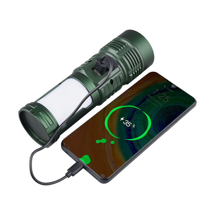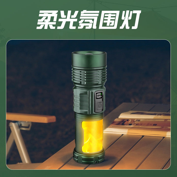 Multifunctional portable strong light aluminum alloy flashlight telescopic zoom usb charging multi-light source with flame camping light