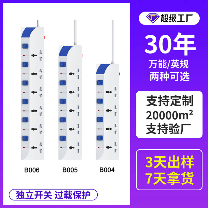 Multiple universal British standard socket with independent switch socket with load protection plug-in board African power strip customization