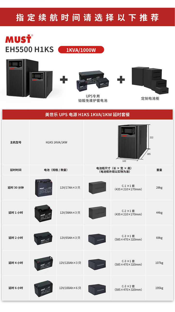 MUST Mercer EH5500 long delay package 1KVA/1KW high frequency online UPS uninterruptible power supply