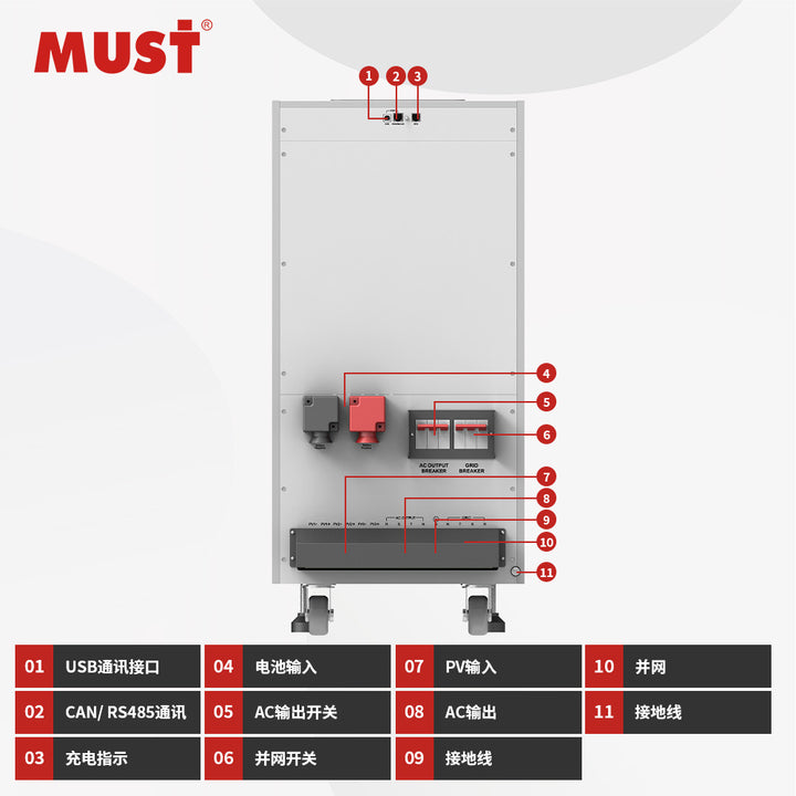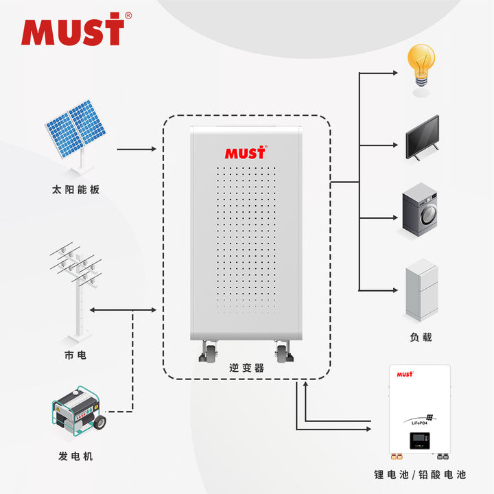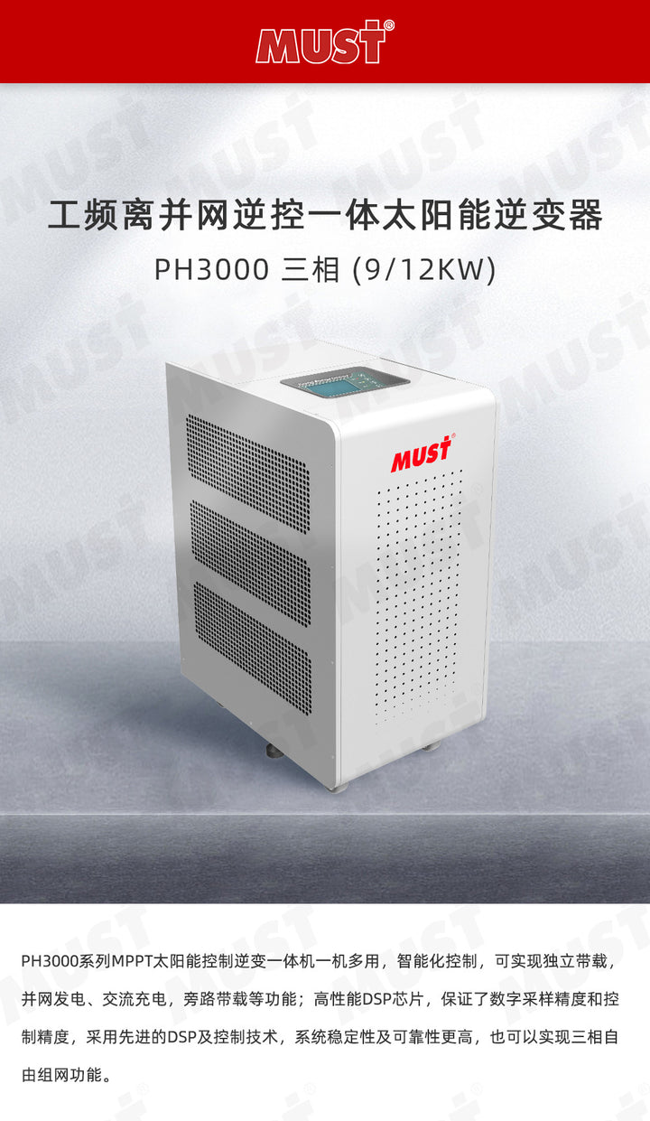 MUST three-phase inverter 48V/10KW off-grid energy storage inverse control integrated machine built-in MPPT controller 180A