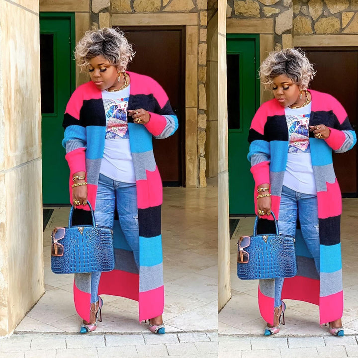 MY086 fashion, Europe and America, sweater, bag, cardigan, long sleeve, contrasting colors, sweater cardigan