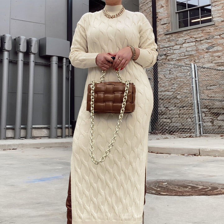 MY088 fashion, European and American, slim fit, semi-turtleneck long-sleeved split twist sweater