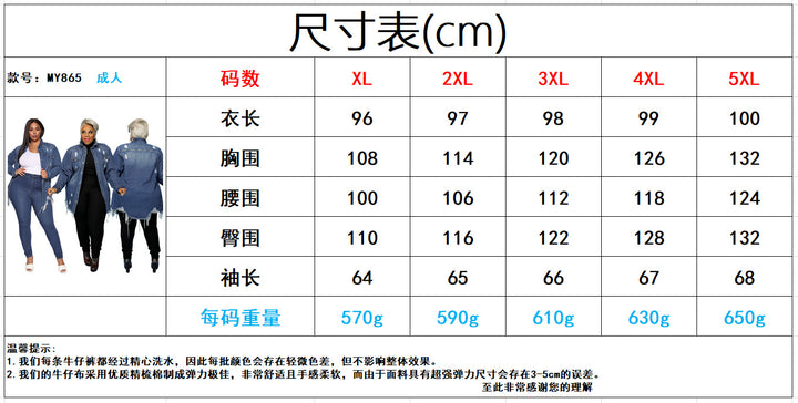 MY865 European and American spot fashion large size women's jacket cardigan hole wash denim trench coat