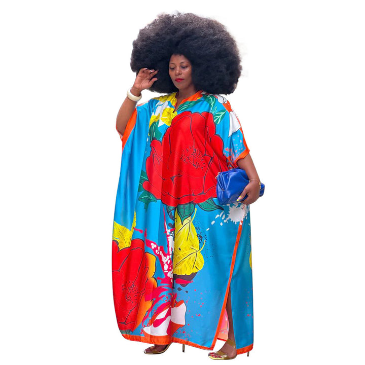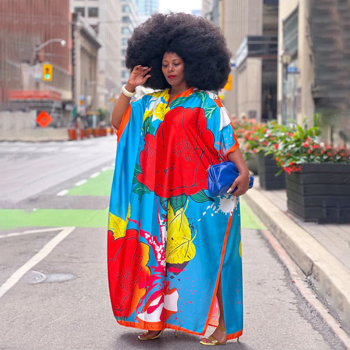 N7784 independent station hot-selling European and American women's clothing digital positioning printing explosion loose casual dress women