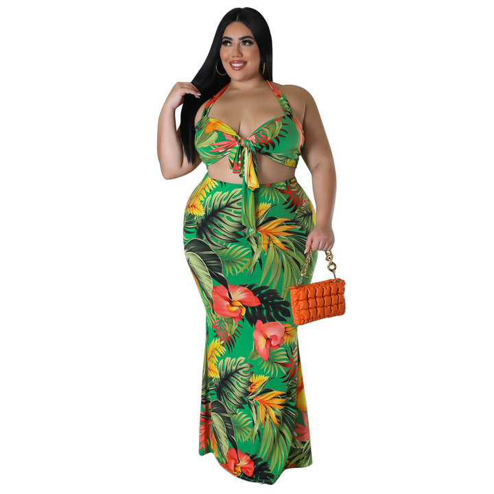 N7799 2023 spring new printing conservative neck strap skirt set, wholesale in Europe and America