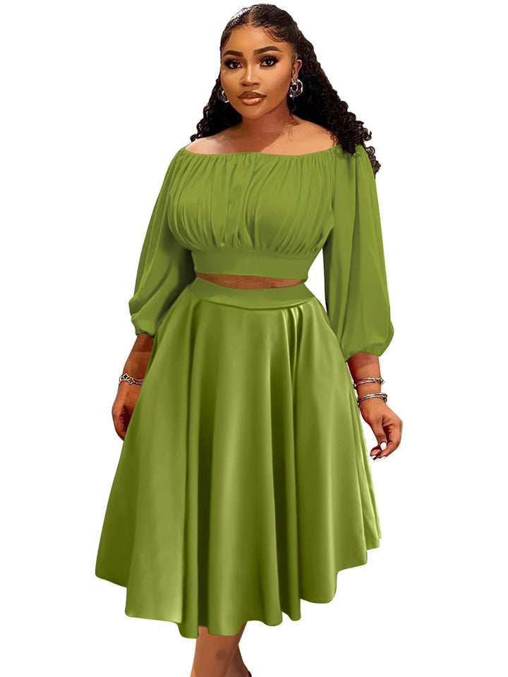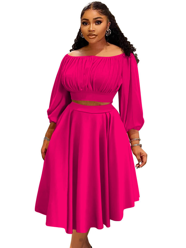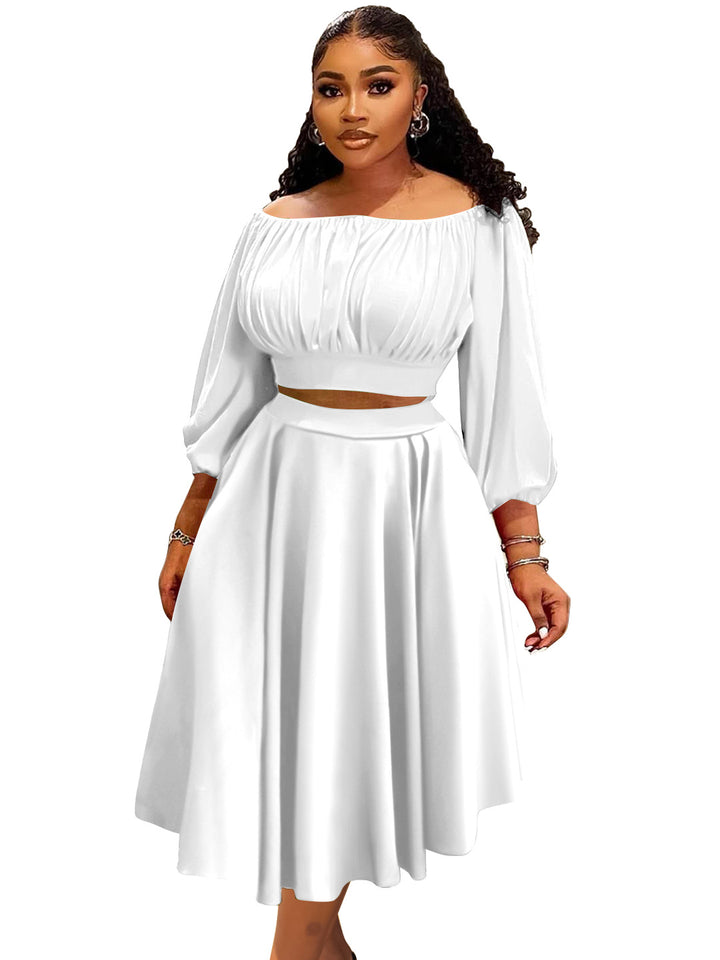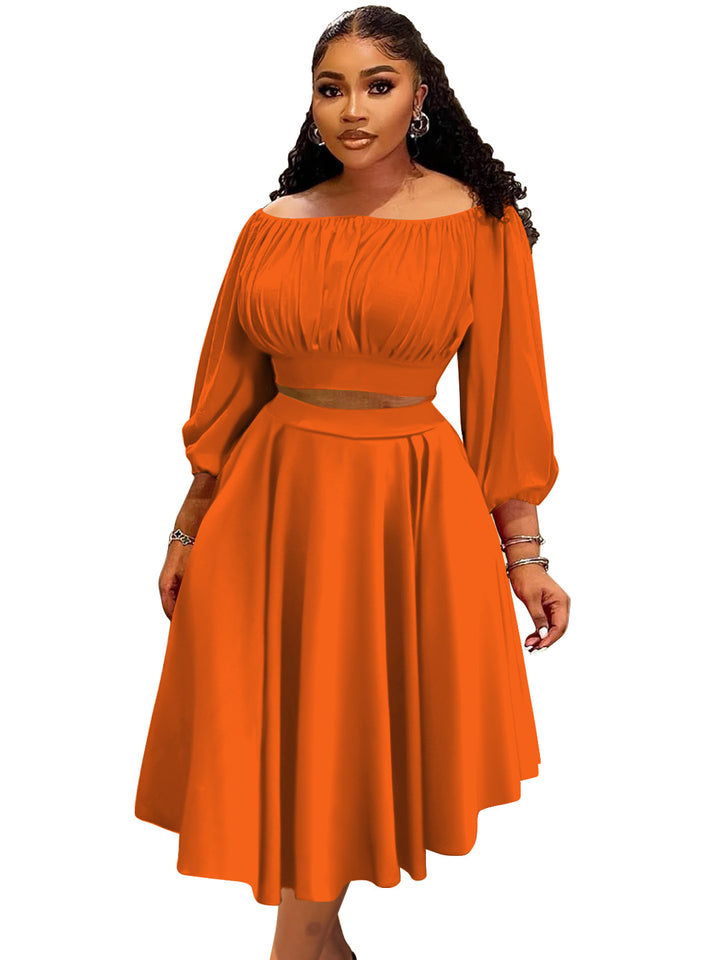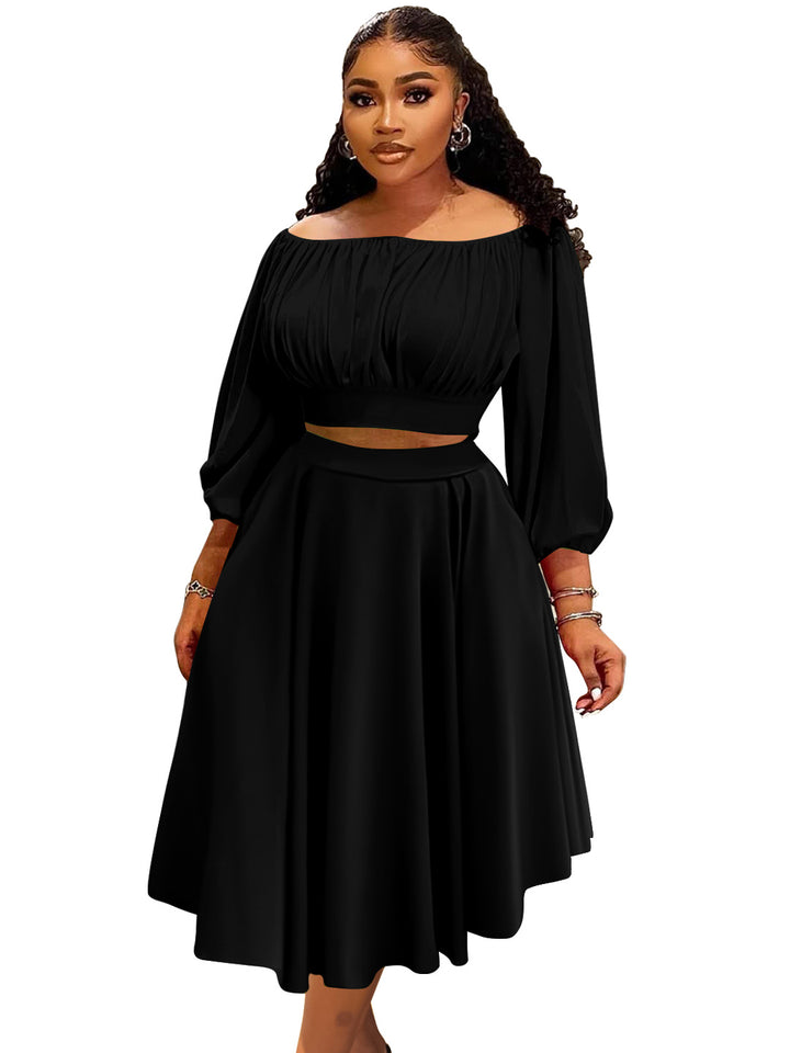N8129 European and American women's clothing, off-the-shoulder short top, high waist skirt set, autumn and winter two-piece set