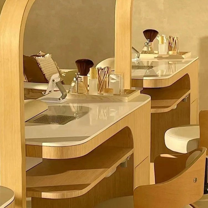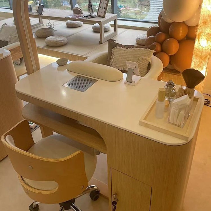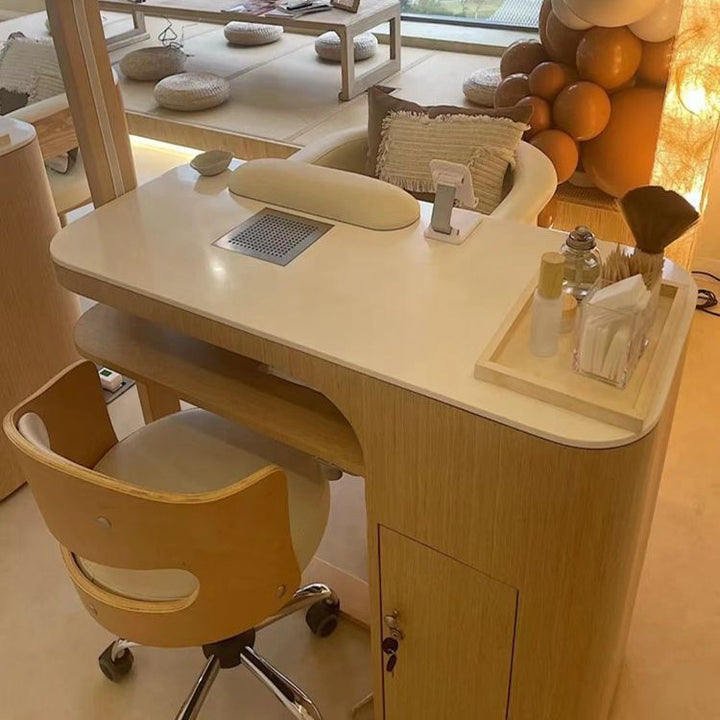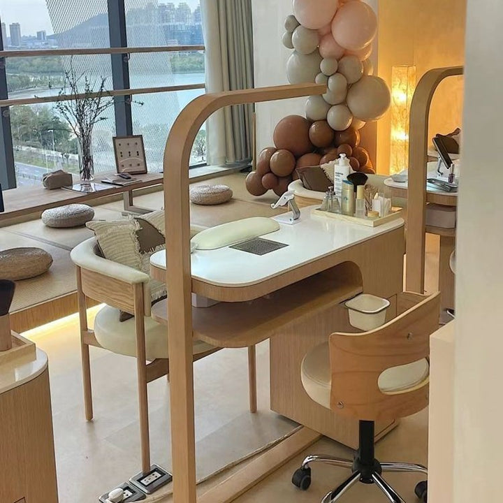 Nail salon solid wood paint Japanese-style simple and economical nail art tables and chairs s...