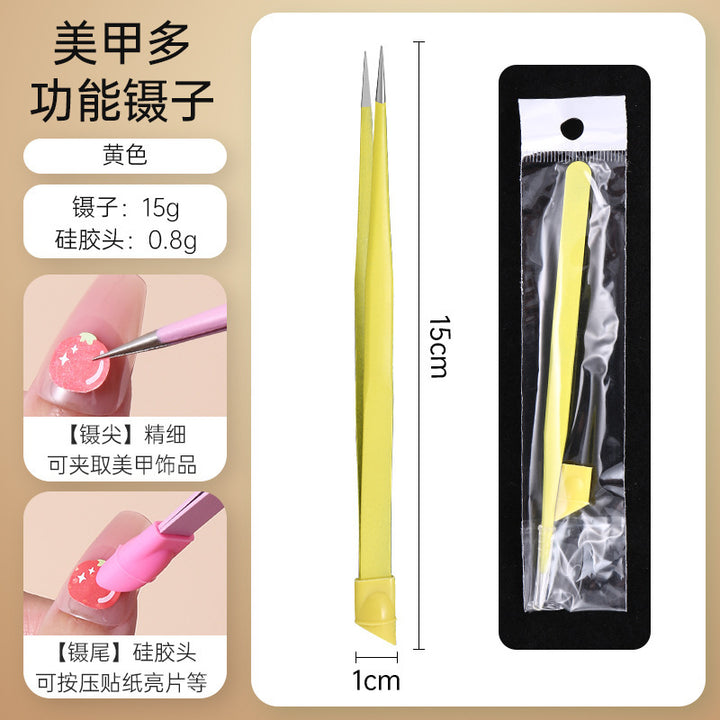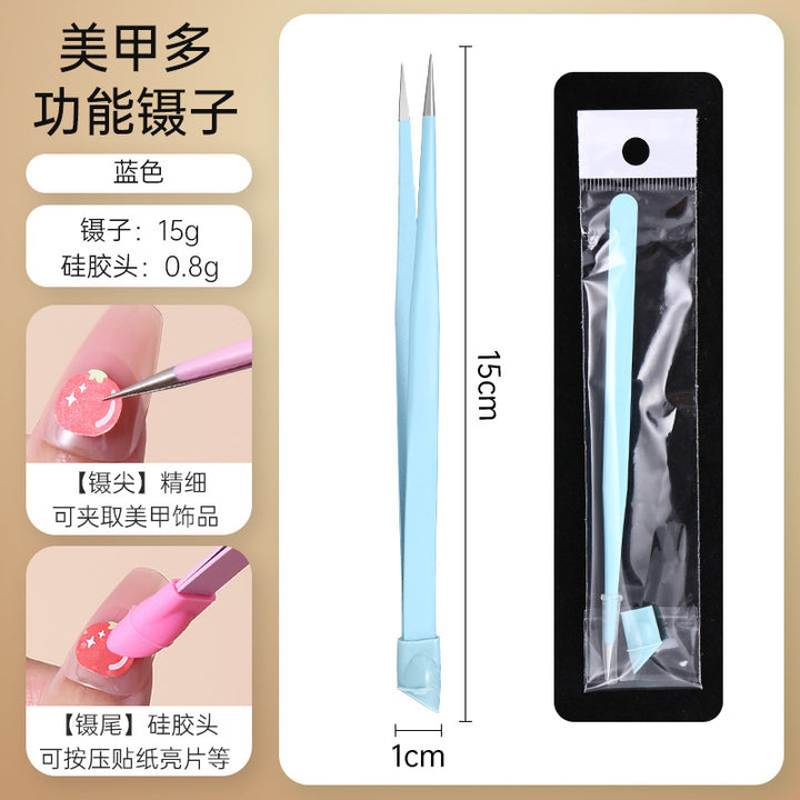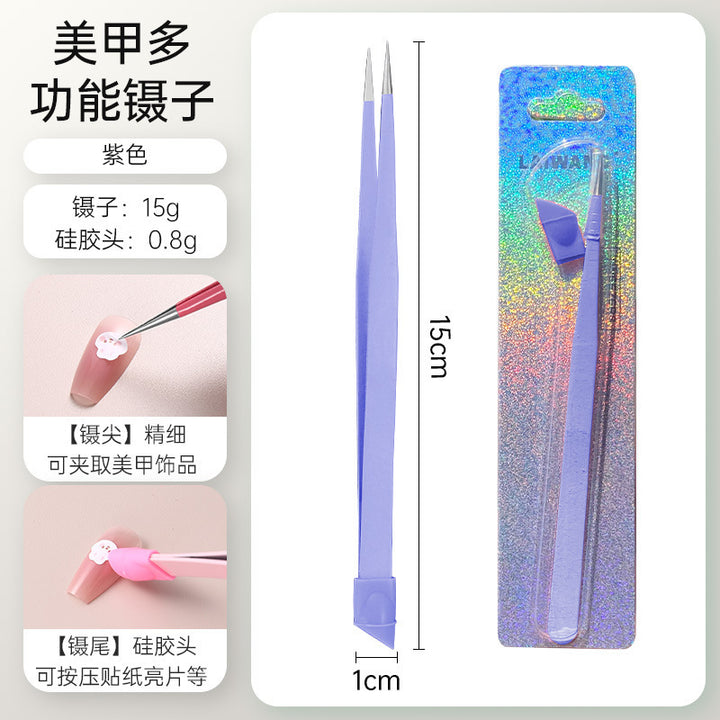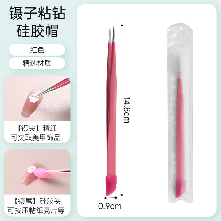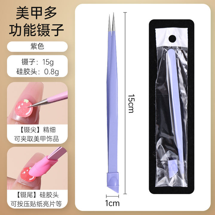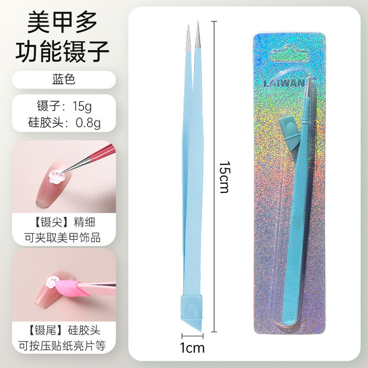 Nail tweezers Silicone press sticker Drill tweezers Straight tip Stainless steel Color tweezers Special tools for nail salons