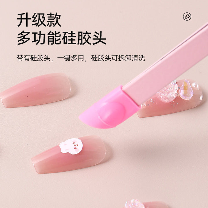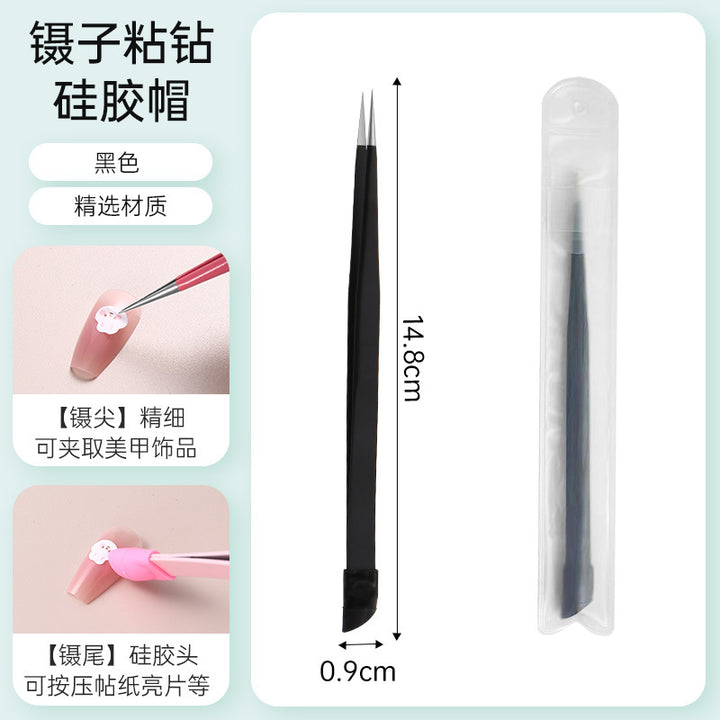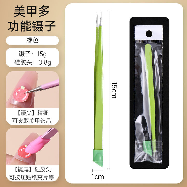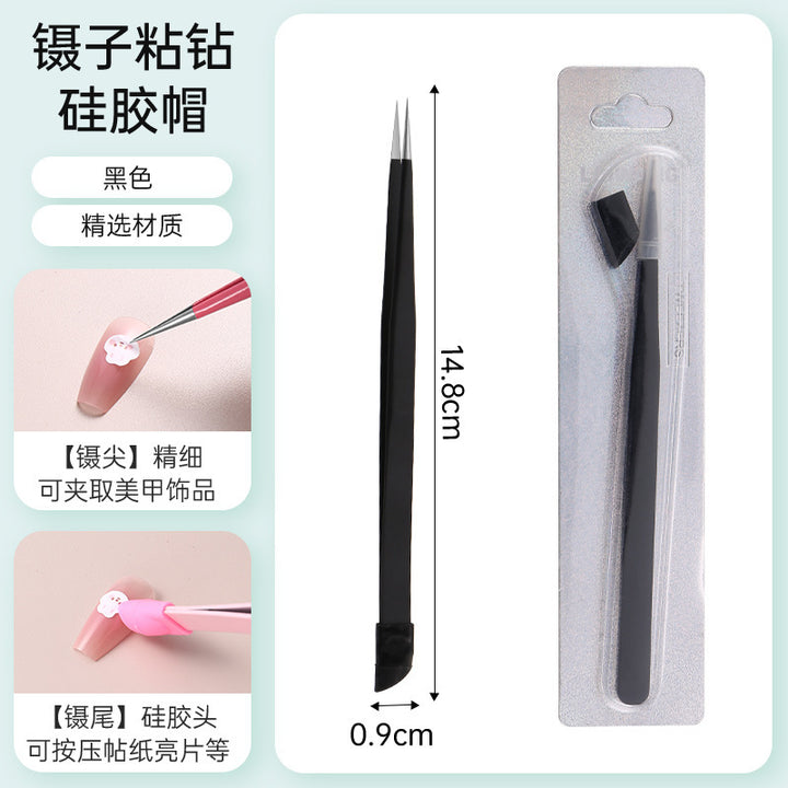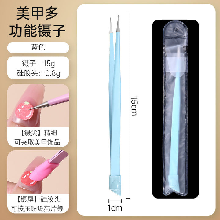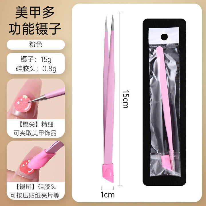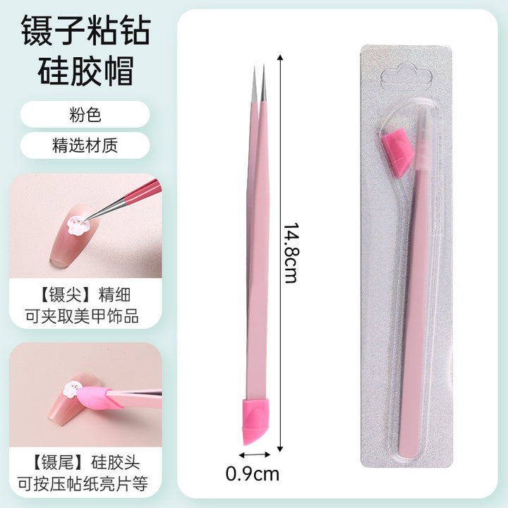 Nail tweezers Silicone press sticker Drill tweezers Straight tip Stainless steel Color tweezers Special tools for nail salons