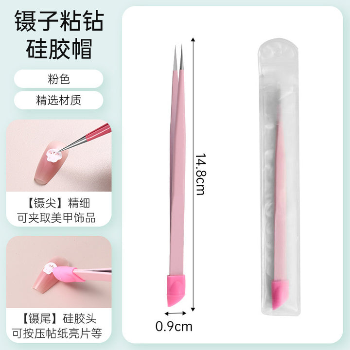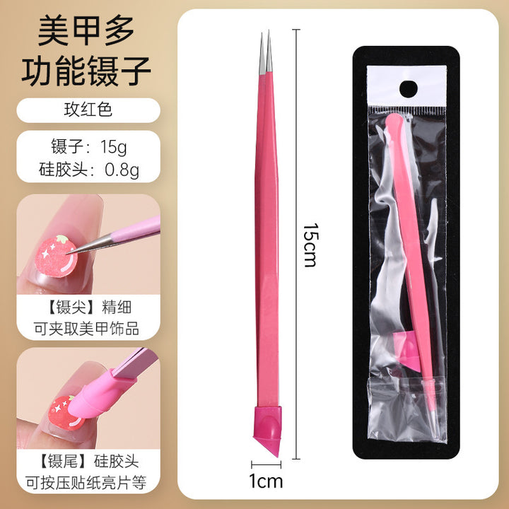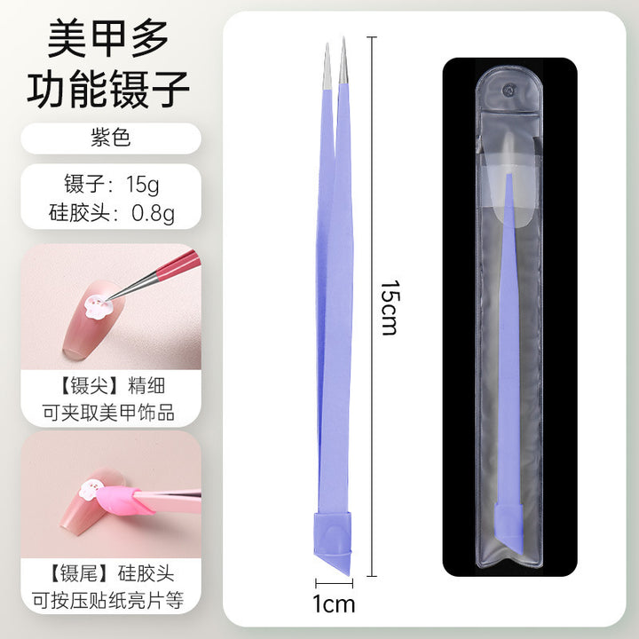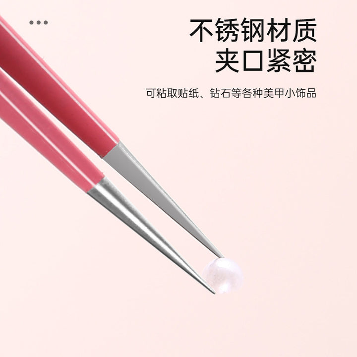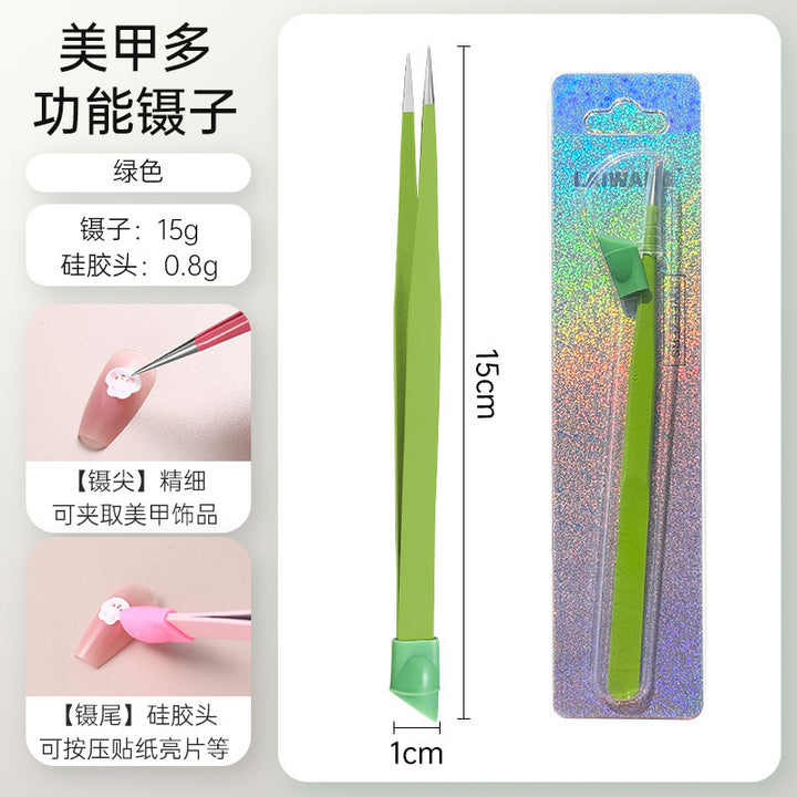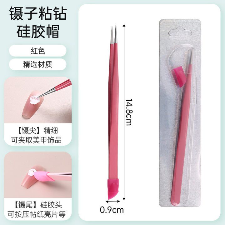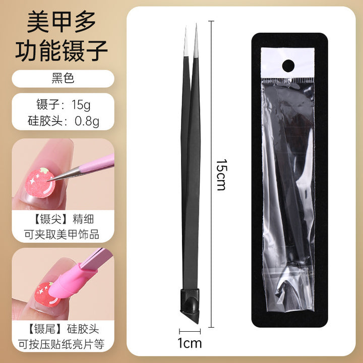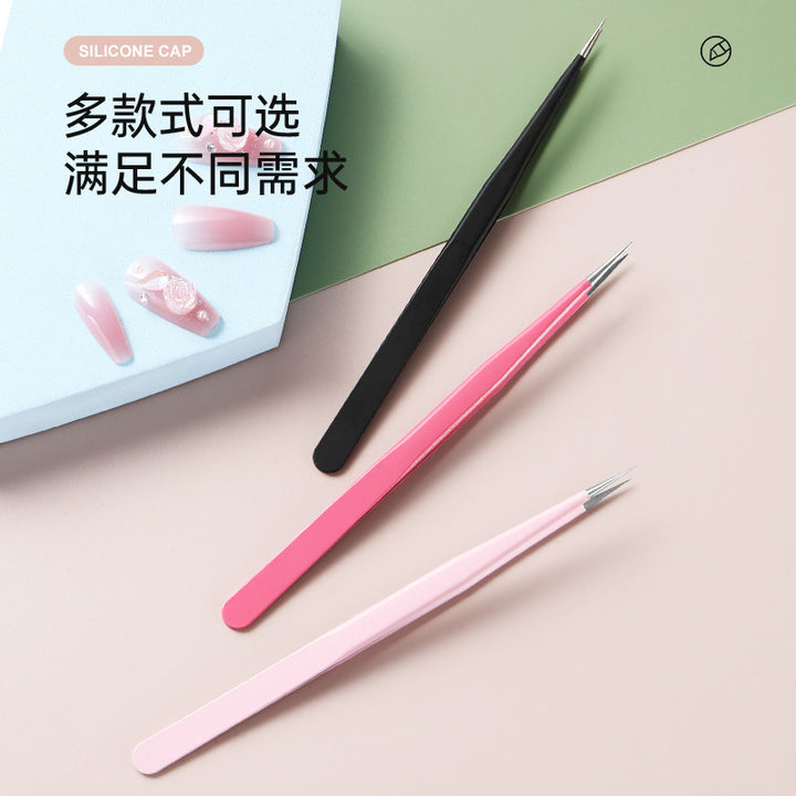 Nail tweezers Silicone press sticker Drill tweezers Straight tip Stainless steel Color tweezers Special tools for nail salons