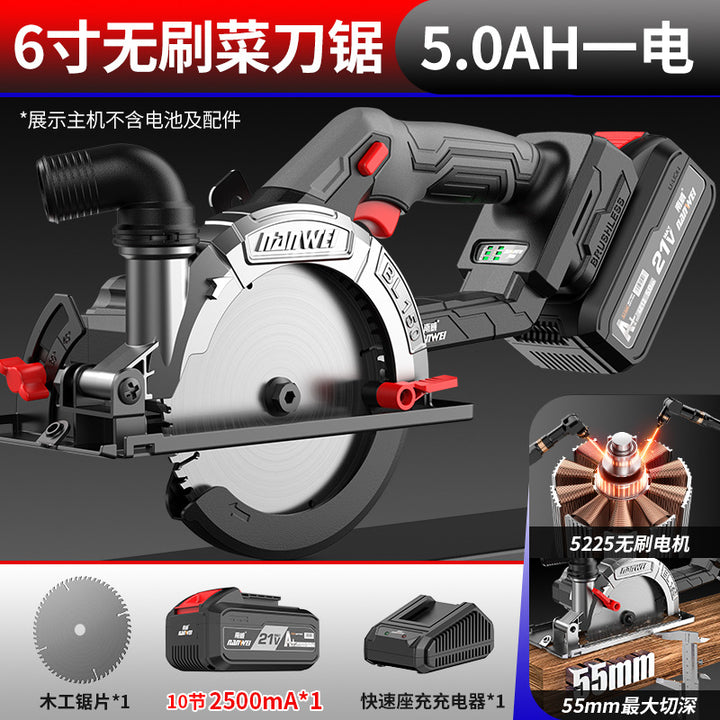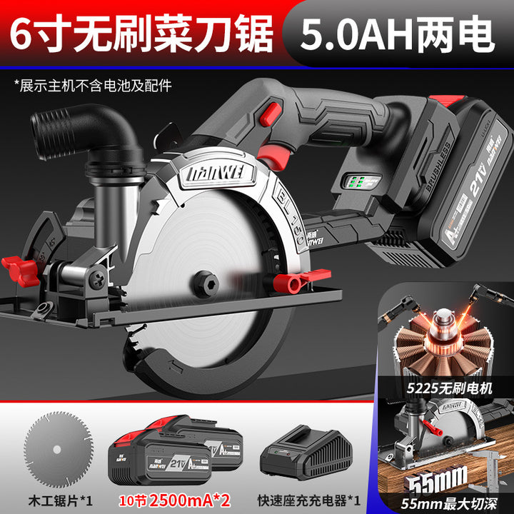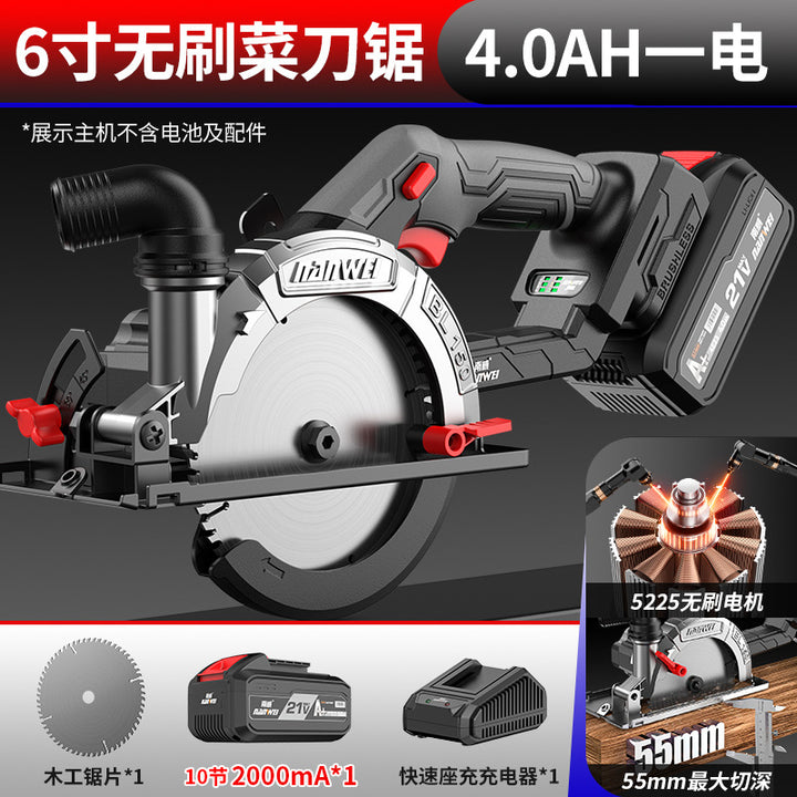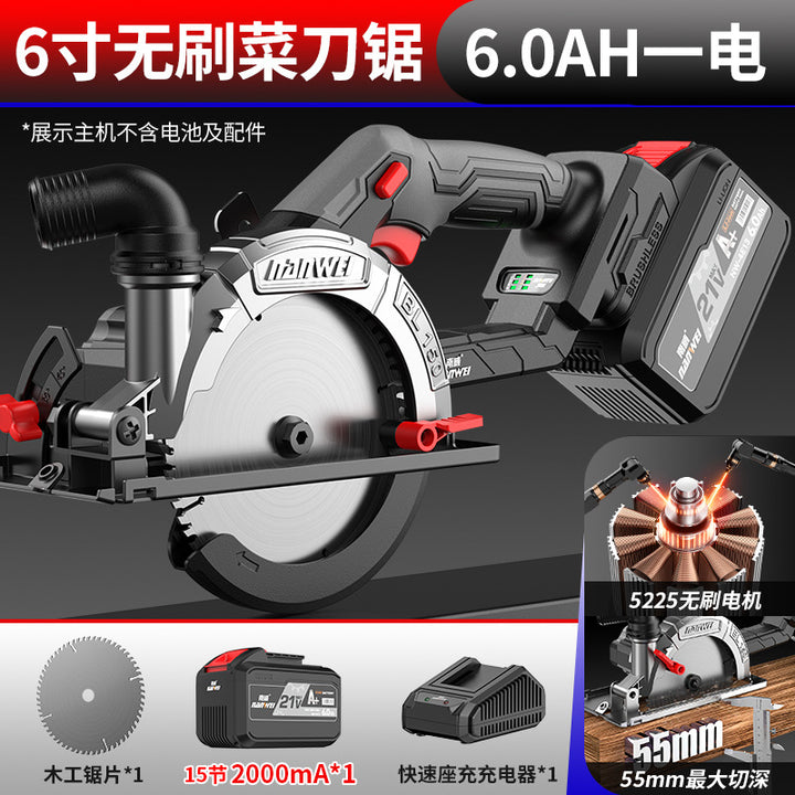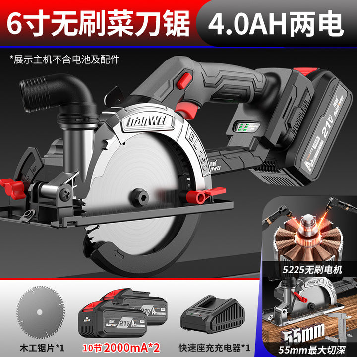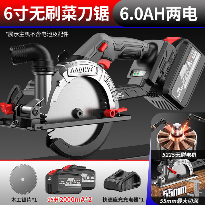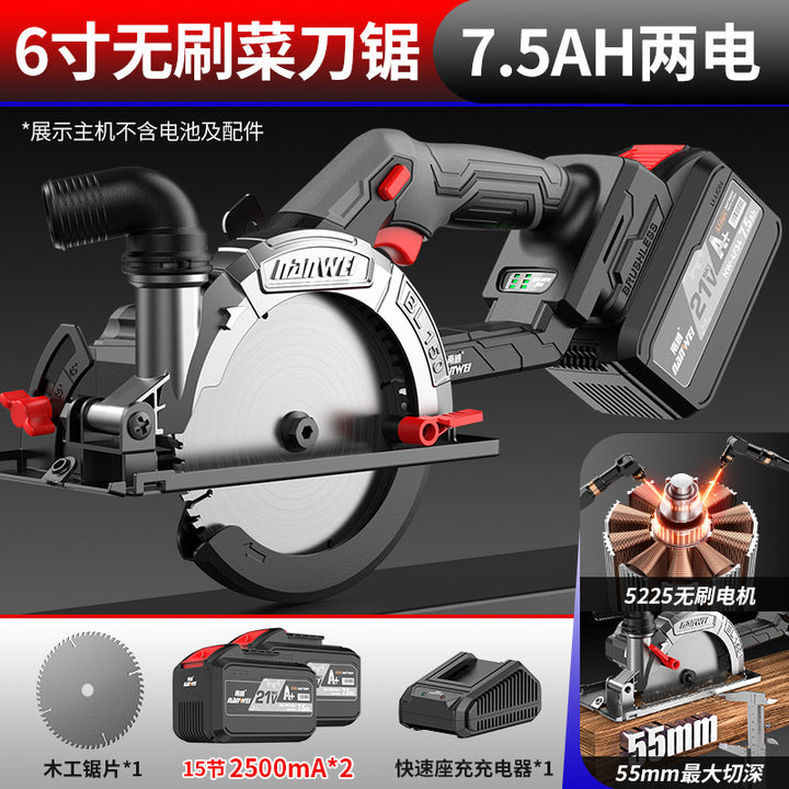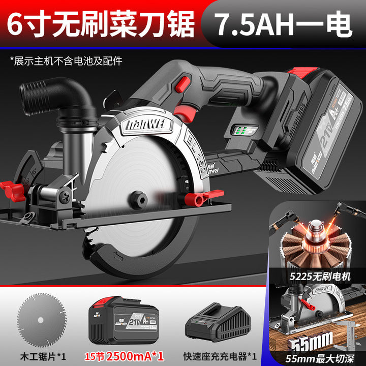 Nanwei brushless electric circular saw 6 inch lithium battery kitchen knife saw power tool cutting machine woodworking stone hand push saw circular...
