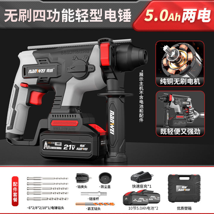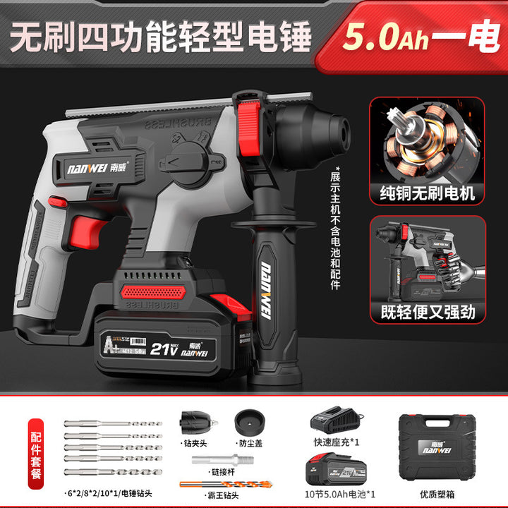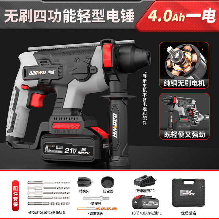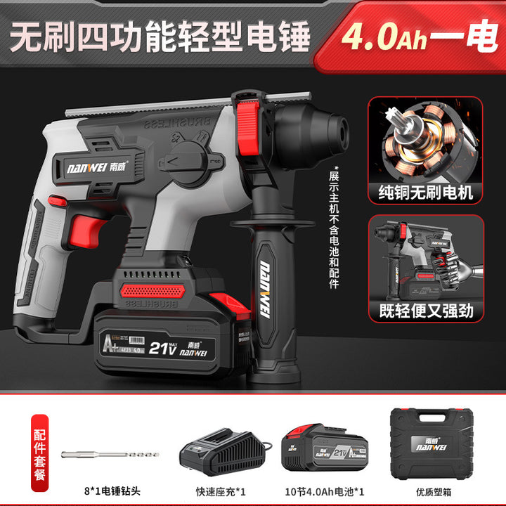 Nanwei brushless electric hammer light household electric impact drill hitting concrete rechargeable electric hammer pick wireless impact drill