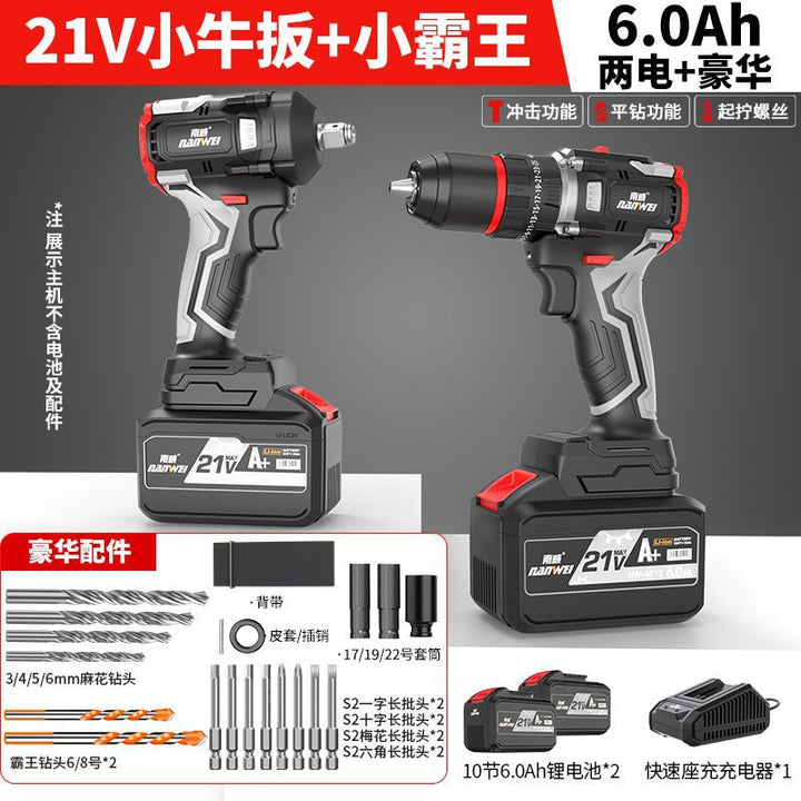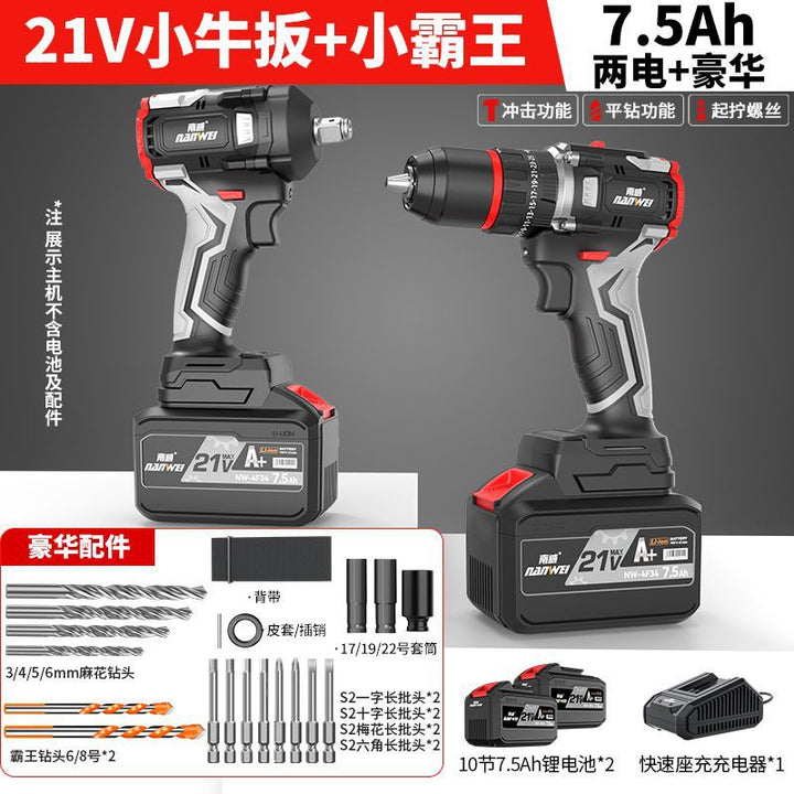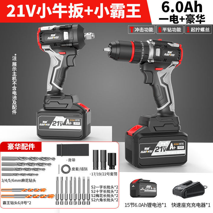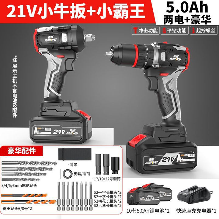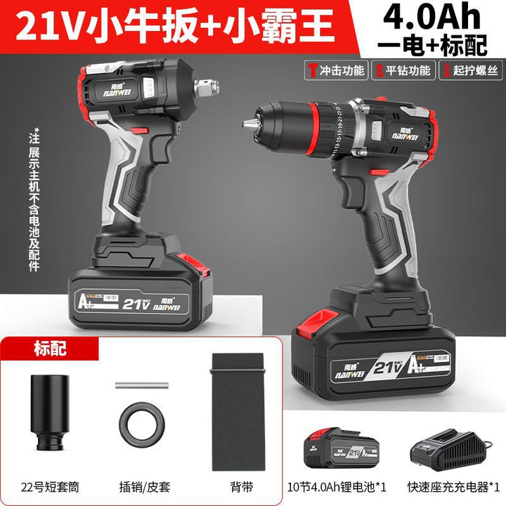 Nanwei brushless electric wrench lithium battery drill pistol drill household hand electric drill auto repair impact wrench two-piece combination
