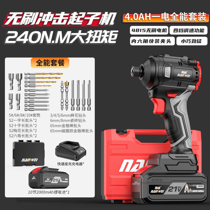 Nanwei brushless lithium battery impact screwdriver household electric screwdriver electric drill rechargeable screw batch electric screwdriver