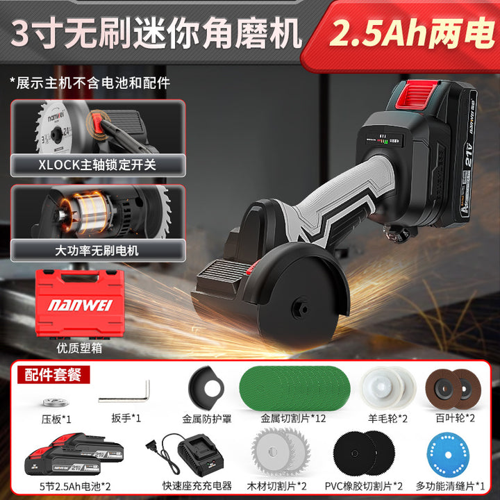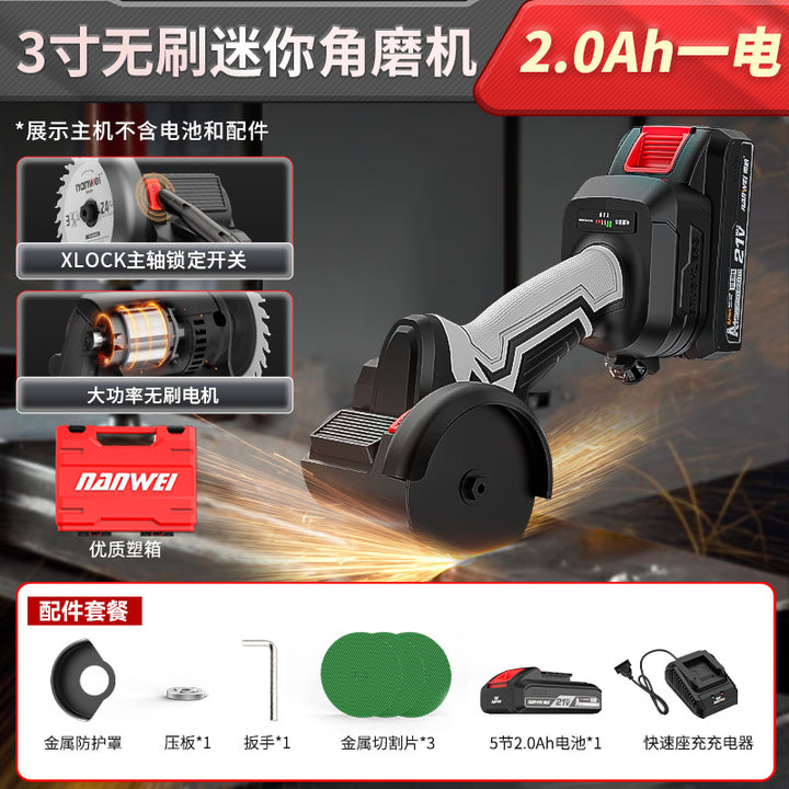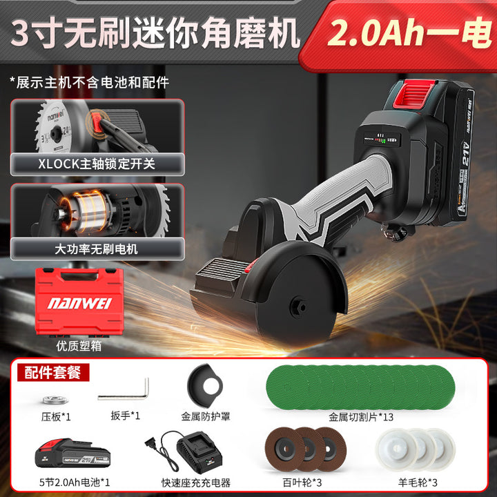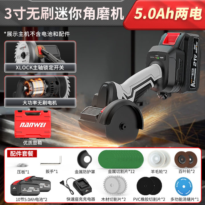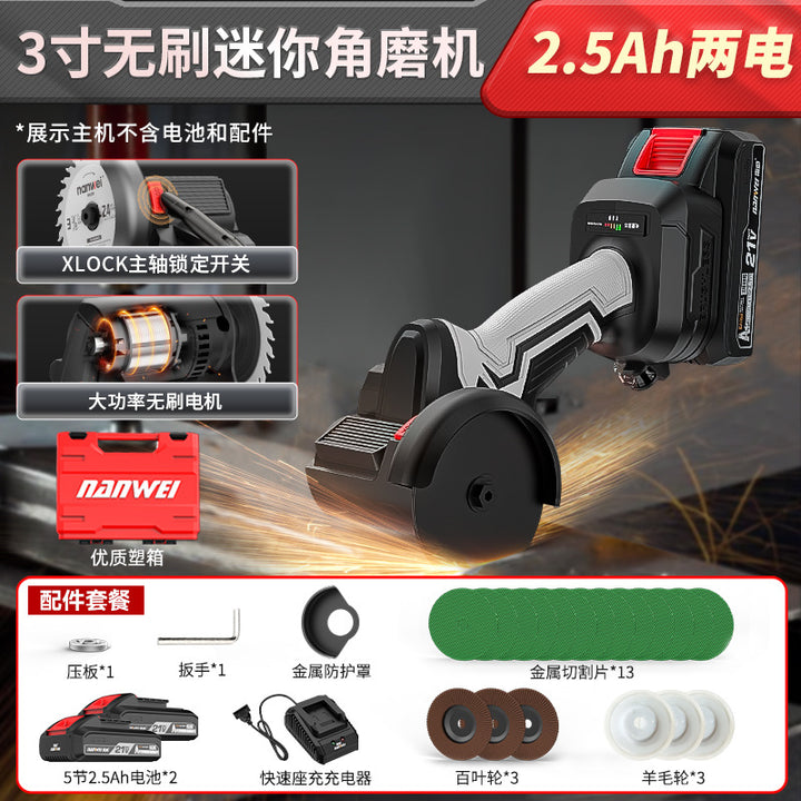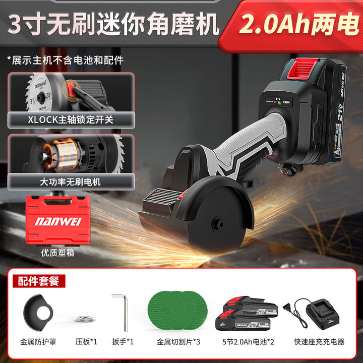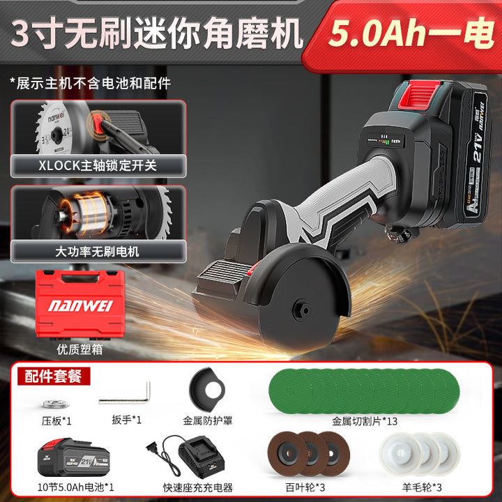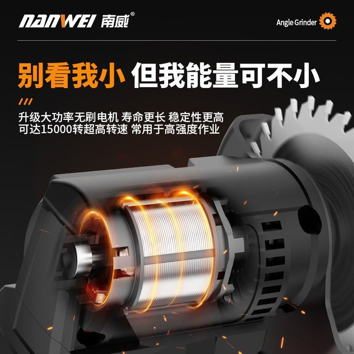 Nanwei Brushless Mini Angle Grinder 3 Inch Grinder Grinder Multifunctional Small Rechargeable Hand Grinding Cutting Machine