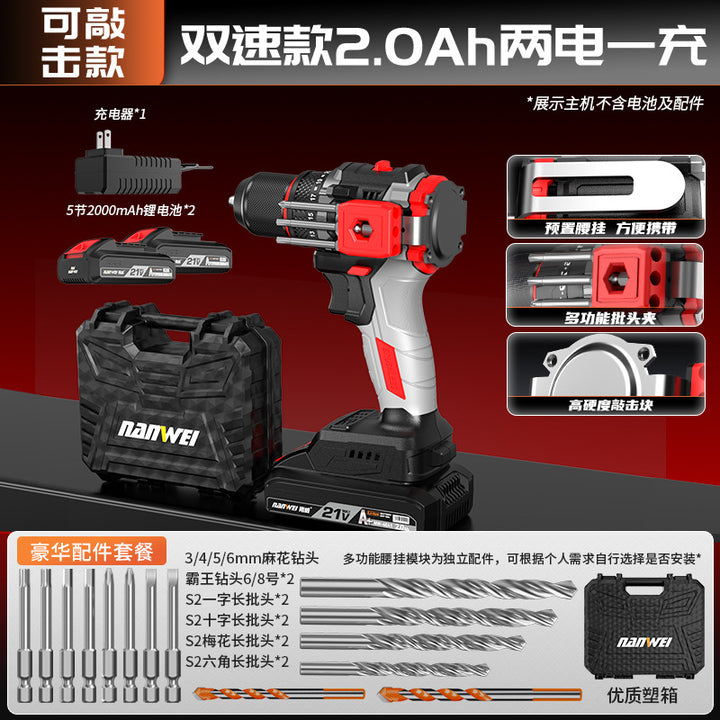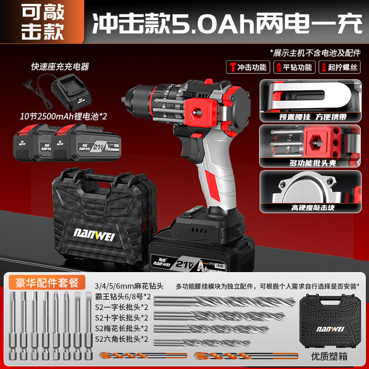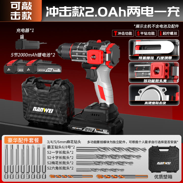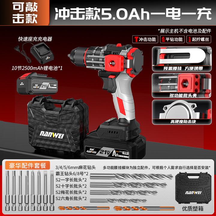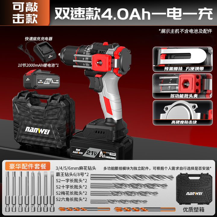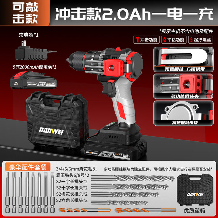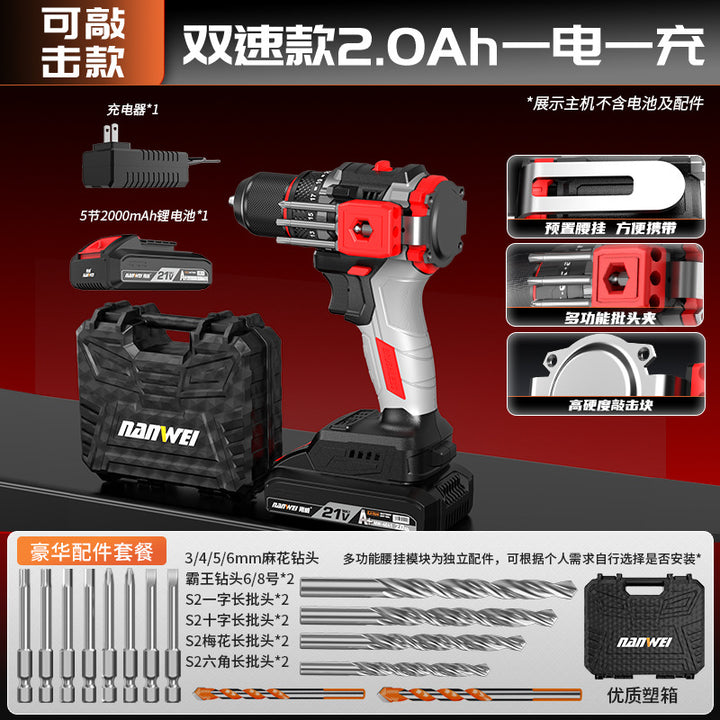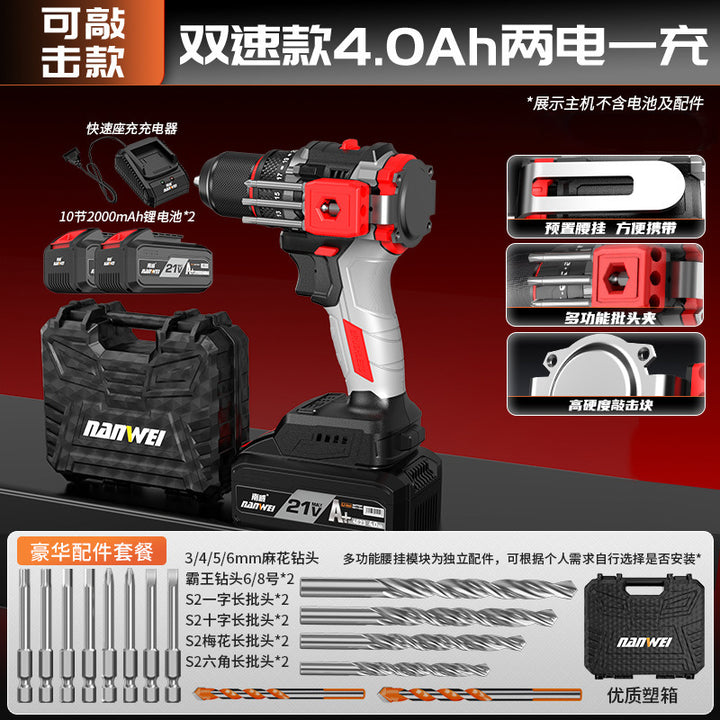 Nanwei brushless percussion electric drill brushless hand drill screwdriver household pistol drill multi-functional impact lithium battery drill