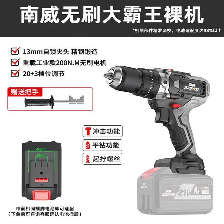 Nanwei brushless rechargeable lithium battery electric hammer electric pick electric drill electric wrench angle grinder power tool bare metal set