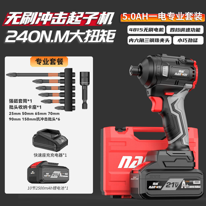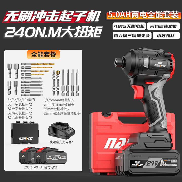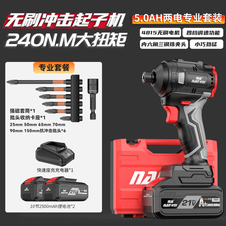 Nanwei brushless screwdriver high torque electric drill pistol drill impact screw batch industrial lithium battery impact drill