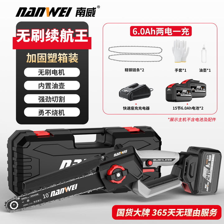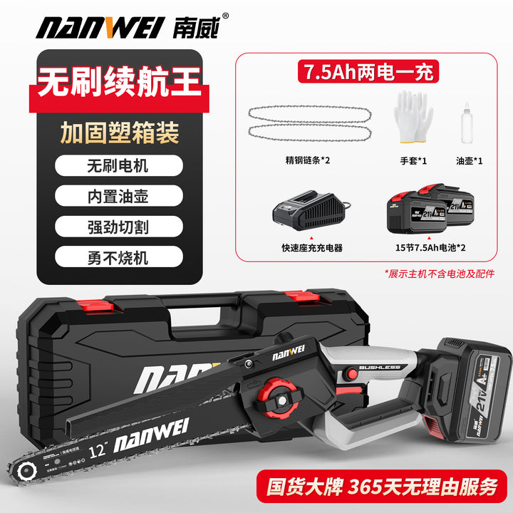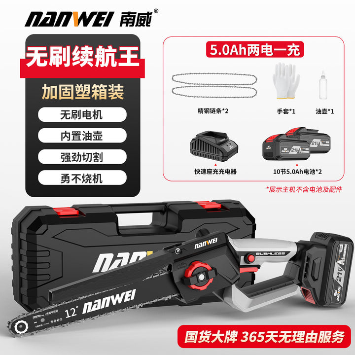 Nanwei electric chain saw brushless 12-inch high-speed saw household handheld rechargeable chainsaw logging pruning saw lithium battery tools