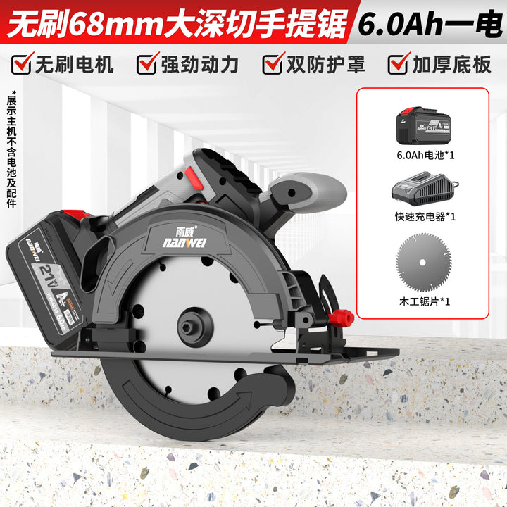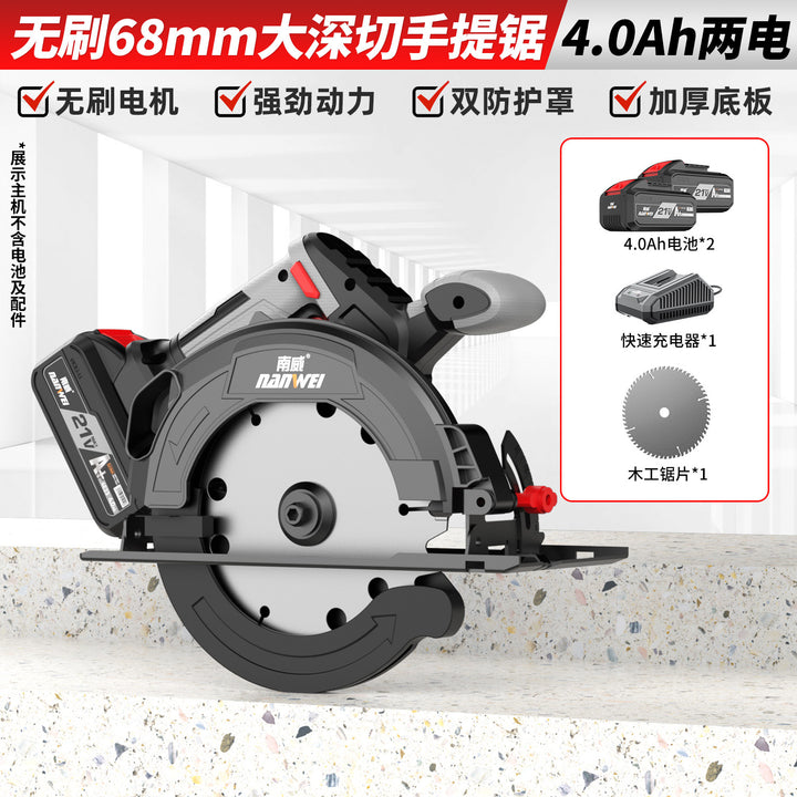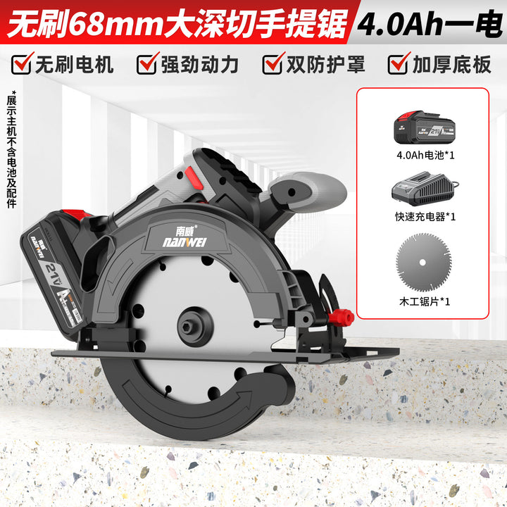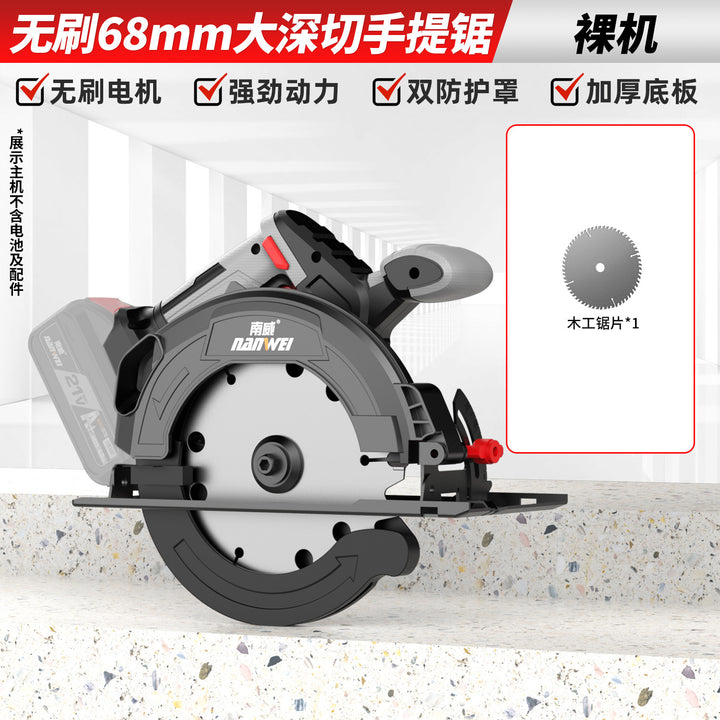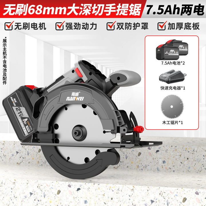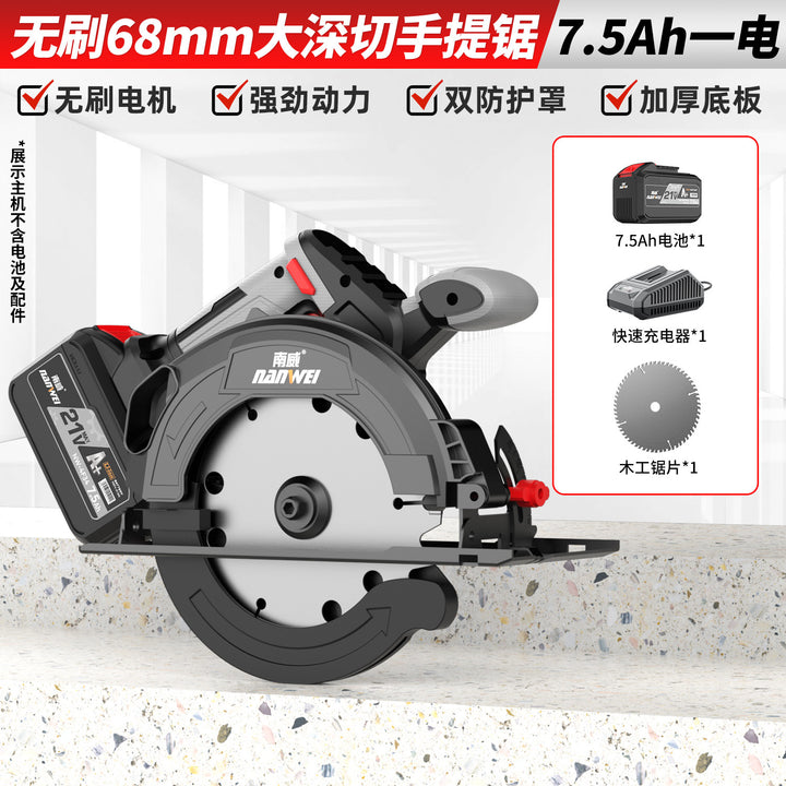 Nanwei Electric Circular Saw 7 Inch Hand Saw Brushless Lithium Electric Woodworking Stone Chainsaw Cutting Machine Hand Push Saw Circular Saw