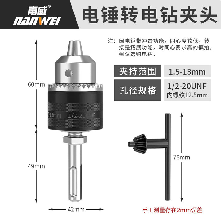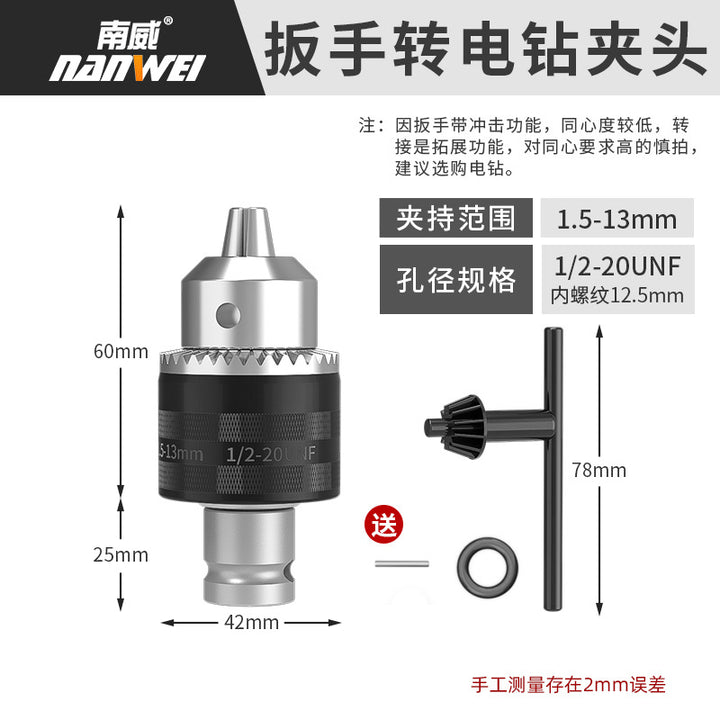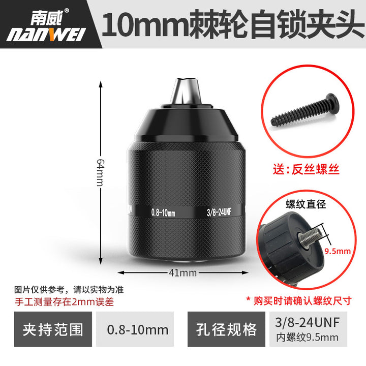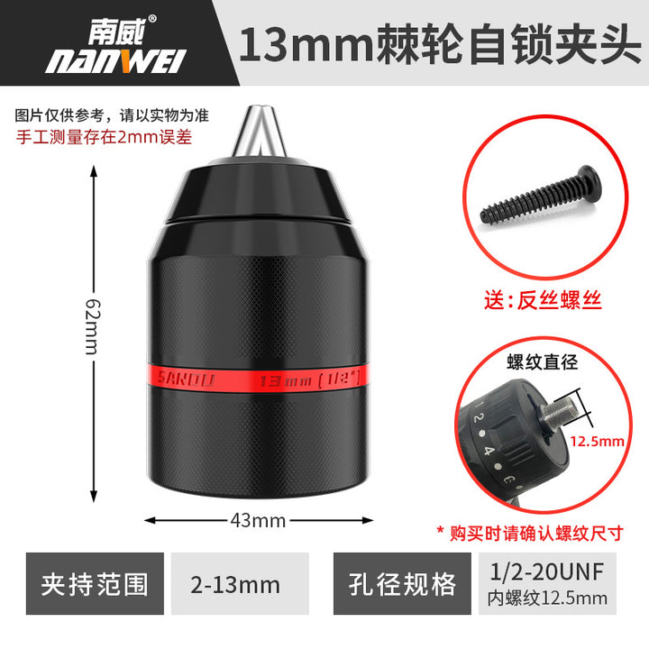 Nanwei metal ratchet self-locking drill chuck 13MM iron clamp head wrench electric hammer change electric drill adapter 10MM wholesale