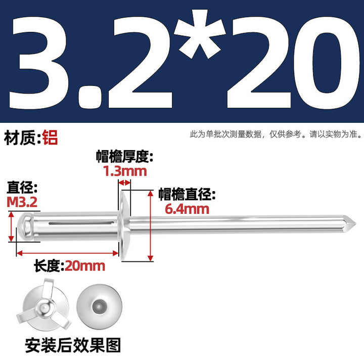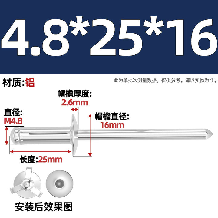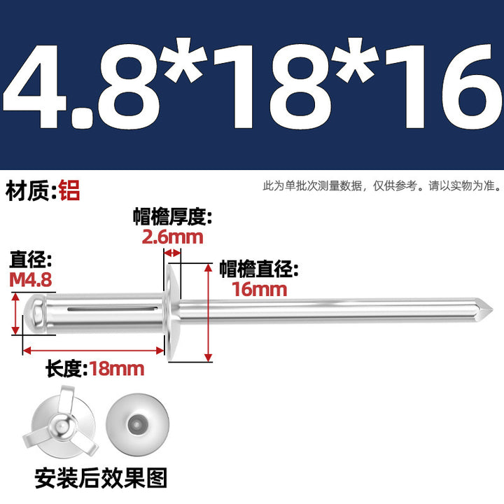National standard, all aluminum, lantern blind core rivets, large brim rivets, three-claw rivets, automotive