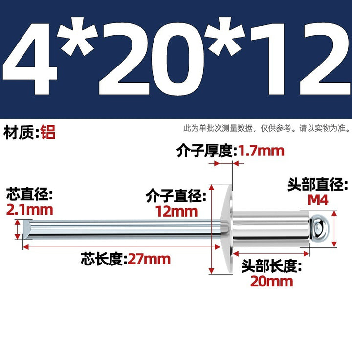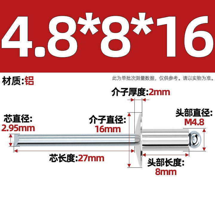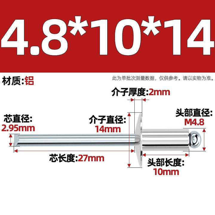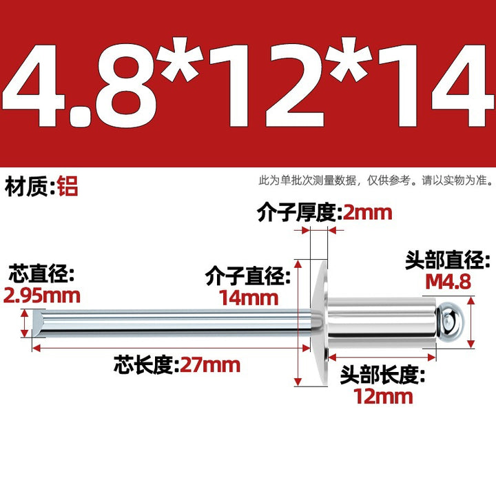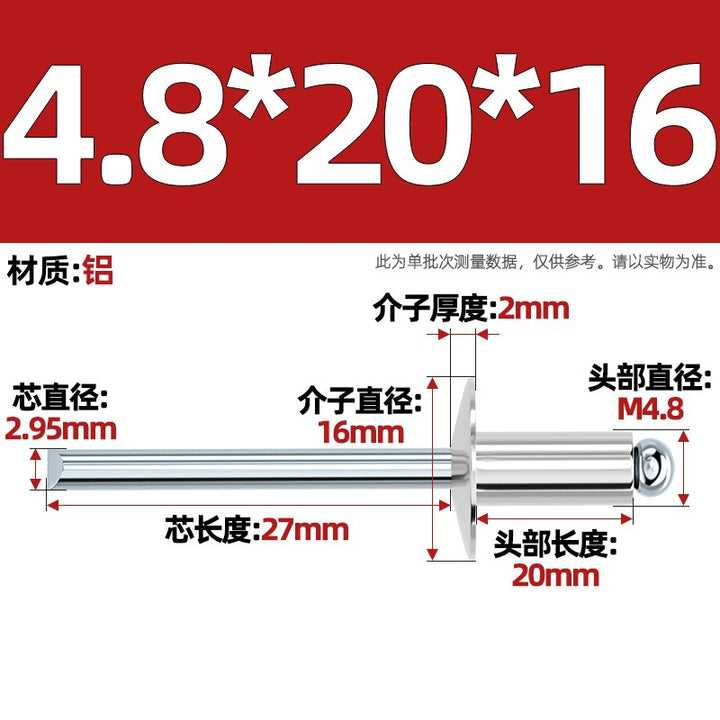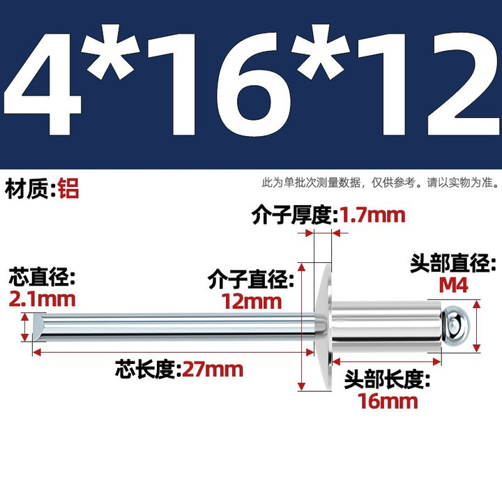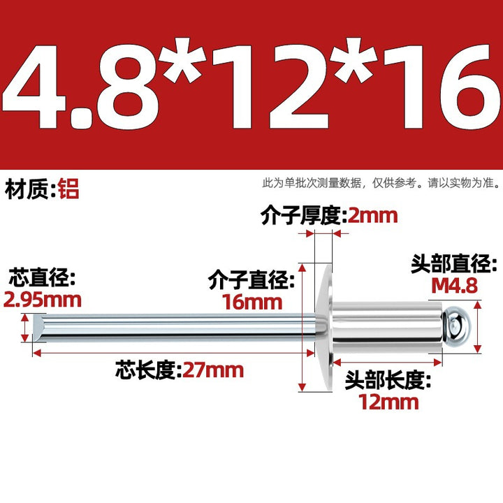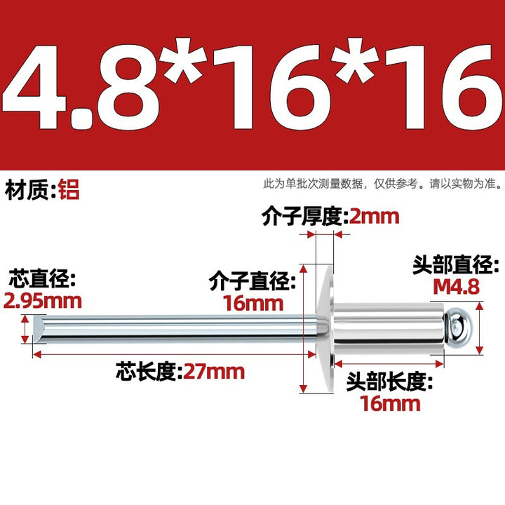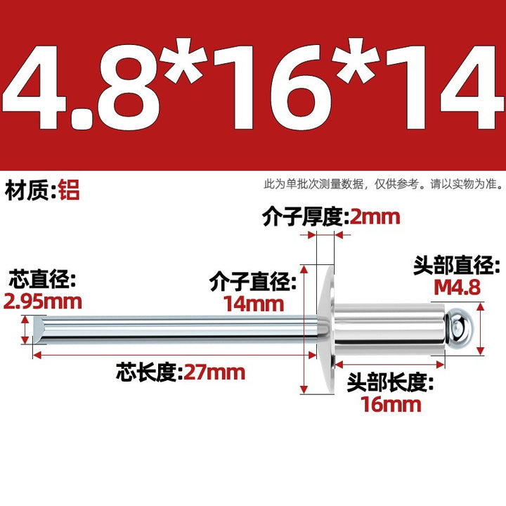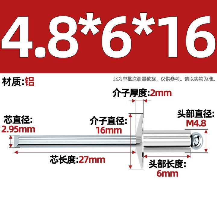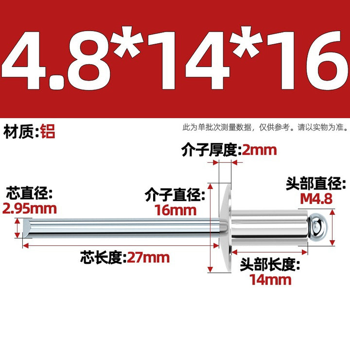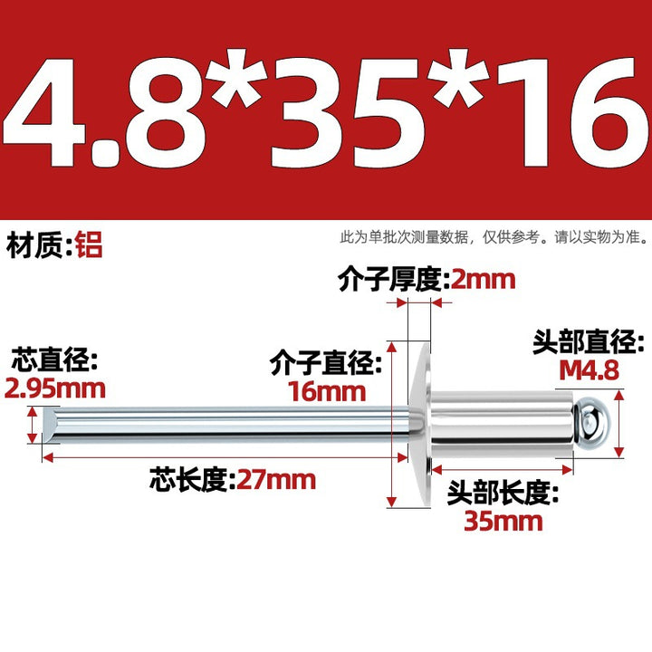 National standard aluminum, big hat blind rivets, round head open type, big head pull nails, big flat head car pull rivets