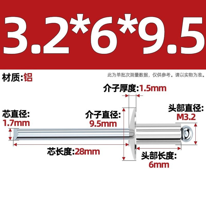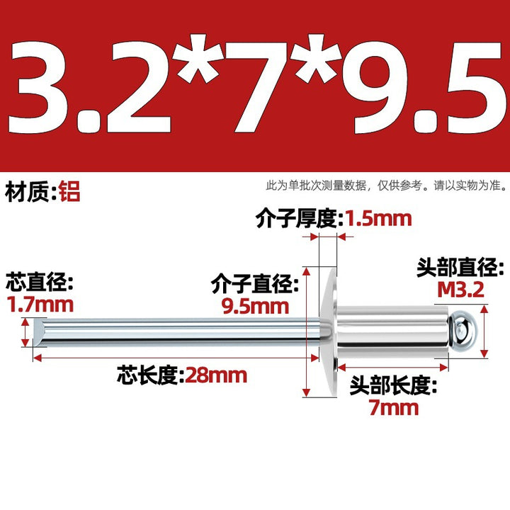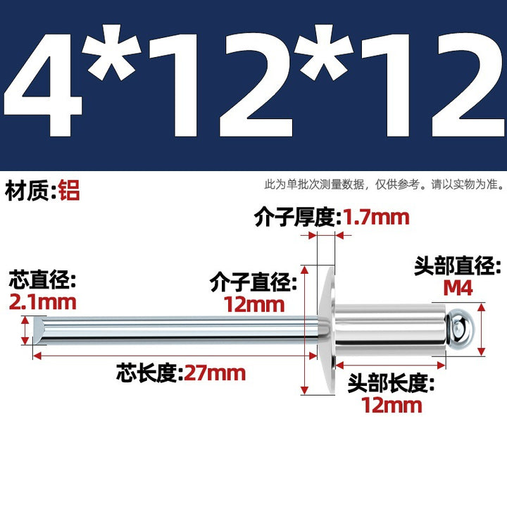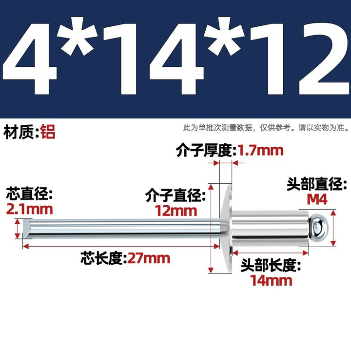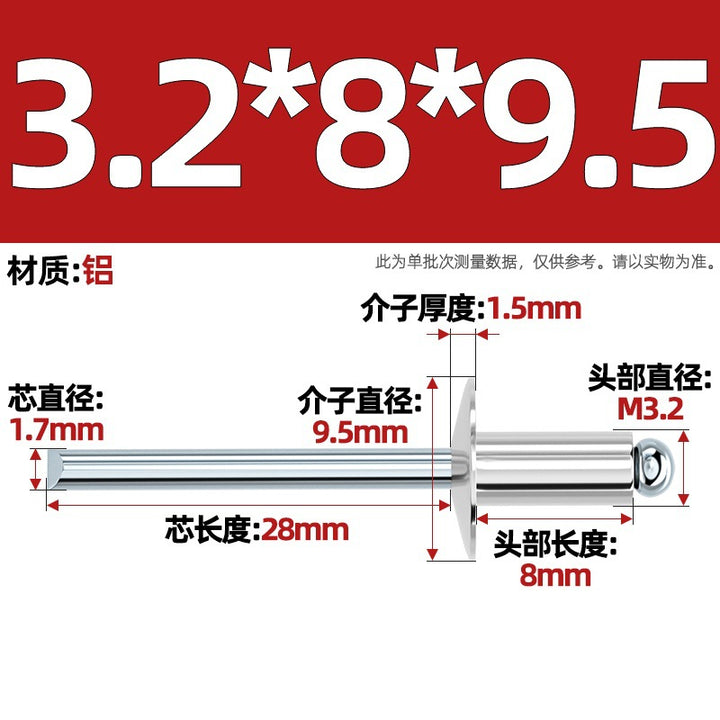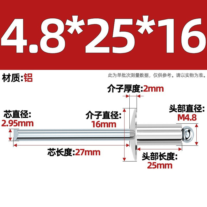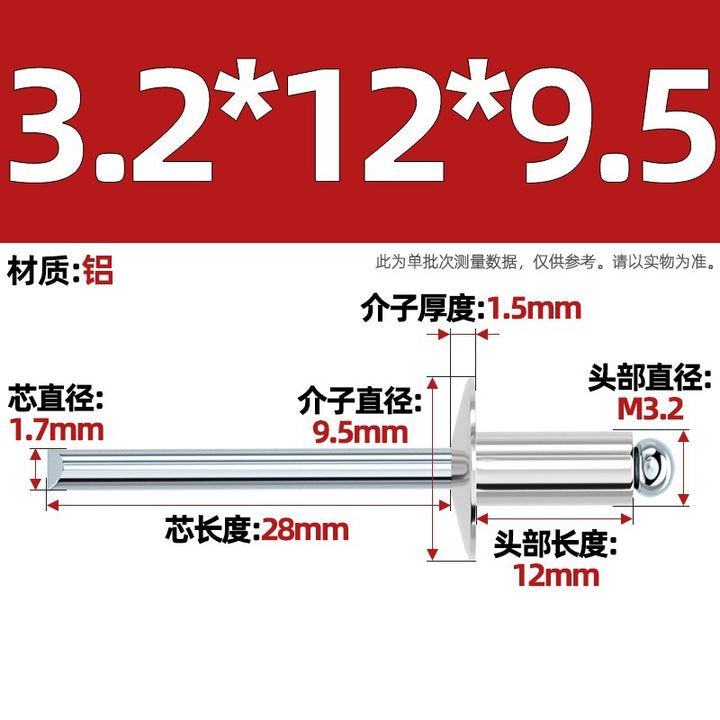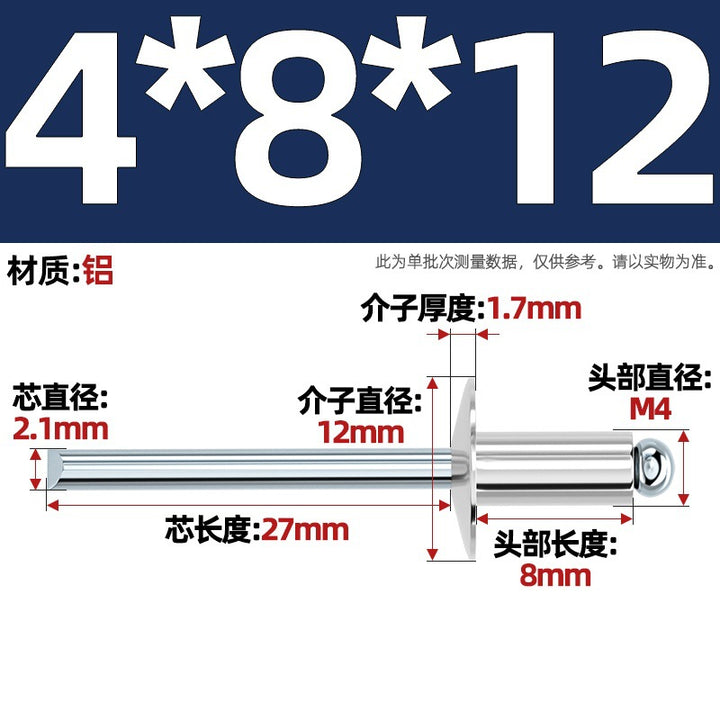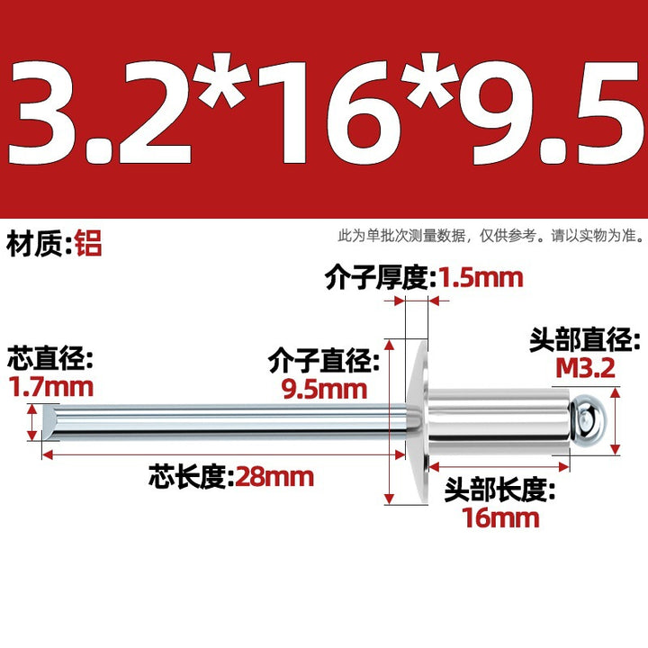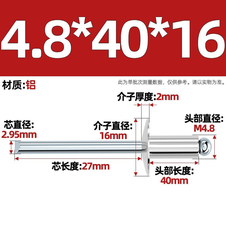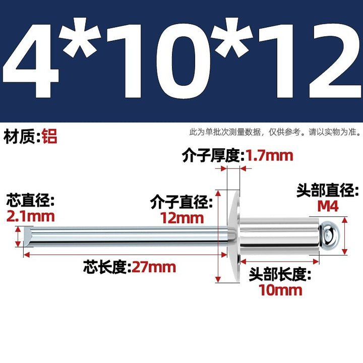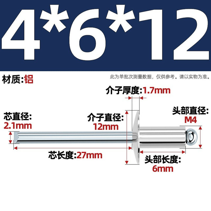 National standard aluminum, big hat blind rivets, round head open type, big head pull nails, big flat head car pull rivets