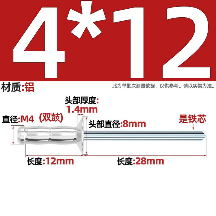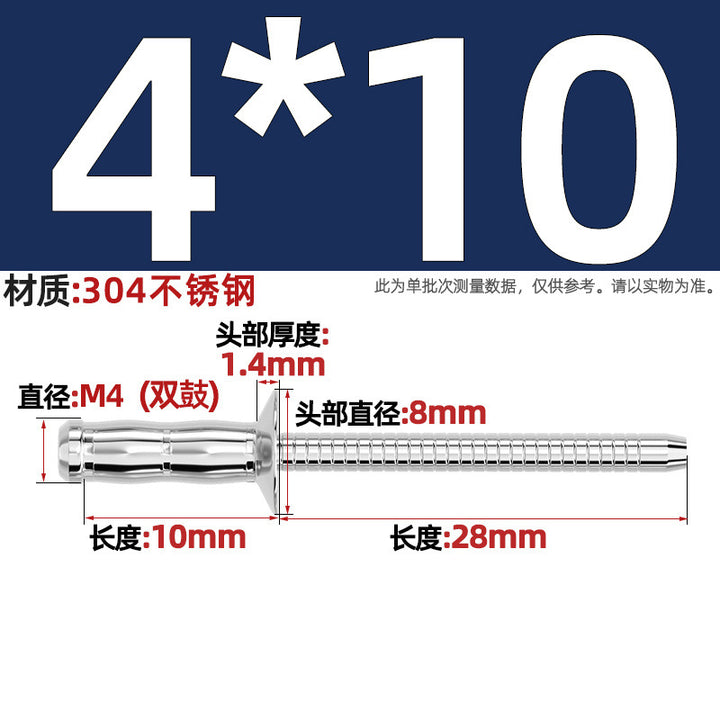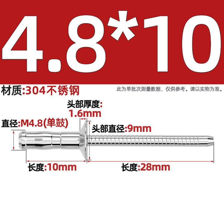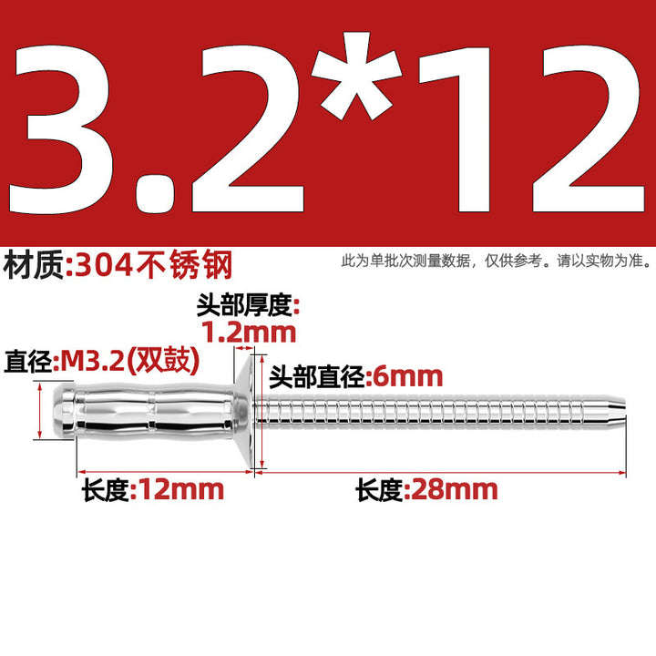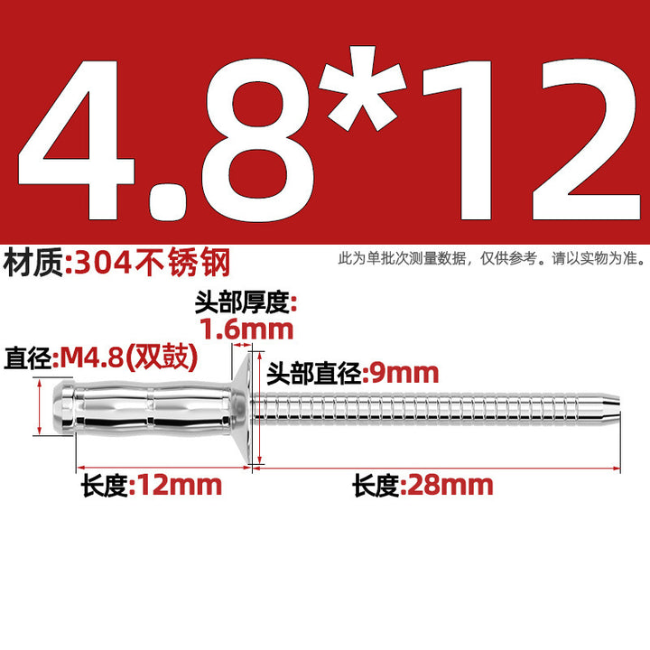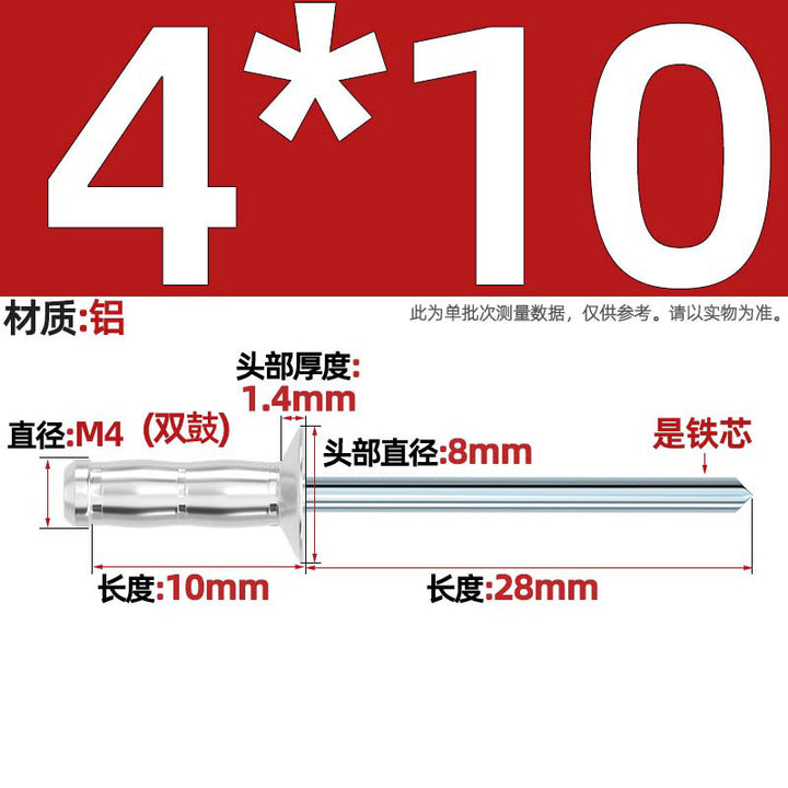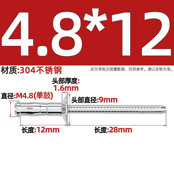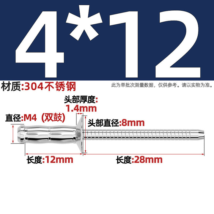 Double drum, natural aluminum head iron core 4 * 10 [1 piece] 1000pcs/box, Double drum, natural aluminum head iron core 4 * 12 [1 piece] 500pcs/box, Double drum, blue zinc all iron 4 * 10 [1 piece] 1000pcs/box, Double drum, blue zinc all iron 4 * 12 [1 piece] 500pcs/box, Double drum, blue zinc all iron 4.8 * 12 [1 piece] 500pcs/box, Double drum 304 all steel 3.2 * 10 [1 piece] 1000pcs/box, Double drum 304 all steel 3.2 * 12 [1 piece] 1000pcs/box, Double drum 304 all steel 4 * 10 [1 piece] 1000pcs/box, Double drum 304 all steel 4 * 12 [1 piece] 500pcs/box, Double drum 304 all steel 4.8 * 12 [1 piece] 500pcs/box, Double drum 304 all steel 4.8 * 16 [1 piece] 500pcs/box, Double drum 304 all steel 4.8 * 22 [1 piece] 250pcs/box, Single drum, blue zinc all iron 4 * 10 [1 piece] 1000pcs/box, Single drum, blue zinc all-iron 4.8 * 12 [1 piece] 500pcs/box, Single drum 304 all steel 4 * 8 [1 piece] 1000pcs/box, Single drum 304 all steel 4 * 10 [1 piece] 1000pcs/box, Single drum 304 all steel 4 * 16 [1 piece] 500pcs/box, Single drum 304 all steel 4.8 * 10 [1 piece] 500pcs/box, Single drum 304 all steel 4.8 * 12 [1 piece] 500pcs/box, Single drum 304 all steel 4.8 * 16 [1 piece] 500pcs/box |