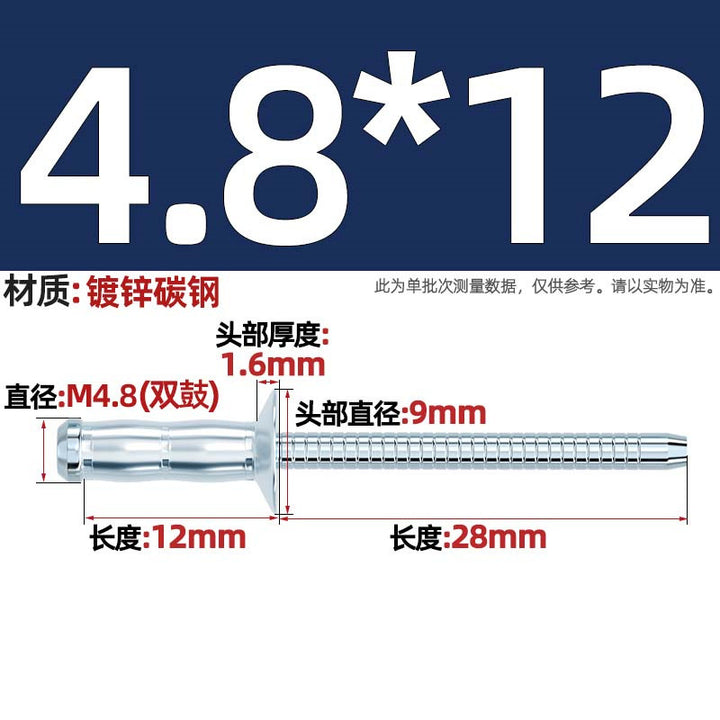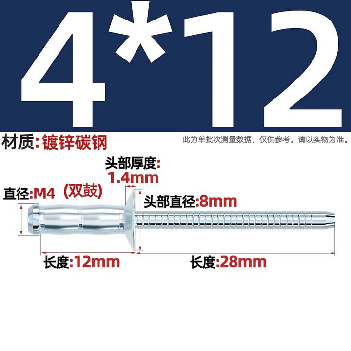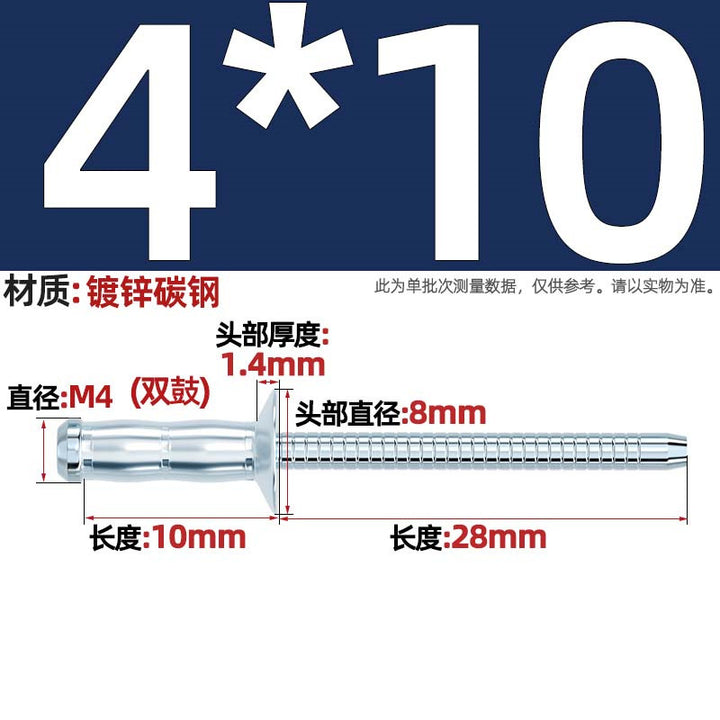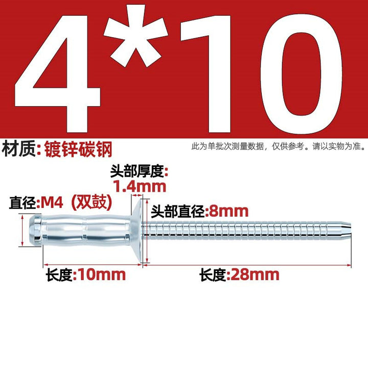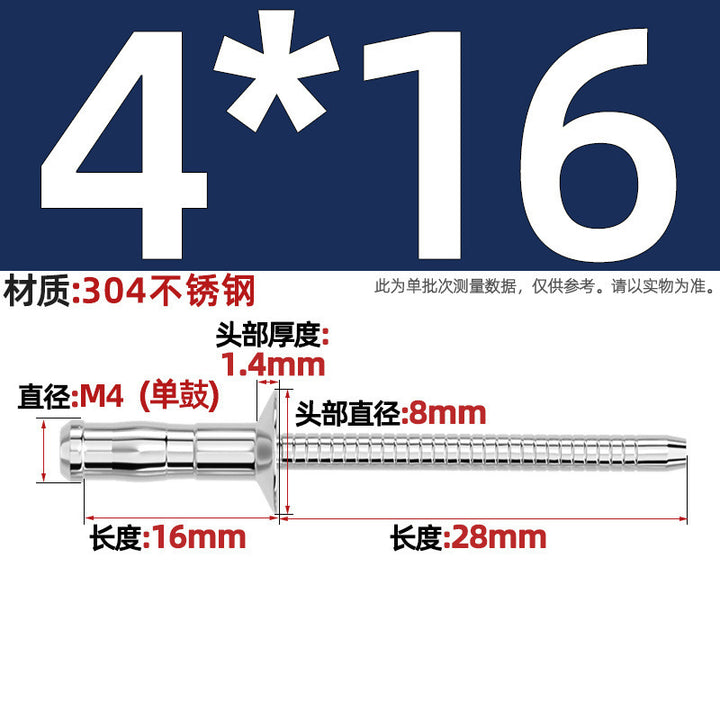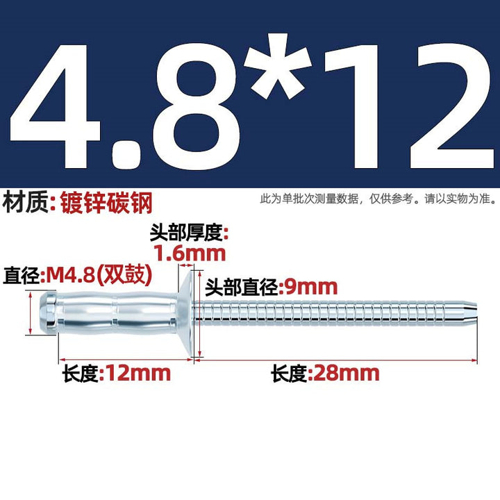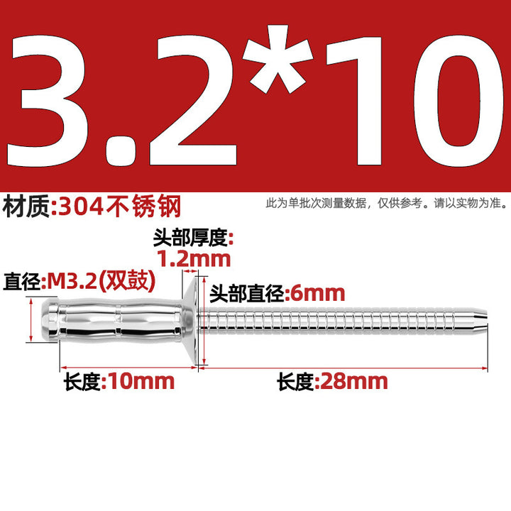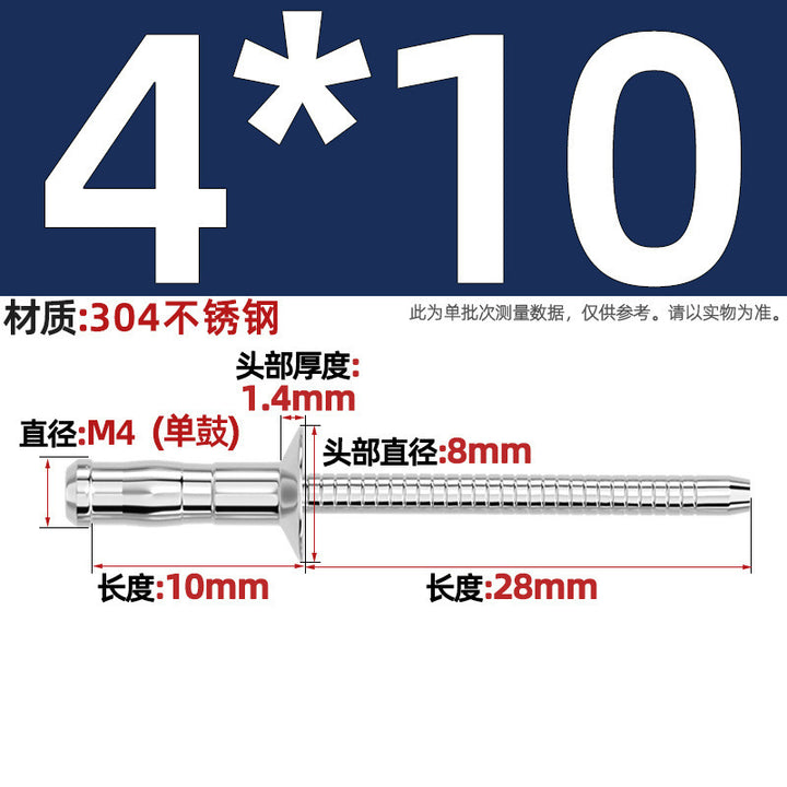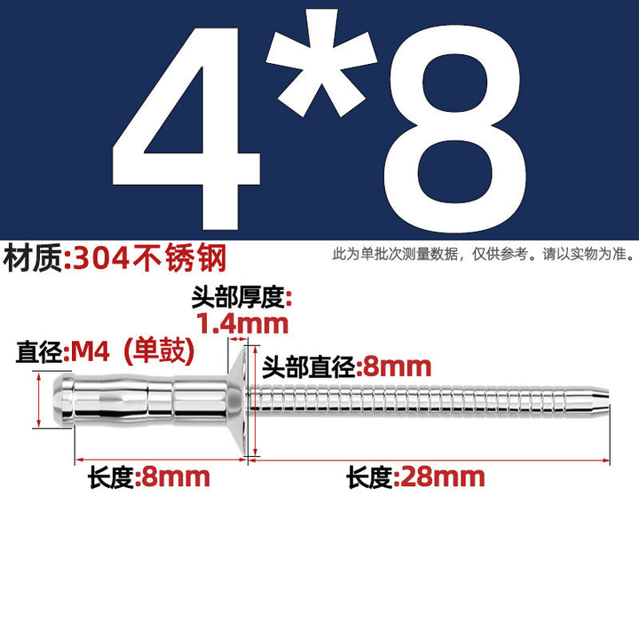 Double drum, natural aluminum head iron core 4 * 10 [1 piece] 1000pcs/box, Double drum, natural aluminum head iron core 4 * 12 [1 piece] 500pcs/box, Double drum, blue zinc all iron 4 * 10 [1 piece] 1000pcs/box, Double drum, blue zinc all iron 4 * 12 [1 piece] 500pcs/box, Double drum, blue zinc all iron 4.8 * 12 [1 piece] 500pcs/box, Double drum 304 all steel 3.2 * 10 [1 piece] 1000pcs/box, Double drum 304 all steel 3.2 * 12 [1 piece] 1000pcs/box, Double drum 304 all steel 4 * 10 [1 piece] 1000pcs/box, Double drum 304 all steel 4 * 12 [1 piece] 500pcs/box, Double drum 304 all steel 4.8 * 12 [1 piece] 500pcs/box, Double drum 304 all steel 4.8 * 16 [1 piece] 500pcs/box, Double drum 304 all steel 4.8 * 22 [1 piece] 250pcs/box, Single drum, blue zinc all iron 4 * 10 [1 piece] 1000pcs/box, Single drum, blue zinc all-iron 4.8 * 12 [1 piece] 500pcs/box, Single drum 304 all steel 4 * 8 [1 piece] 1000pcs/box, Single drum 304 all steel 4 * 10 [1 piece] 1000pcs/box, Single drum 304 all steel 4 * 16 [1 piece] 500pcs/box, Single drum 304 all steel 4.8 * 10 [1 piece] 500pcs/box, Single drum 304 all steel 4.8 * 12 [1 piece] 500pcs/box, Single drum 304 all steel 4.8 * 16 [1 piece] 500pcs/box |