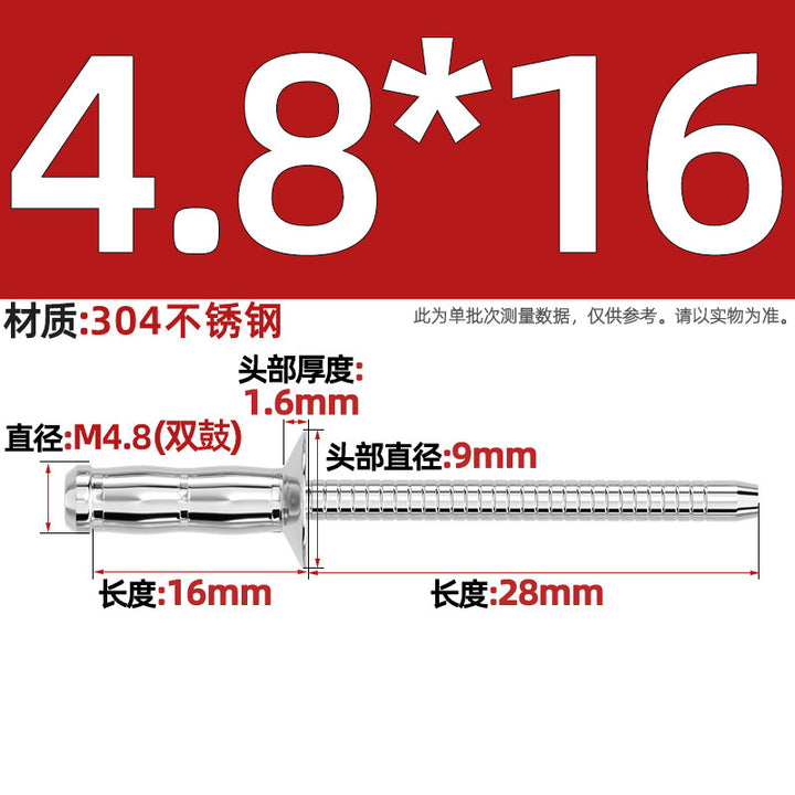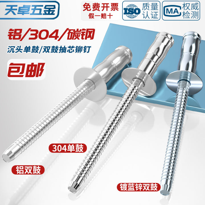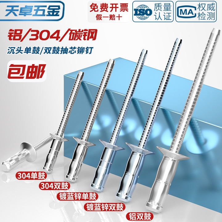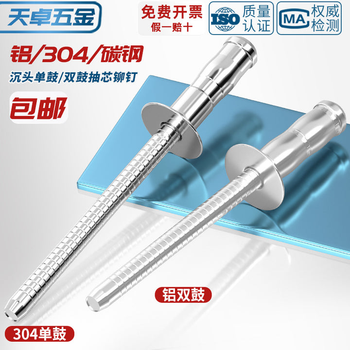 National standard, countersunk head, single/double drum, pull rivets, aluminum/all 304 stainless steel, blind rivet accessories Daquan