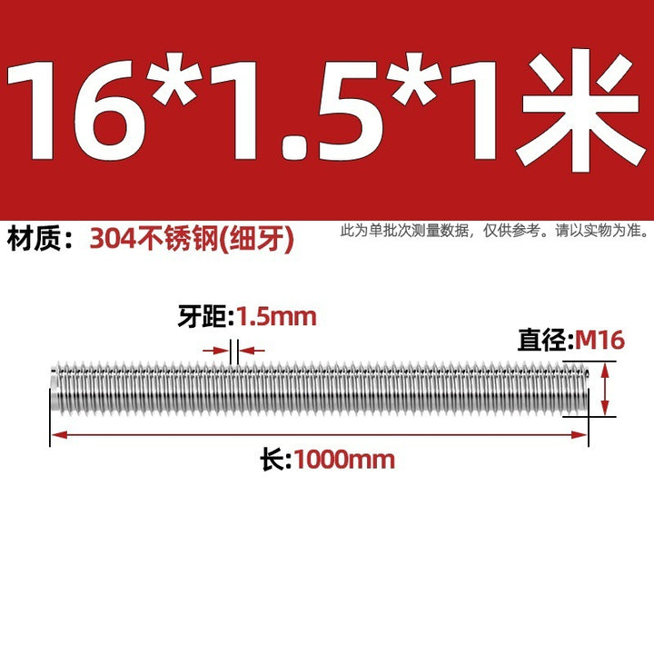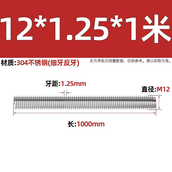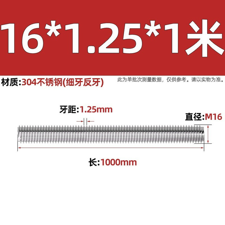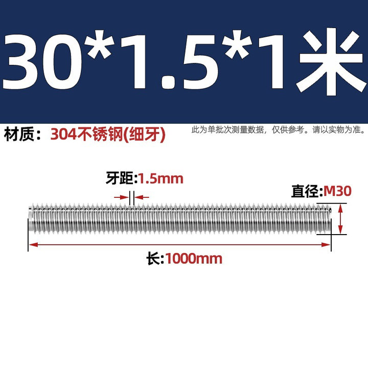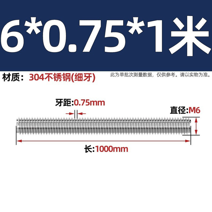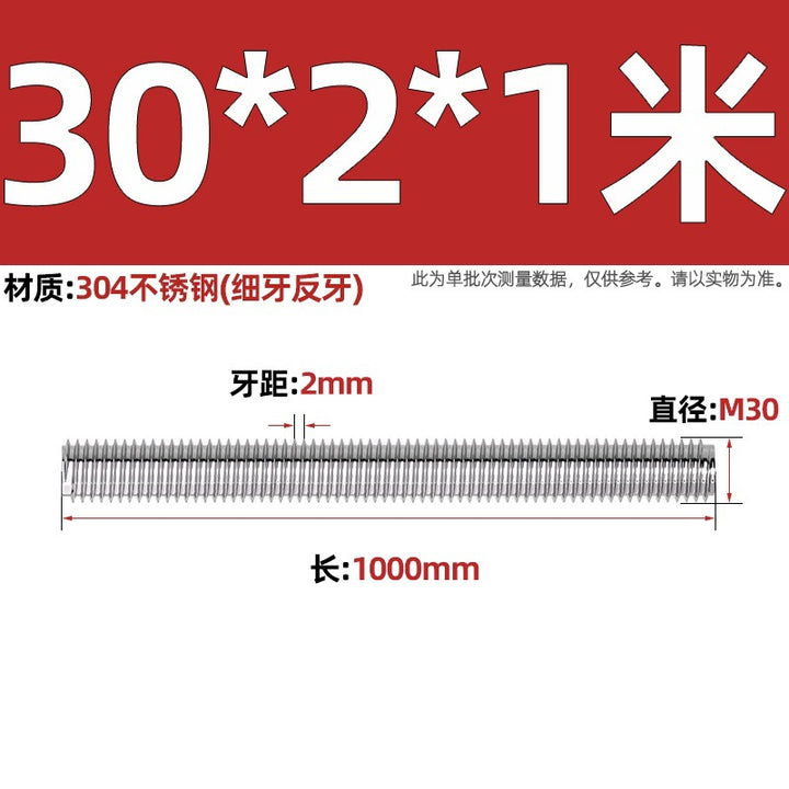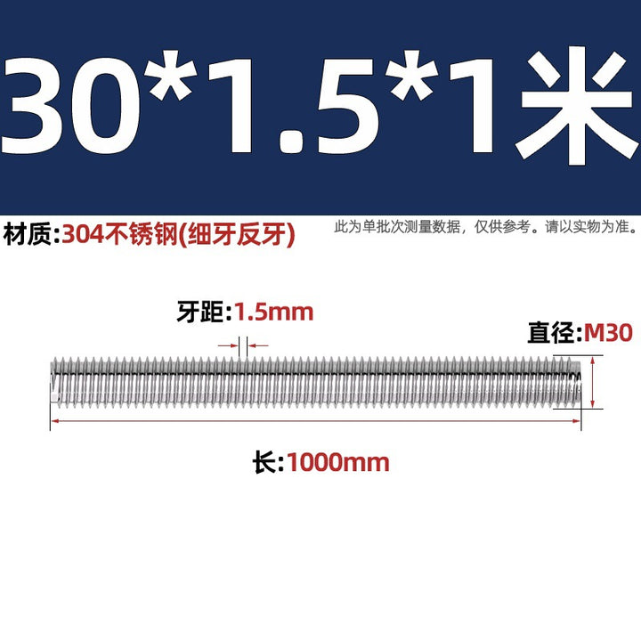National standard fine tooth screw anti-tooth screw 304 stainless steel tooth full thread M6-M30 * 0.75 * 1 * 1.5 * 2 * 3