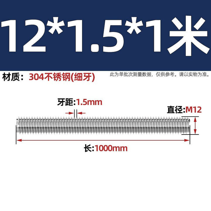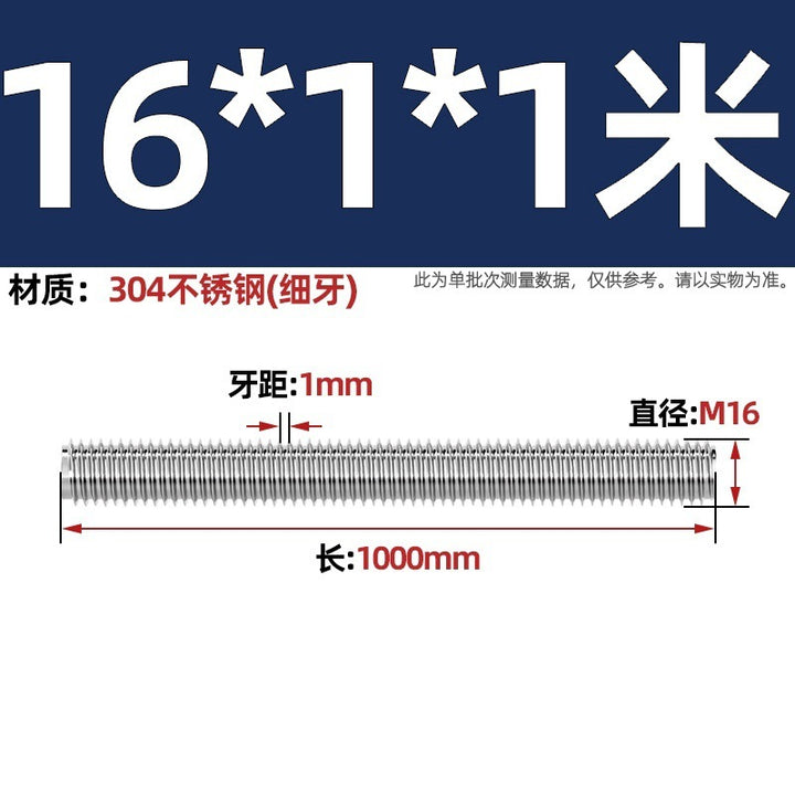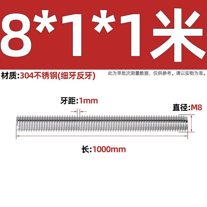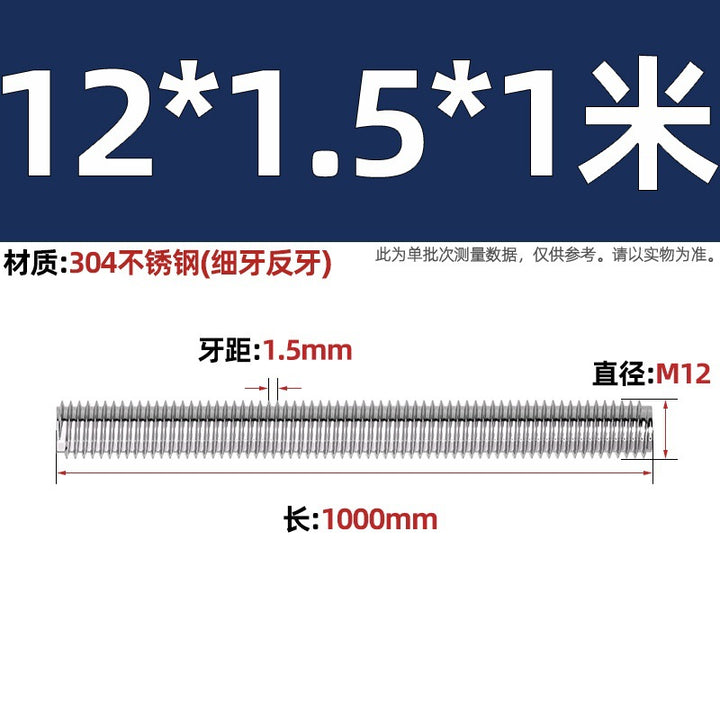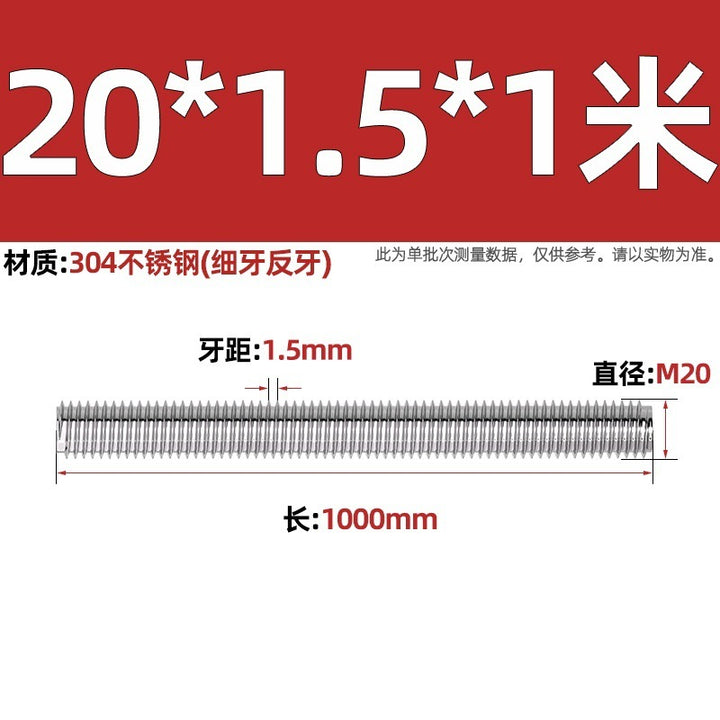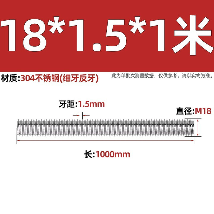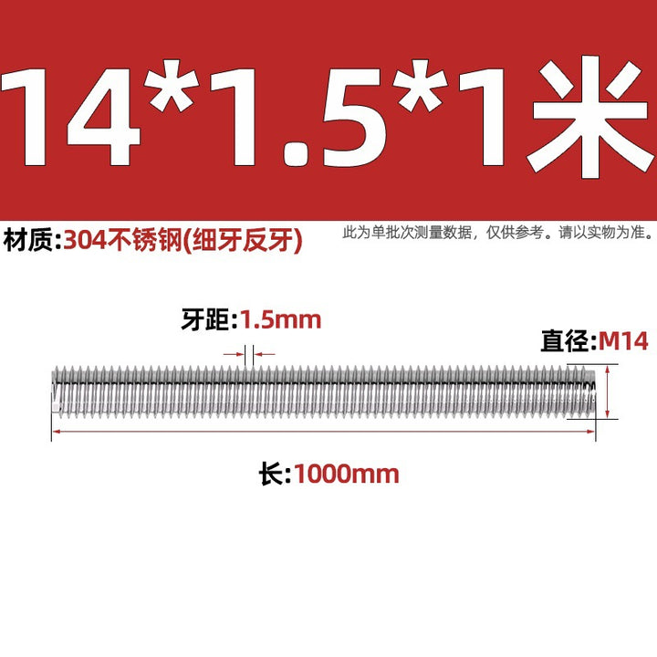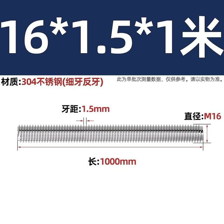 National standard fine tooth screw anti-tooth screw 304 stainless steel tooth full thread M6-M30 * 0.75 * 1 * 1.5 * 2 * 3