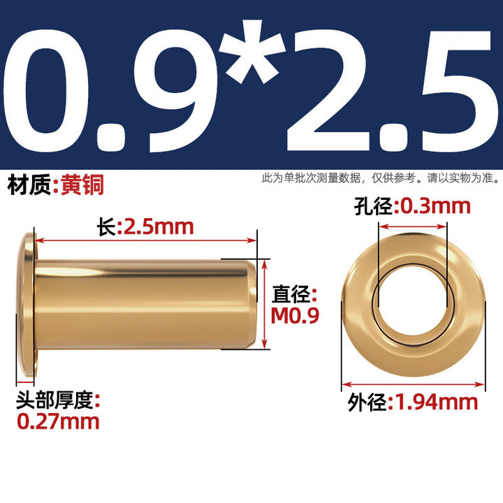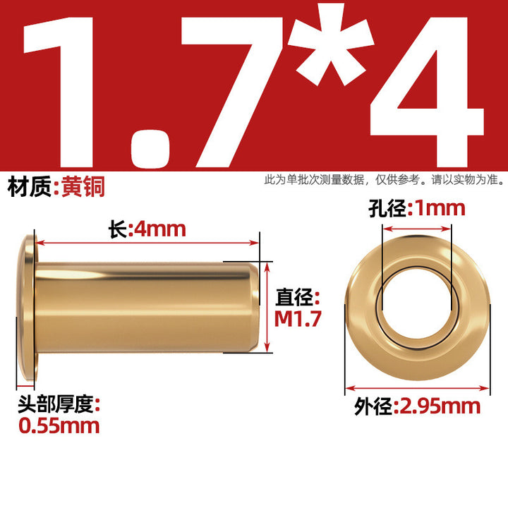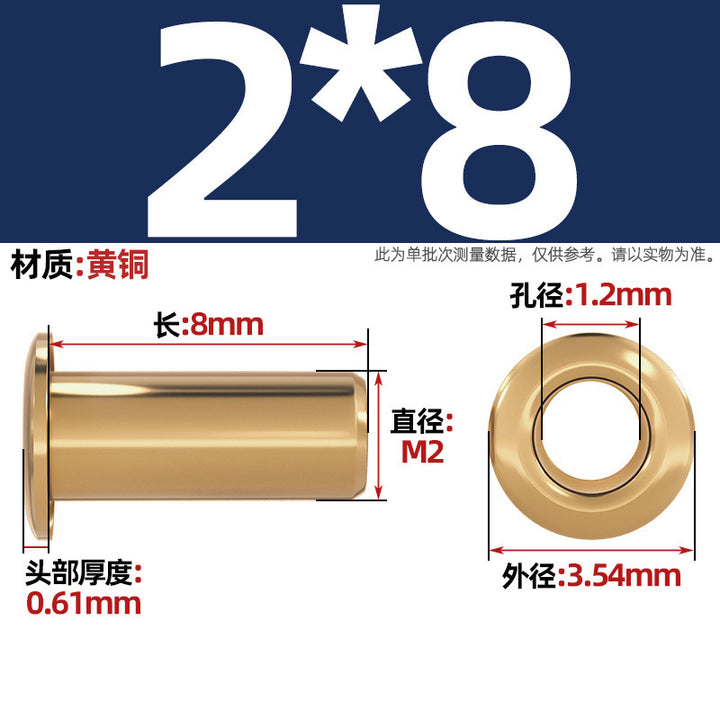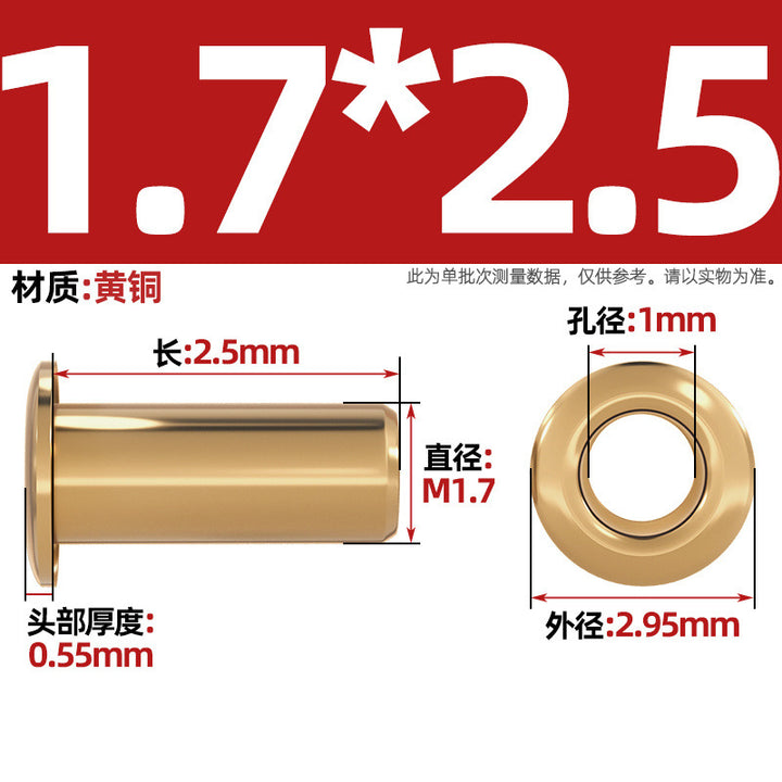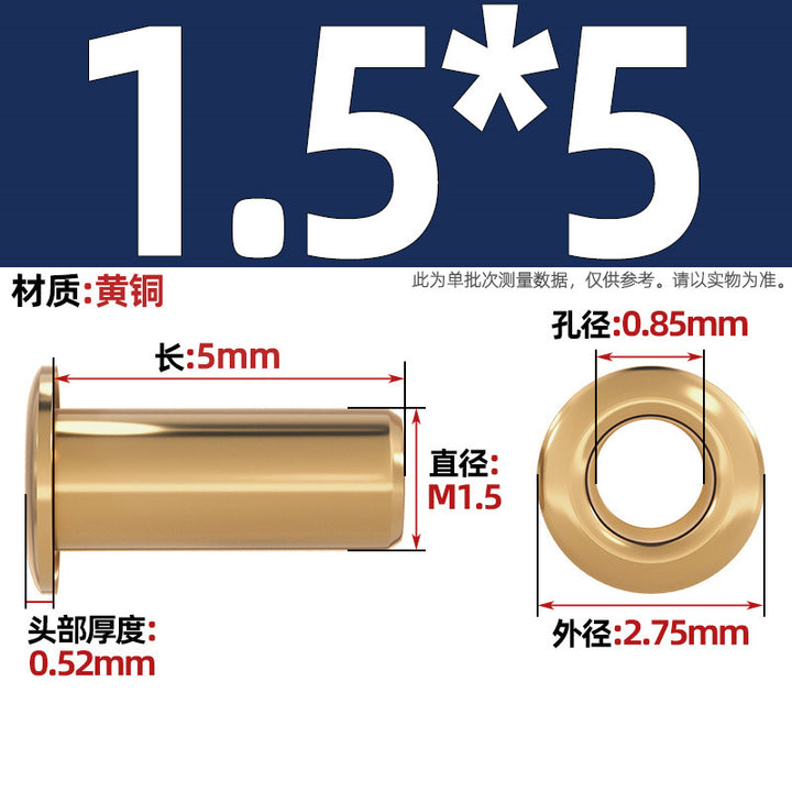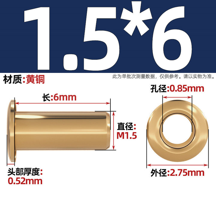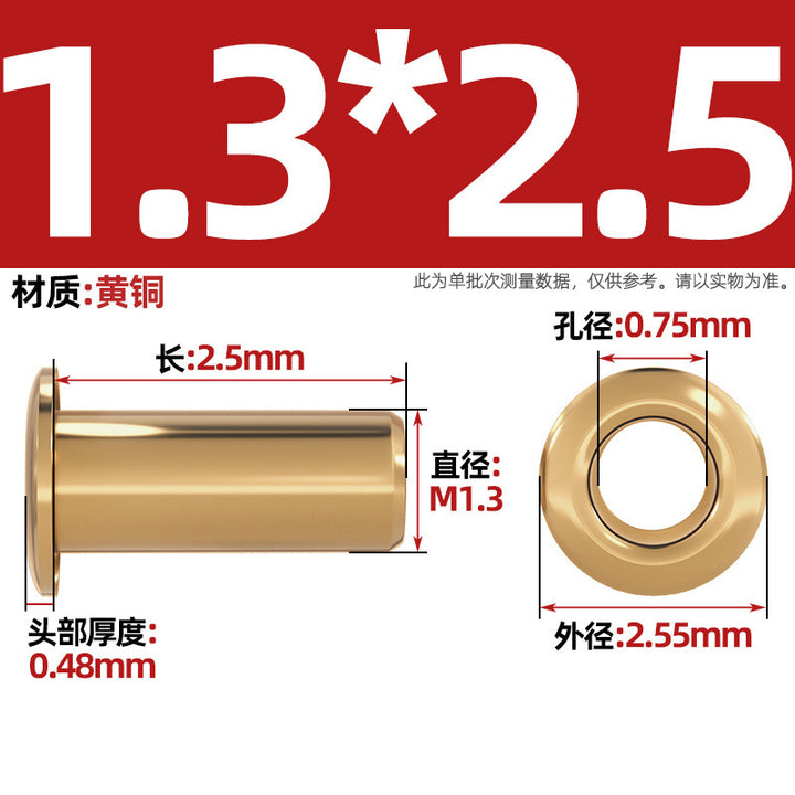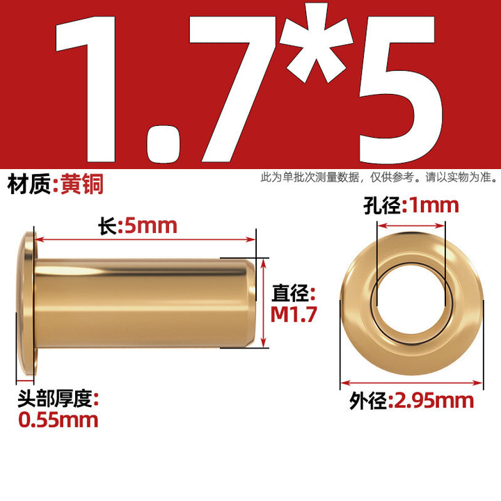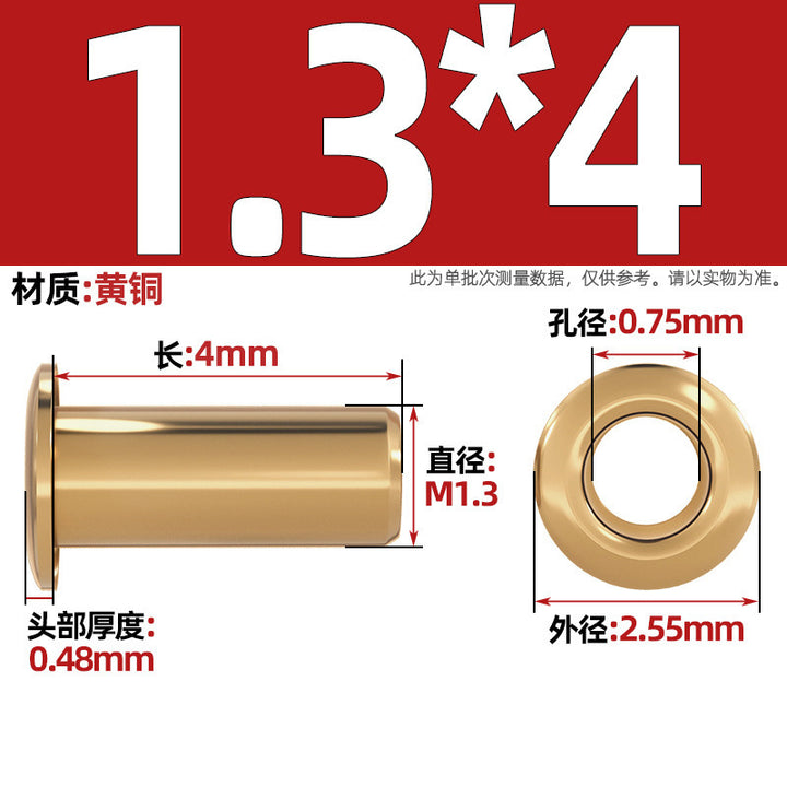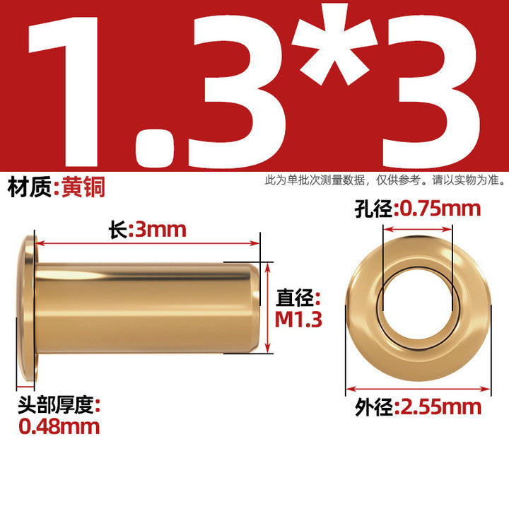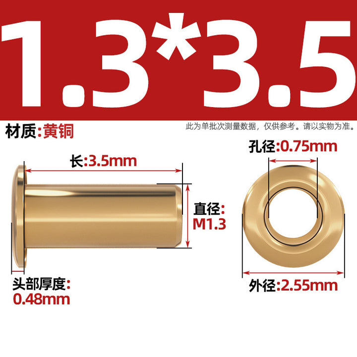 National Standard Pure Brass All Copper Hollow Rivet Corn Fastener M1.3M1.5M1.7M2M2.5M3M3.5M4M5M6