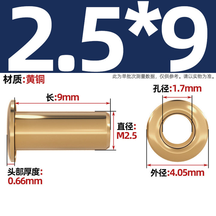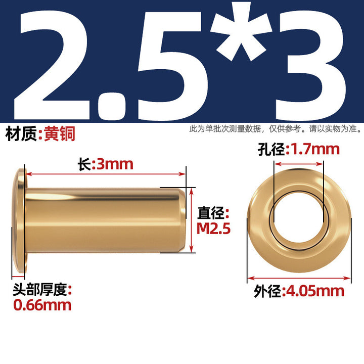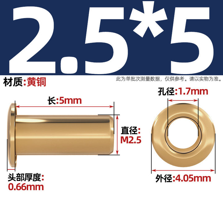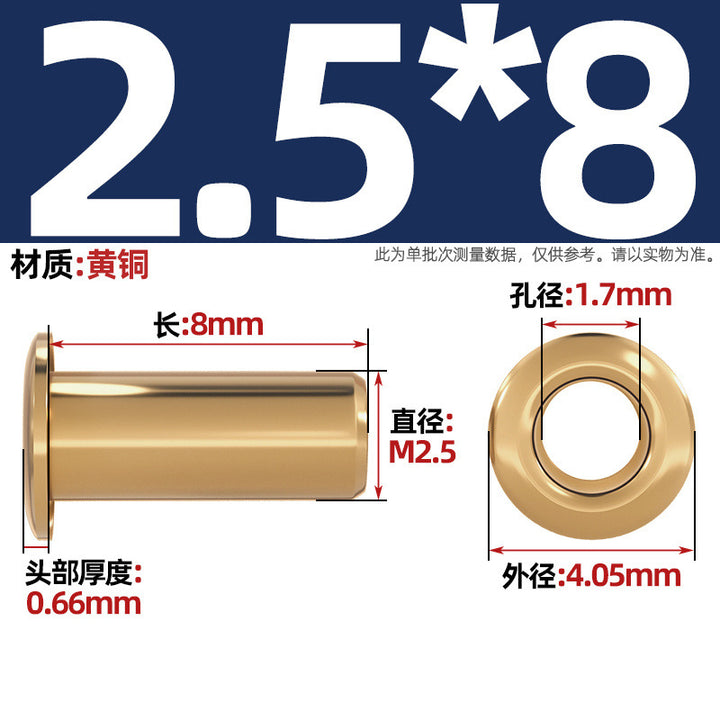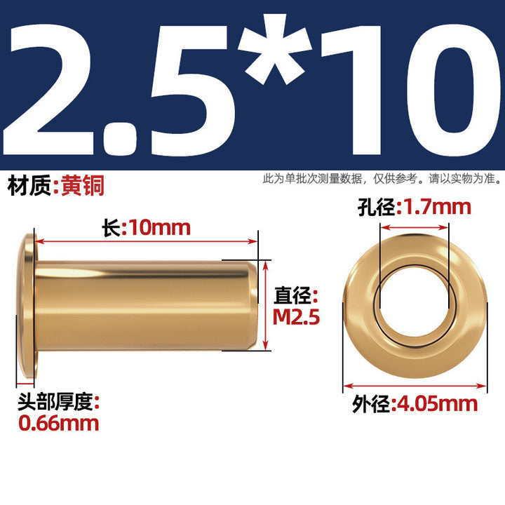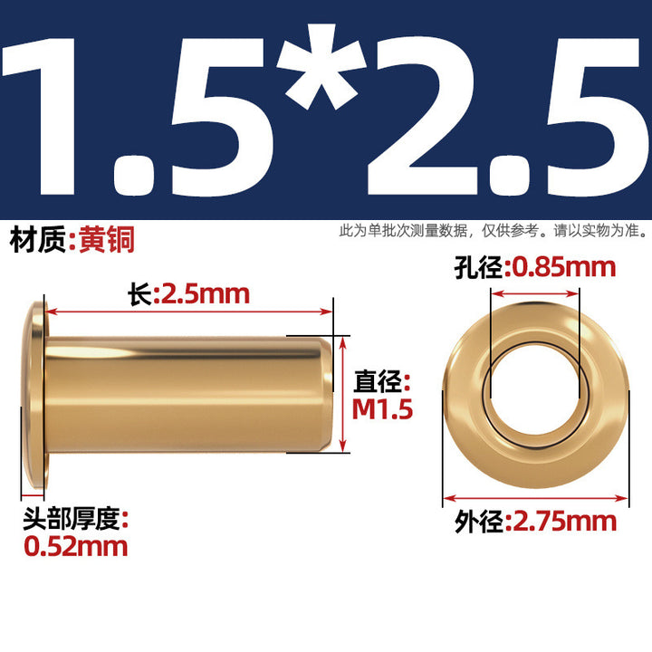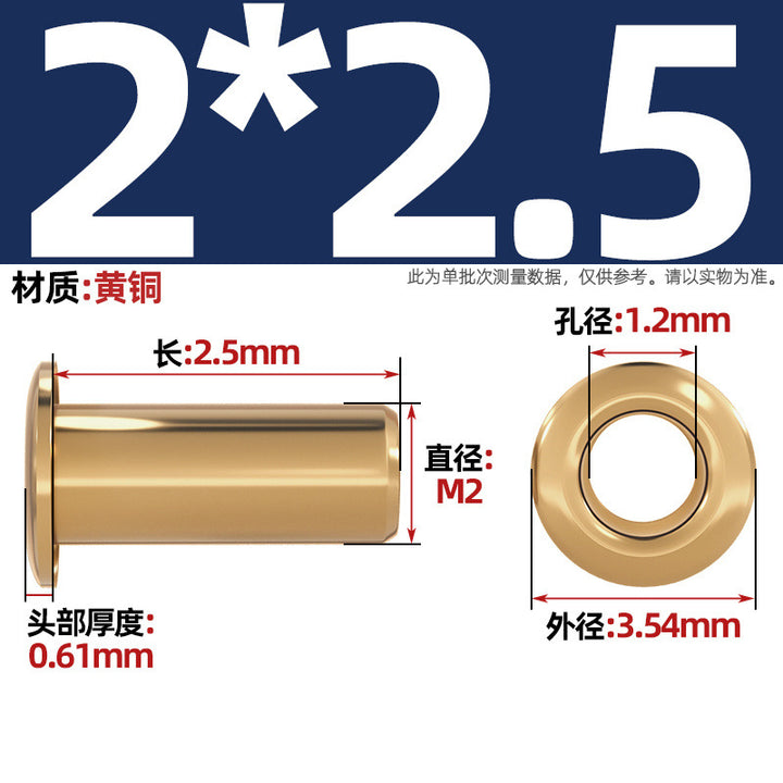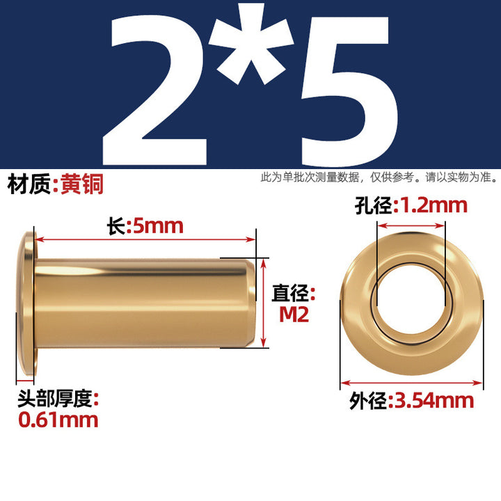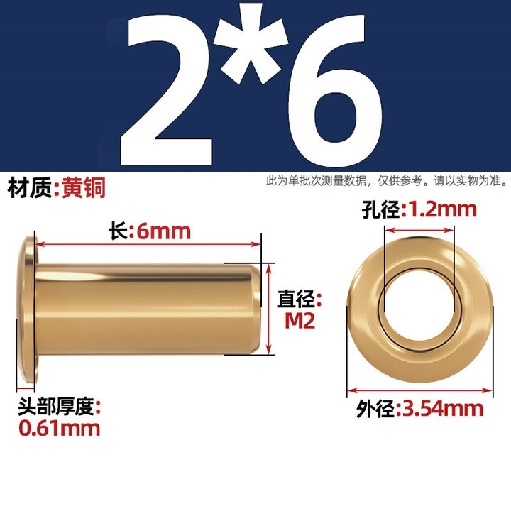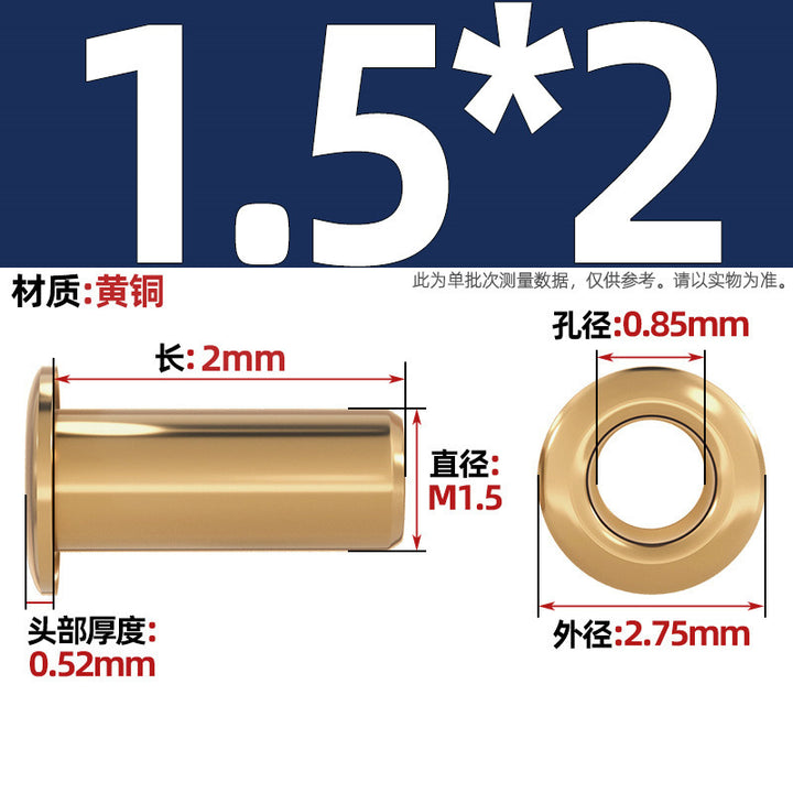 National Standard Pure Brass All Copper Hollow Rivet Corn Fastener M1.3M1.5M1.7M2M2.5M3M3.5M4M5M6