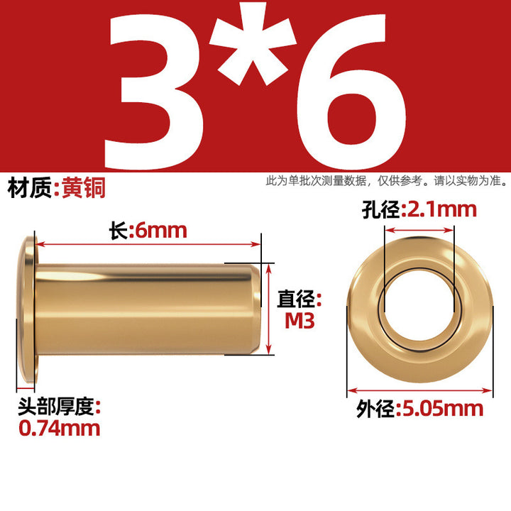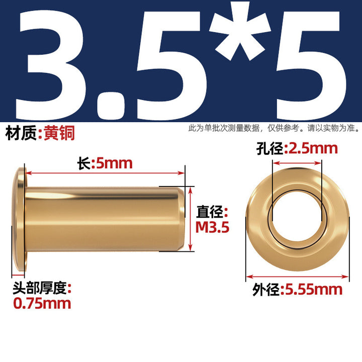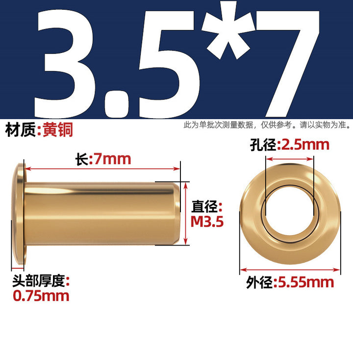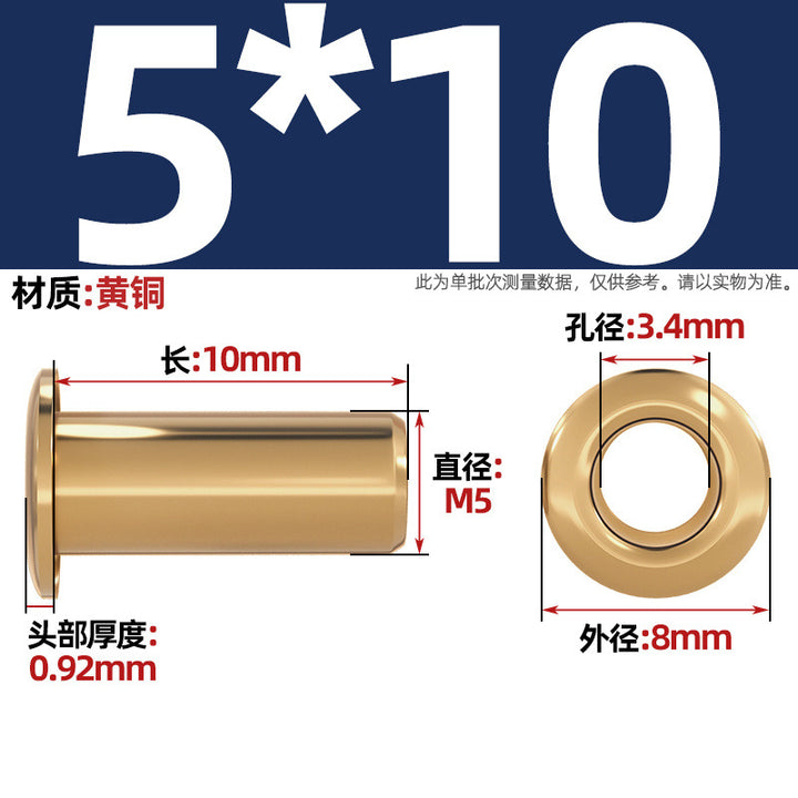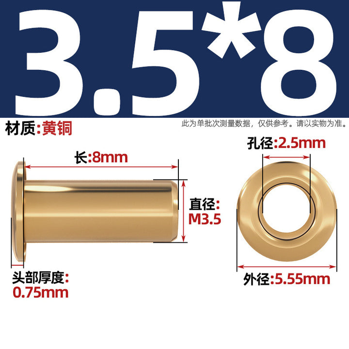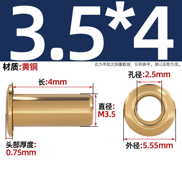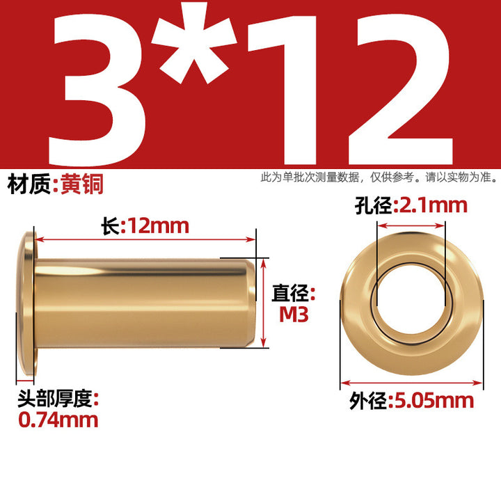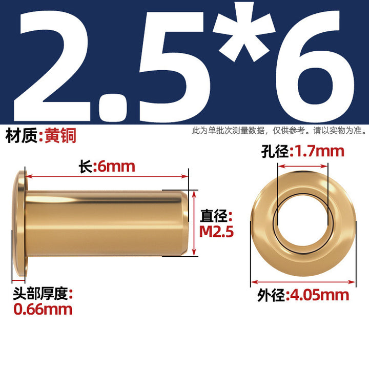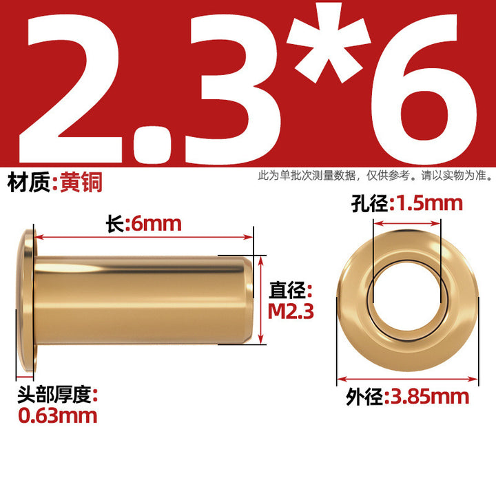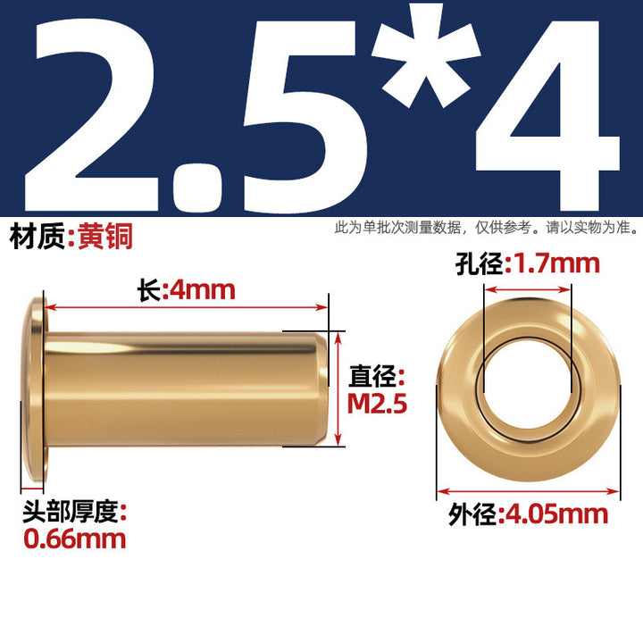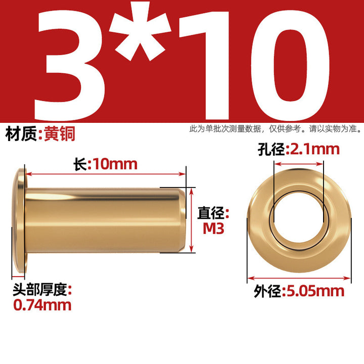 National Standard Pure Brass All Copper Hollow Rivet Corn Fastener M1.3M1.5M1.7M2M2.5M3M3.5M4M5M6