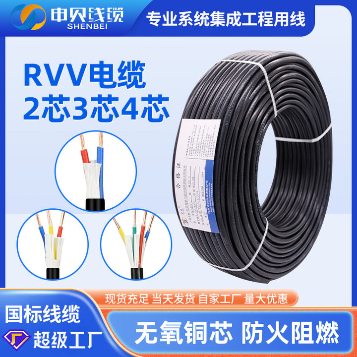 National standard RVV copper core cable 2 3 4 core * 1 1.5 2.5 4 square power supply sheathed wire waterproof control wire