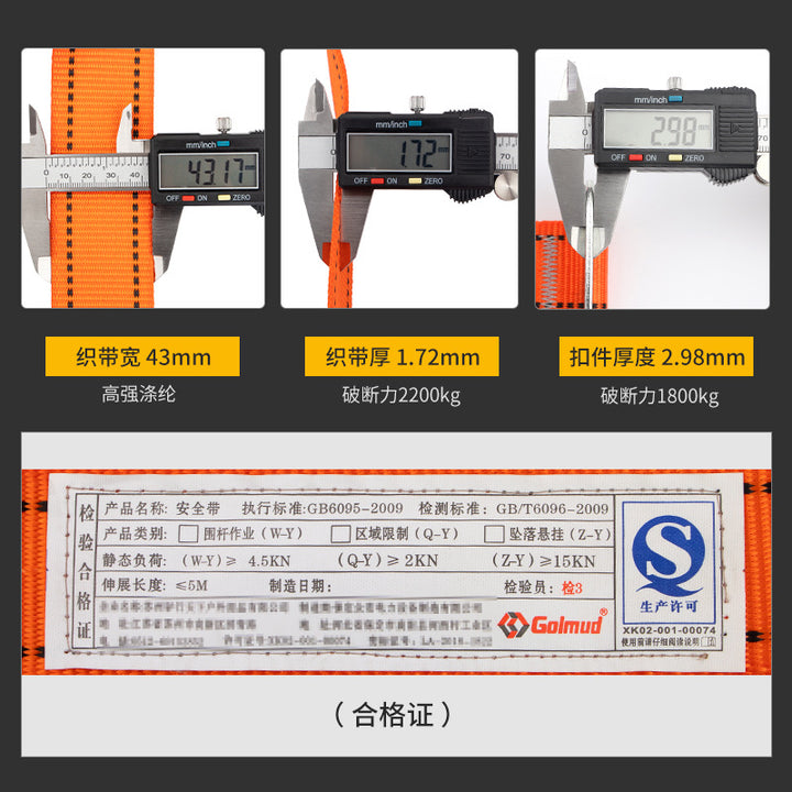 National standard three-point seat belt GM8080 aerial work half body safety belt electrician wear-resistant safety rope belt hook