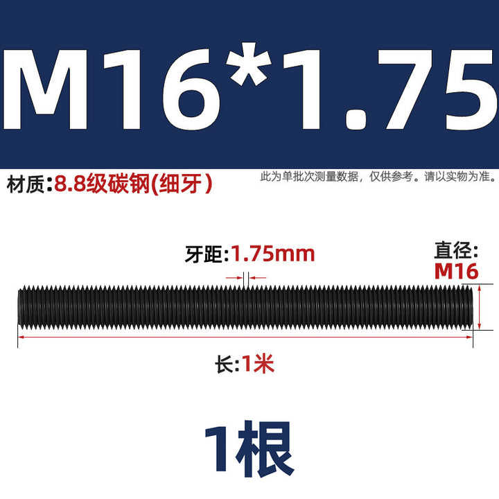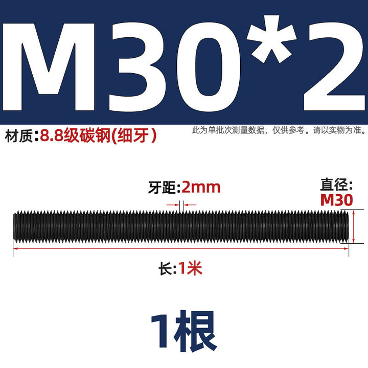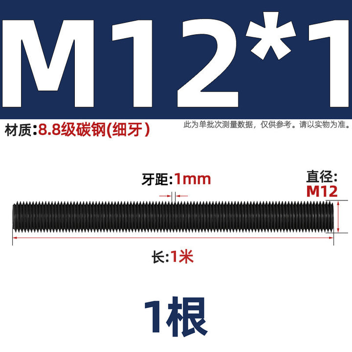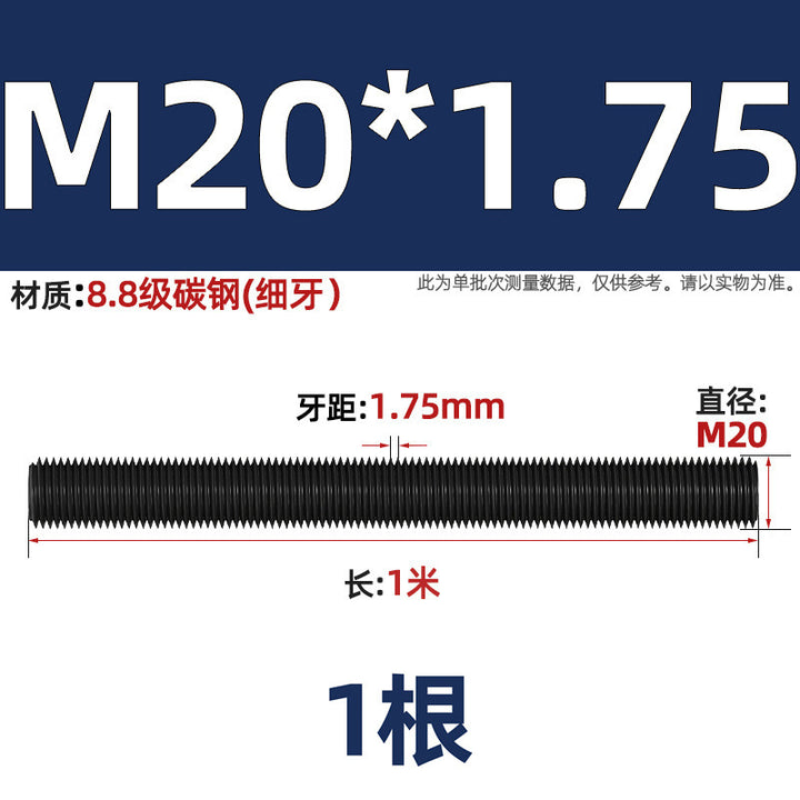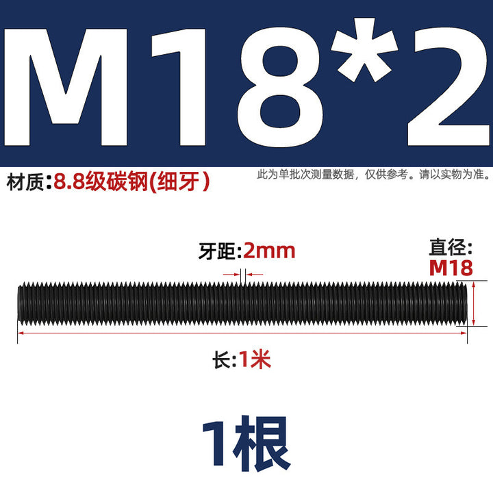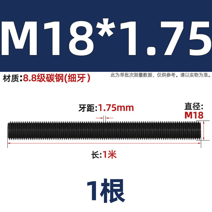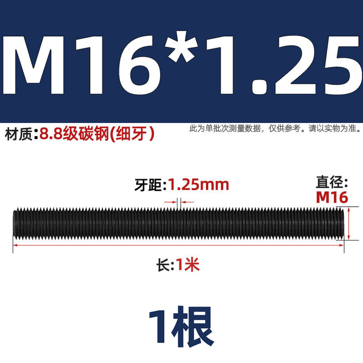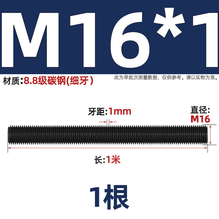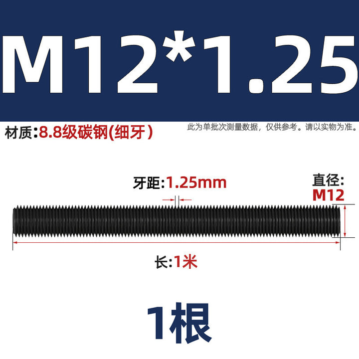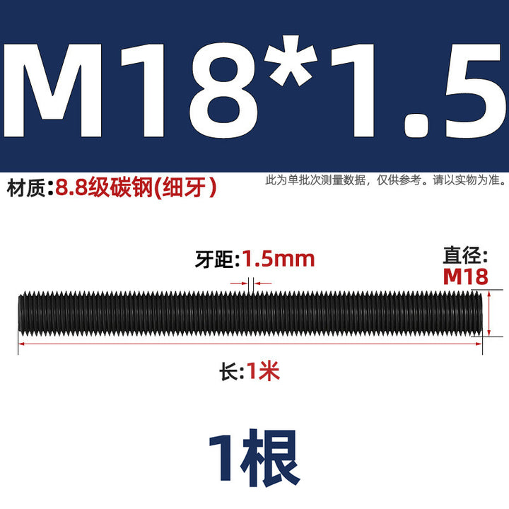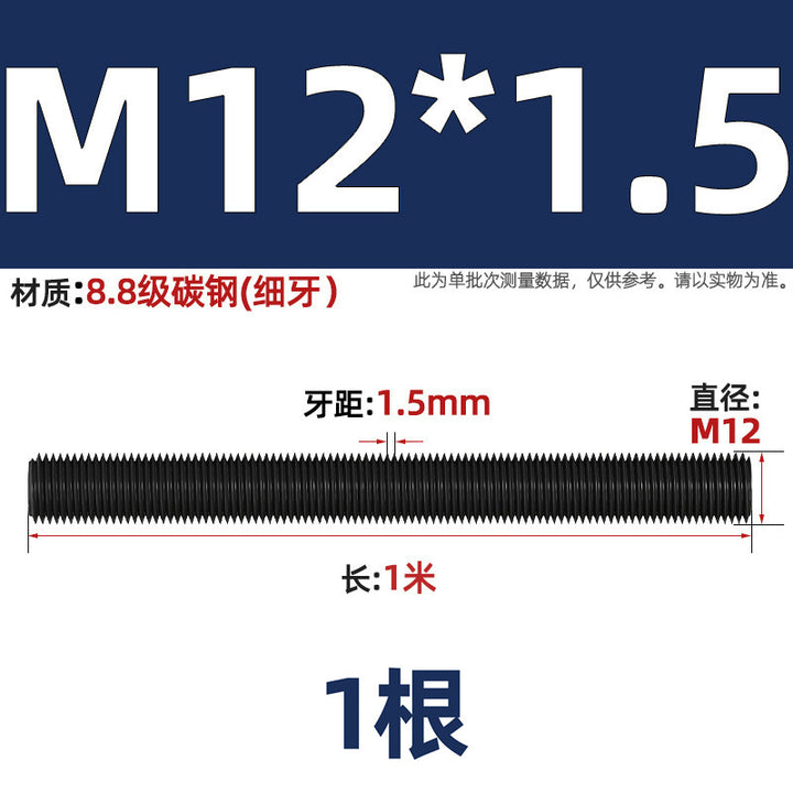 8.8 grade M4 * 0.7 * 1 meter, 8.8 grade M5 * 0.8 * 1 meter, 8.8 grade M6 * 1 * 1m, 8.8 grade M8 * 1.25 * 1 meter, 8.8 grade M10 * 1.5 * 1m, 8.8 grade M12 * 1.75 * 1 meter, 8.8 grade M14 * 2 * 1m, 8.8 grade M16 * 2 * 1m, 8.8 grade M18 * 2.5 * 1m, 8.8 grade M20 * 2.5 * 1m, 8.8 grade M22 * 2.5 * 1m, 8.8 grade M24 * 3 * 1m, 8.8 grade M27 * 3.5 * 1m, 8.8 grade M30 * 3.5 * 1m, 8.8 grade M33 * 3.5 * 1m, 8.8 grade M36 * 4 * 1m, 8.8 grade M39 * 4 * 1m, 8.8 grade M42 * 4.5 * 1m, 8.8 grade M45 * 4.5 * 1m, 8.8 grade M48 * 5 * 1m, 8.8 Fine teeth M6 * 0.8 * 1m, 8.8 Fine teeth M8 * 1 * 1m, 8.8 fine teeth M10 * 1 * 1m, 8.8 fine teeth M10 * 1.25 * 1 meter, 8.8 fine teeth M12 * 1 * 1m, 8.8 fine teeth M12 * 1.25 * 1 meter, 8.8 fine teeth M12 * 1.5 * 1m, 8.8 fine teeth M14 * 1 * 1m, 8.8 fine teeth M14 * 1.25 * 1m, 8.8 fine teeth M14 * 1.5 * 1m, 8.8 fine teeth M16 * 1 * 1m, 8.8 fine teeth M16 * 1.25 * 1m, 8.8 fine teeth M16 * 1.5 * 1m, 8.8 fine teeth M16 * 1.75 * 1m, 8.8 fine teeth M18 * 1 * 1m, 8.8 fine teeth M18 * 1.25 * 1 meter, 8.8 fine teeth M18 * 1.5 * 1m, 8.8 fine teeth M18 * 1.75 * 1m, 8.8 fine teeth M18 * 2 * 1m, 8.8 fine teeth M20 * 1 * 1m, 8.8 Fine teeth M20 * 1.25 * 1m, 8.8 Fine teeth M20 * 1.5 * 1m, 8.8 Fine teeth M20 * 1.75 * 1m, 8.8 fine teeth M20 * 2 * 1m, 8.8 Fine teeth M22 * 1.5 * 1m, 8.8 fine teeth M24 * 1.5 * 1m, 8.8 fine teeth M24 * 2 * 1m, 8.8 fine teeth M30 * 2 * 1m, 8.8 Fine teeth M36 * 2 * 1m, 8.8 Anti-tooth M6 * 1 * 1m, 8.8 Anti-tooth M8 * 1.25 * 1m, 8.8 Anti-tooth M10 * 1.5 * 1m, 8.8 anti-tooth M12 * 1.75 * 1m, 8.8 Anti-tooth M14 * 2 * 1m, 8.8 Anti-tooth M16 * 2 * 1m, 8.8 Anti-tooth M18 * 2.5 * 1m, 8.8 Anti-tooth M20 * 2.5 * 1m, 8.8 Anti-tooth M22 * 2.5 * 1m, 8.8 Anti-tooth M24 * 3 * 1m, 8.8 Anti-tooth M27 * 3.5 * 1m, 8.8 Anti-tooth M30 * 3.5 * 1m, 8.8 Anti-tooth M33 * 3.5 * 1m, 8.8 Anti-tooth M36 * 4 * 1m, 8.8 Anti-tooth M39 * 4 * 1m, 8.8 Anti-tooth M42 * 4.5 * 1m, 8.8 Anti-tooth M45 * 4.5 * 1m, 8.8 anti-tooth M48 * 5 * 1m, 10.9 grade M6 * 1 * 1m, 10.9 grade M8 * 1.25 * 1 meter, 10.9 grade M10 * 1.5 * 1m, 10.9 grade M12 * 1.75 * 1 meter, 10.9 class M14 * 2 * 1m, 10.9 grade M16 * 2 * 1m, 10.9 grade M18 * 2.5 * 1m, 10.9 grade M20 * 2.5 * 1m, 10.9 grade M22 * 2.5 * 1m, 10.9 grade M24 * 3 * 1m, 10.9 grade M27 * 3.5 * 1m, 10.9 grade M30 * 3.5 * 1m, 10.9 grade M33 * 3.5 * 1m, 10.9 grade M36 * 4 * 1m, 10.9 grade M39 * 4 * 1m, 10.9 grade M42 * 4.5 * 1m, 10.9 grade M45 * 4.5 * 1m, 10.9 grade M48 * 5 * 1m, 12.9 grade M6 * 1 * 1m, 12.9 grade M8 * 1.25 * 1 meter, 12.9 grade M10 * 1.5 * 1m, 12.9 grade M12 * 1.75 * 1 meter, 12.9 grade M14 * 2 * 1m, 12.9 grade M16 * 2 * 1m, 12.9 grade M18 * 2.5 * 1m, 12.9 grade M20 * 2.5 * 1m, 12.9 grade M22 * 2.5 * 1m, 12.9 grade M24 * 3 * 1m, 12.9 grade M27 * 3.5 * 1m, 12.9 grade M30 * 3.5 * 1m, 12.9 grade M33 * 3.5 * 1m, 12.9 grade M36 * 4 * 1m, 12.9 grade M39 * 4 * 1m |