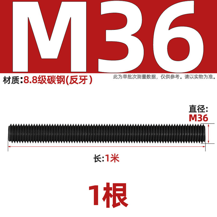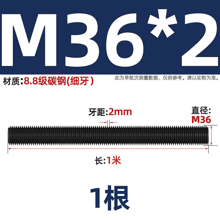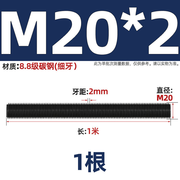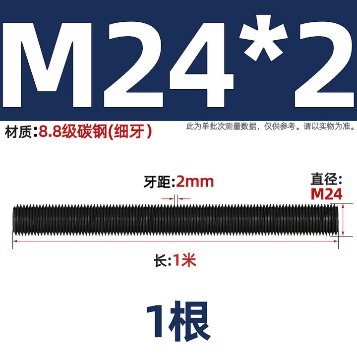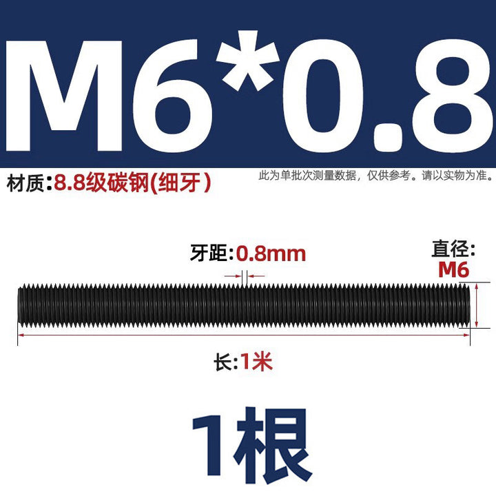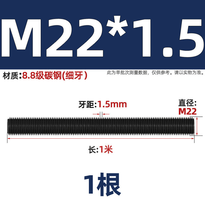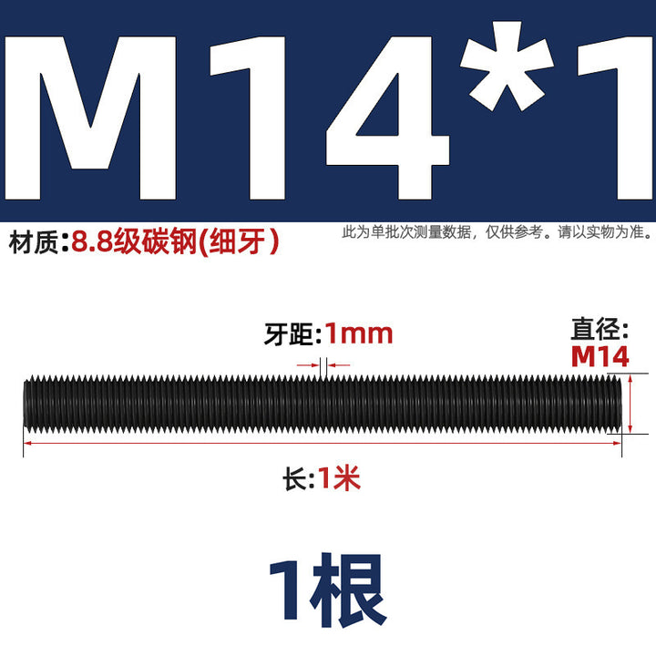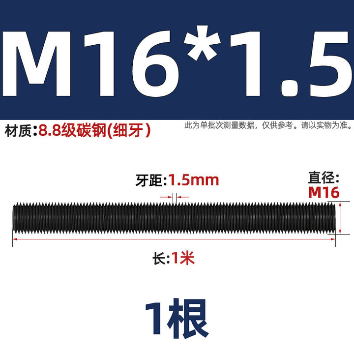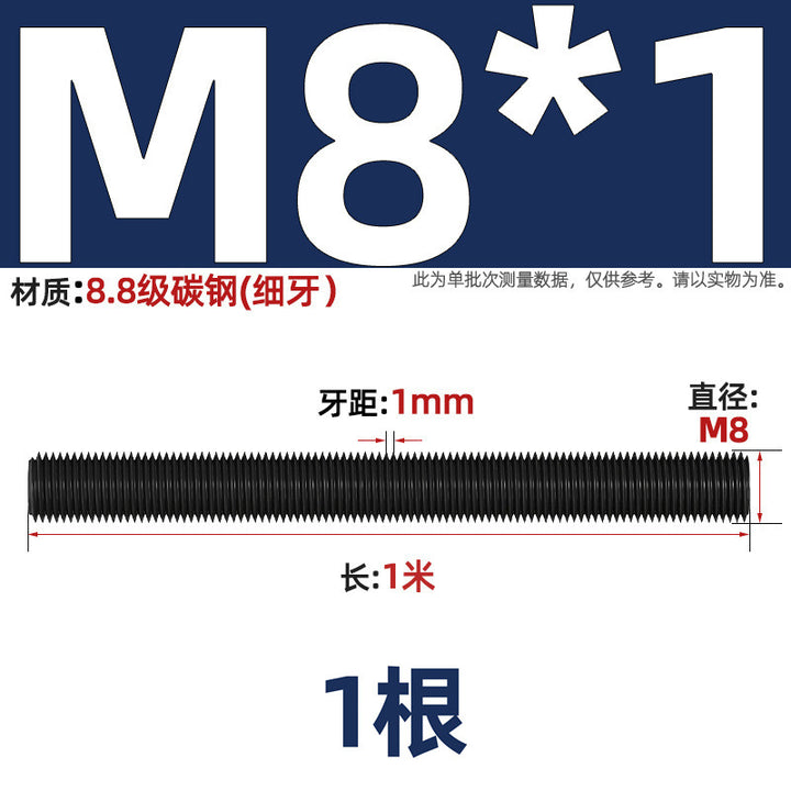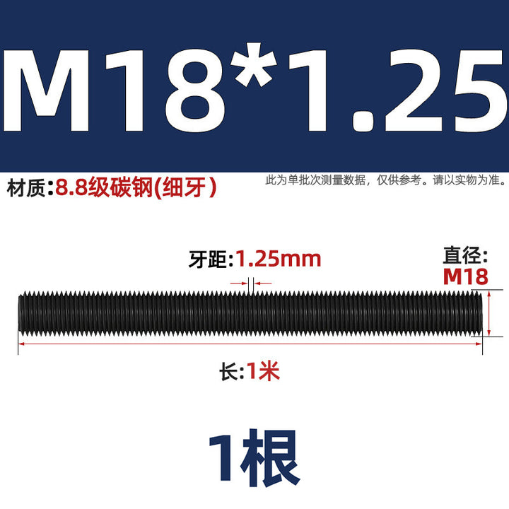 8.8 grade M4 * 0.7 * 1 meter, 8.8 grade M5 * 0.8 * 1 meter, 8.8 grade M6 * 1 * 1m, 8.8 grade M8 * 1.25 * 1 meter, 8.8 grade M10 * 1.5 * 1m, 8.8 grade M12 * 1.75 * 1 meter, 8.8 grade M14 * 2 * 1m, 8.8 grade M16 * 2 * 1m, 8.8 grade M18 * 2.5 * 1m, 8.8 grade M20 * 2.5 * 1m, 8.8 grade M22 * 2.5 * 1m, 8.8 grade M24 * 3 * 1m, 8.8 grade M27 * 3.5 * 1m, 8.8 grade M30 * 3.5 * 1m, 8.8 grade M33 * 3.5 * 1m, 8.8 grade M36 * 4 * 1m, 8.8 grade M39 * 4 * 1m, 8.8 grade M42 * 4.5 * 1m, 8.8 grade M45 * 4.5 * 1m, 8.8 grade M48 * 5 * 1m, 8.8 Fine teeth M6 * 0.8 * 1m, 8.8 Fine teeth M8 * 1 * 1m, 8.8 fine teeth M10 * 1 * 1m, 8.8 fine teeth M10 * 1.25 * 1 meter, 8.8 fine teeth M12 * 1 * 1m, 8.8 fine teeth M12 * 1.25 * 1 meter, 8.8 fine teeth M12 * 1.5 * 1m, 8.8 fine teeth M14 * 1 * 1m, 8.8 fine teeth M14 * 1.25 * 1m, 8.8 fine teeth M14 * 1.5 * 1m, 8.8 fine teeth M16 * 1 * 1m, 8.8 fine teeth M16 * 1.25 * 1m, 8.8 fine teeth M16 * 1.5 * 1m, 8.8 fine teeth M16 * 1.75 * 1m, 8.8 fine teeth M18 * 1 * 1m, 8.8 fine teeth M18 * 1.25 * 1 meter, 8.8 fine teeth M18 * 1.5 * 1m, 8.8 fine teeth M18 * 1.75 * 1m, 8.8 fine teeth M18 * 2 * 1m, 8.8 fine teeth M20 * 1 * 1m, 8.8 Fine teeth M20 * 1.25 * 1m, 8.8 Fine teeth M20 * 1.5 * 1m, 8.8 Fine teeth M20 * 1.75 * 1m, 8.8 fine teeth M20 * 2 * 1m, 8.8 Fine teeth M22 * 1.5 * 1m, 8.8 fine teeth M24 * 1.5 * 1m, 8.8 fine teeth M24 * 2 * 1m, 8.8 fine teeth M30 * 2 * 1m, 8.8 Fine teeth M36 * 2 * 1m, 8.8 Anti-tooth M6 * 1 * 1m, 8.8 Anti-tooth M8 * 1.25 * 1m, 8.8 Anti-tooth M10 * 1.5 * 1m, 8.8 anti-tooth M12 * 1.75 * 1m, 8.8 Anti-tooth M14 * 2 * 1m, 8.8 Anti-tooth M16 * 2 * 1m, 8.8 Anti-tooth M18 * 2.5 * 1m, 8.8 Anti-tooth M20 * 2.5 * 1m, 8.8 Anti-tooth M22 * 2.5 * 1m, 8.8 Anti-tooth M24 * 3 * 1m, 8.8 Anti-tooth M27 * 3.5 * 1m, 8.8 Anti-tooth M30 * 3.5 * 1m, 8.8 Anti-tooth M33 * 3.5 * 1m, 8.8 Anti-tooth M36 * 4 * 1m, 8.8 Anti-tooth M39 * 4 * 1m, 8.8 Anti-tooth M42 * 4.5 * 1m, 8.8 Anti-tooth M45 * 4.5 * 1m, 8.8 anti-tooth M48 * 5 * 1m, 10.9 grade M6 * 1 * 1m, 10.9 grade M8 * 1.25 * 1 meter, 10.9 grade M10 * 1.5 * 1m, 10.9 grade M12 * 1.75 * 1 meter, 10.9 class M14 * 2 * 1m, 10.9 grade M16 * 2 * 1m, 10.9 grade M18 * 2.5 * 1m, 10.9 grade M20 * 2.5 * 1m, 10.9 grade M22 * 2.5 * 1m, 10.9 grade M24 * 3 * 1m, 10.9 grade M27 * 3.5 * 1m, 10.9 grade M30 * 3.5 * 1m, 10.9 grade M33 * 3.5 * 1m, 10.9 grade M36 * 4 * 1m, 10.9 grade M39 * 4 * 1m, 10.9 grade M42 * 4.5 * 1m, 10.9 grade M45 * 4.5 * 1m, 10.9 grade M48 * 5 * 1m, 12.9 grade M6 * 1 * 1m, 12.9 grade M8 * 1.25 * 1 meter, 12.9 grade M10 * 1.5 * 1m, 12.9 grade M12 * 1.75 * 1 meter, 12.9 grade M14 * 2 * 1m, 12.9 grade M16 * 2 * 1m, 12.9 grade M18 * 2.5 * 1m, 12.9 grade M20 * 2.5 * 1m, 12.9 grade M22 * 2.5 * 1m, 12.9 grade M24 * 3 * 1m, 12.9 grade M27 * 3.5 * 1m, 12.9 grade M30 * 3.5 * 1m, 12.9 grade M33 * 3.5 * 1m, 12.9 grade M36 * 4 * 1m, 12.9 grade M39 * 4 * 1m |