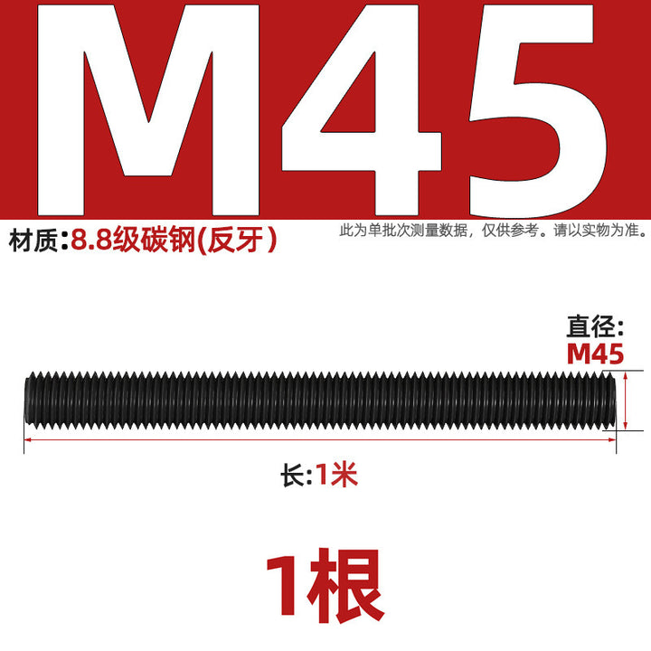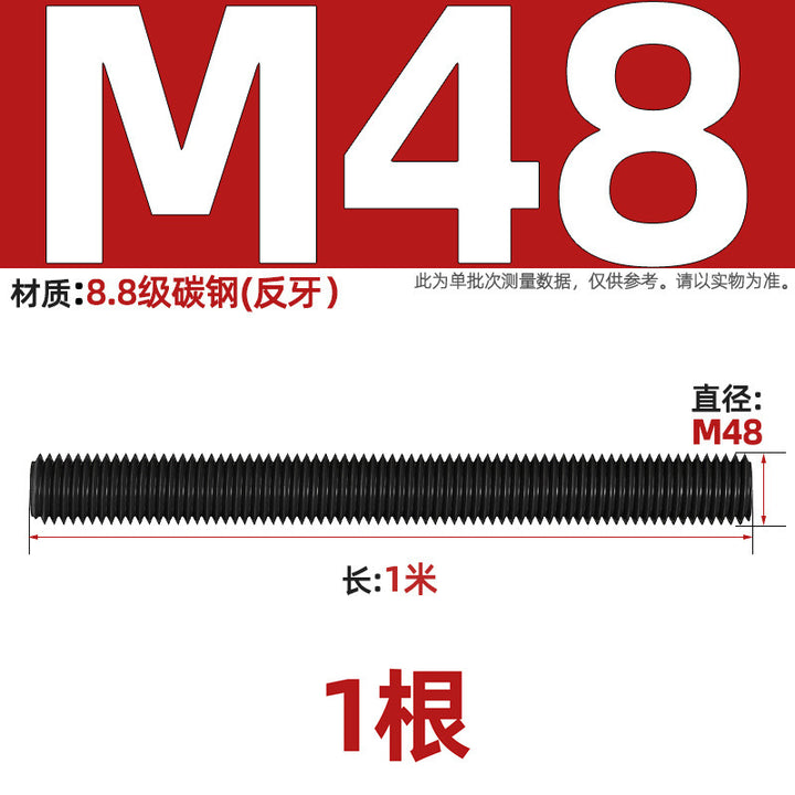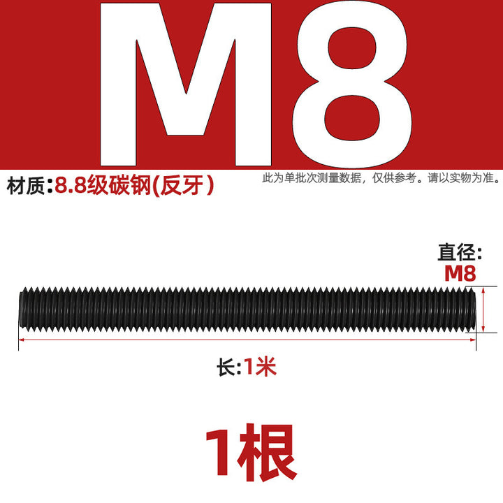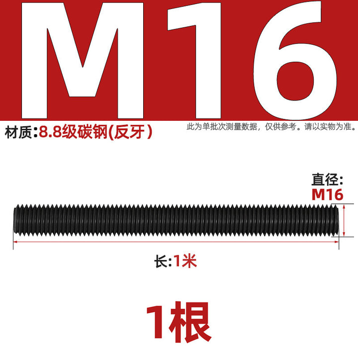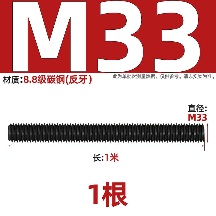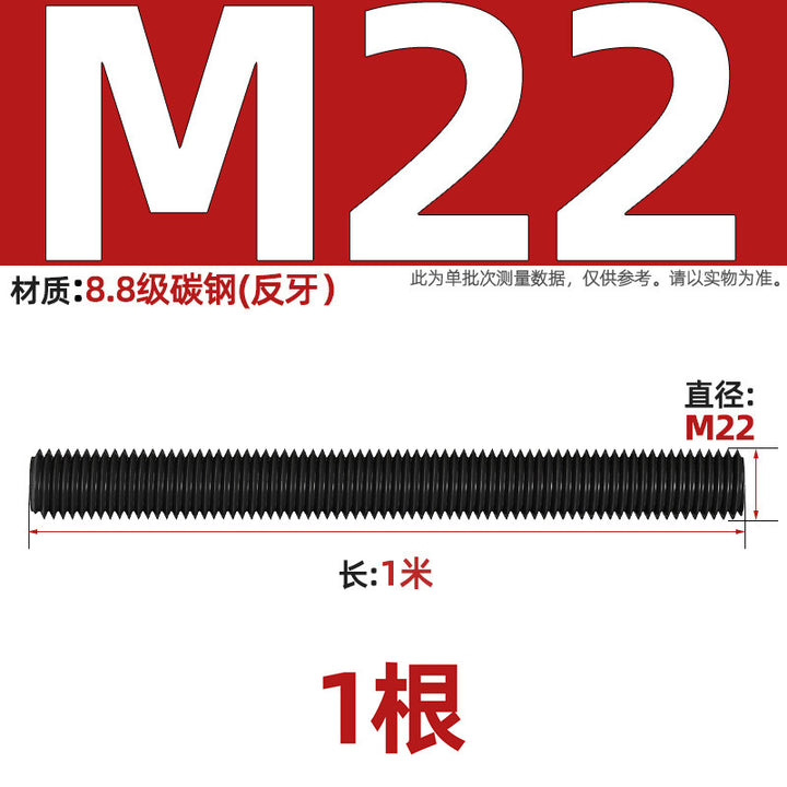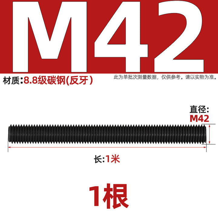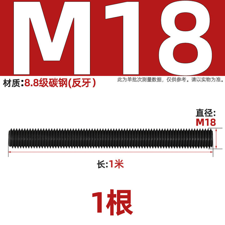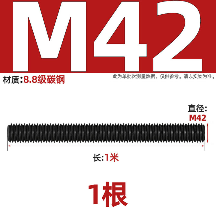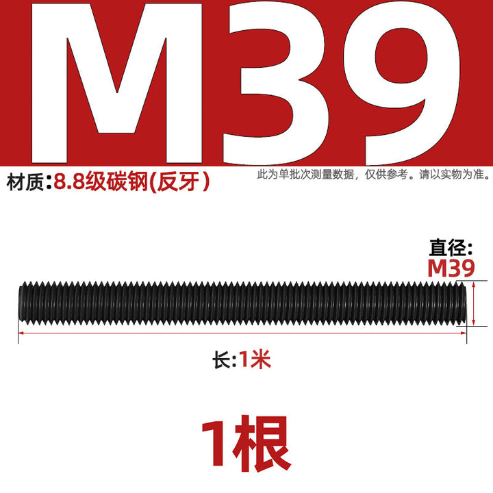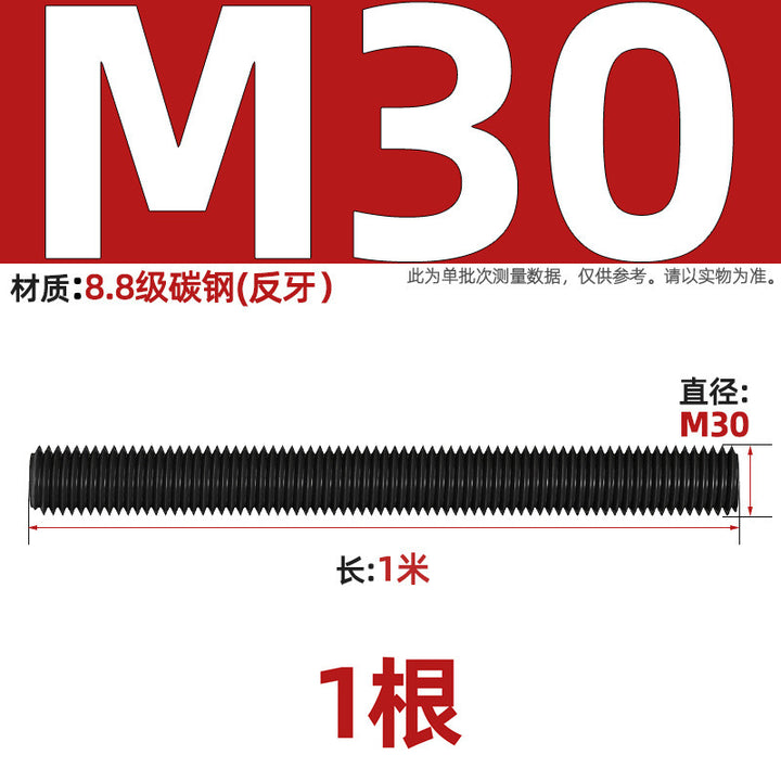 8.8 grade M4 * 0.7 * 1 meter, 8.8 grade M5 * 0.8 * 1 meter, 8.8 grade M6 * 1 * 1m, 8.8 grade M8 * 1.25 * 1 meter, 8.8 grade M10 * 1.5 * 1m, 8.8 grade M12 * 1.75 * 1 meter, 8.8 grade M14 * 2 * 1m, 8.8 grade M16 * 2 * 1m, 8.8 grade M18 * 2.5 * 1m, 8.8 grade M20 * 2.5 * 1m, 8.8 grade M22 * 2.5 * 1m, 8.8 grade M24 * 3 * 1m, 8.8 grade M27 * 3.5 * 1m, 8.8 grade M30 * 3.5 * 1m, 8.8 grade M33 * 3.5 * 1m, 8.8 grade M36 * 4 * 1m, 8.8 grade M39 * 4 * 1m, 8.8 grade M42 * 4.5 * 1m, 8.8 grade M45 * 4.5 * 1m, 8.8 grade M48 * 5 * 1m, 8.8 Fine teeth M6 * 0.8 * 1m, 8.8 Fine teeth M8 * 1 * 1m, 8.8 fine teeth M10 * 1 * 1m, 8.8 fine teeth M10 * 1.25 * 1 meter, 8.8 fine teeth M12 * 1 * 1m, 8.8 fine teeth M12 * 1.25 * 1 meter, 8.8 fine teeth M12 * 1.5 * 1m, 8.8 fine teeth M14 * 1 * 1m, 8.8 fine teeth M14 * 1.25 * 1m, 8.8 fine teeth M14 * 1.5 * 1m, 8.8 fine teeth M16 * 1 * 1m, 8.8 fine teeth M16 * 1.25 * 1m, 8.8 fine teeth M16 * 1.5 * 1m, 8.8 fine teeth M16 * 1.75 * 1m, 8.8 fine teeth M18 * 1 * 1m, 8.8 fine teeth M18 * 1.25 * 1 meter, 8.8 fine teeth M18 * 1.5 * 1m, 8.8 fine teeth M18 * 1.75 * 1m, 8.8 fine teeth M18 * 2 * 1m, 8.8 fine teeth M20 * 1 * 1m, 8.8 Fine teeth M20 * 1.25 * 1m, 8.8 Fine teeth M20 * 1.5 * 1m, 8.8 Fine teeth M20 * 1.75 * 1m, 8.8 fine teeth M20 * 2 * 1m, 8.8 Fine teeth M22 * 1.5 * 1m, 8.8 fine teeth M24 * 1.5 * 1m, 8.8 fine teeth M24 * 2 * 1m, 8.8 fine teeth M30 * 2 * 1m, 8.8 Fine teeth M36 * 2 * 1m, 8.8 Anti-tooth M6 * 1 * 1m, 8.8 Anti-tooth M8 * 1.25 * 1m, 8.8 Anti-tooth M10 * 1.5 * 1m, 8.8 anti-tooth M12 * 1.75 * 1m, 8.8 Anti-tooth M14 * 2 * 1m, 8.8 Anti-tooth M16 * 2 * 1m, 8.8 Anti-tooth M18 * 2.5 * 1m, 8.8 Anti-tooth M20 * 2.5 * 1m, 8.8 Anti-tooth M22 * 2.5 * 1m, 8.8 Anti-tooth M24 * 3 * 1m, 8.8 Anti-tooth M27 * 3.5 * 1m, 8.8 Anti-tooth M30 * 3.5 * 1m, 8.8 Anti-tooth M33 * 3.5 * 1m, 8.8 Anti-tooth M36 * 4 * 1m, 8.8 Anti-tooth M39 * 4 * 1m, 8.8 Anti-tooth M42 * 4.5 * 1m, 8.8 Anti-tooth M45 * 4.5 * 1m, 8.8 anti-tooth M48 * 5 * 1m, 10.9 grade M6 * 1 * 1m, 10.9 grade M8 * 1.25 * 1 meter, 10.9 grade M10 * 1.5 * 1m, 10.9 grade M12 * 1.75 * 1 meter, 10.9 class M14 * 2 * 1m, 10.9 grade M16 * 2 * 1m, 10.9 grade M18 * 2.5 * 1m, 10.9 grade M20 * 2.5 * 1m, 10.9 grade M22 * 2.5 * 1m, 10.9 grade M24 * 3 * 1m, 10.9 grade M27 * 3.5 * 1m, 10.9 grade M30 * 3.5 * 1m, 10.9 grade M33 * 3.5 * 1m, 10.9 grade M36 * 4 * 1m, 10.9 grade M39 * 4 * 1m, 10.9 grade M42 * 4.5 * 1m, 10.9 grade M45 * 4.5 * 1m, 10.9 grade M48 * 5 * 1m, 12.9 grade M6 * 1 * 1m, 12.9 grade M8 * 1.25 * 1 meter, 12.9 grade M10 * 1.5 * 1m, 12.9 grade M12 * 1.75 * 1 meter, 12.9 grade M14 * 2 * 1m, 12.9 grade M16 * 2 * 1m, 12.9 grade M18 * 2.5 * 1m, 12.9 grade M20 * 2.5 * 1m, 12.9 grade M22 * 2.5 * 1m, 12.9 grade M24 * 3 * 1m, 12.9 grade M27 * 3.5 * 1m, 12.9 grade M30 * 3.5 * 1m, 12.9 grade M33 * 3.5 * 1m, 12.9 grade M36 * 4 * 1m, 12.9 grade M39 * 4 * 1m |