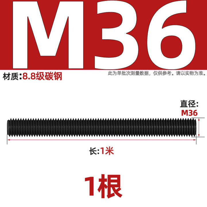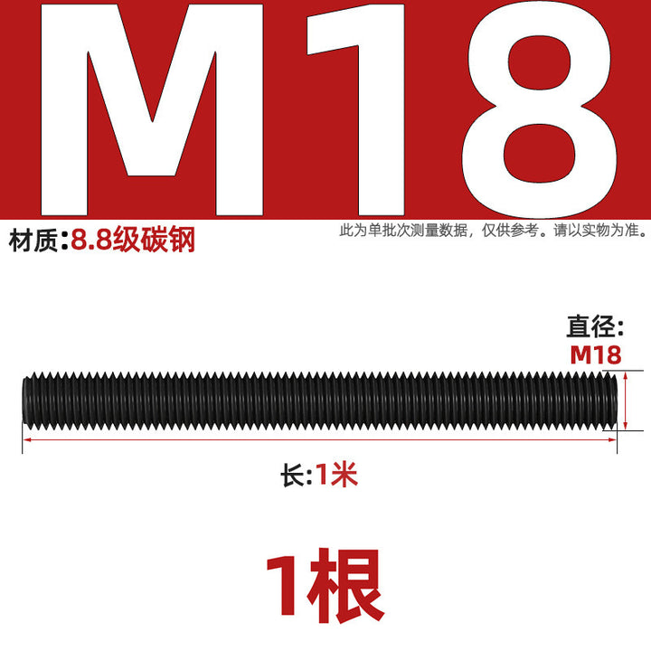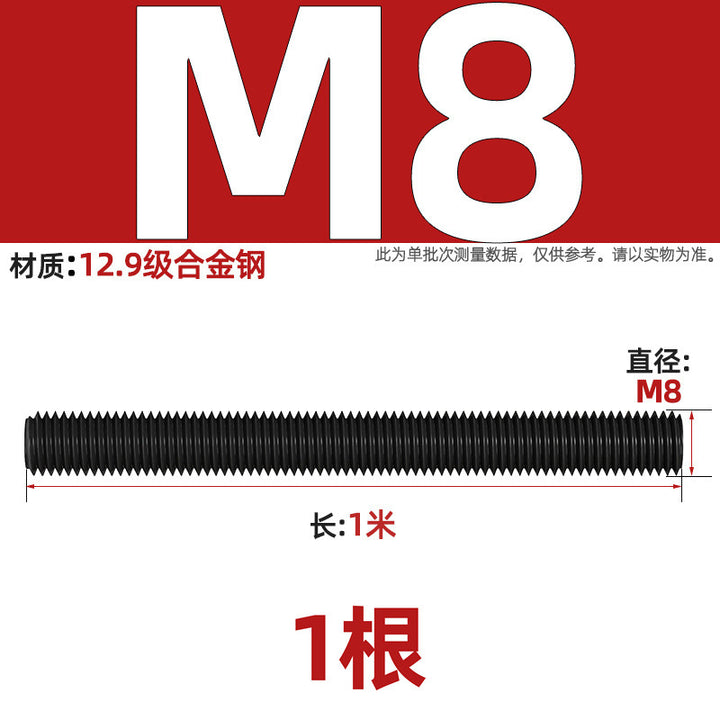 National standard tooth strip 8.8 full tooth thread through screw ceiling black screw M6M8M10M12M14-M36mm
