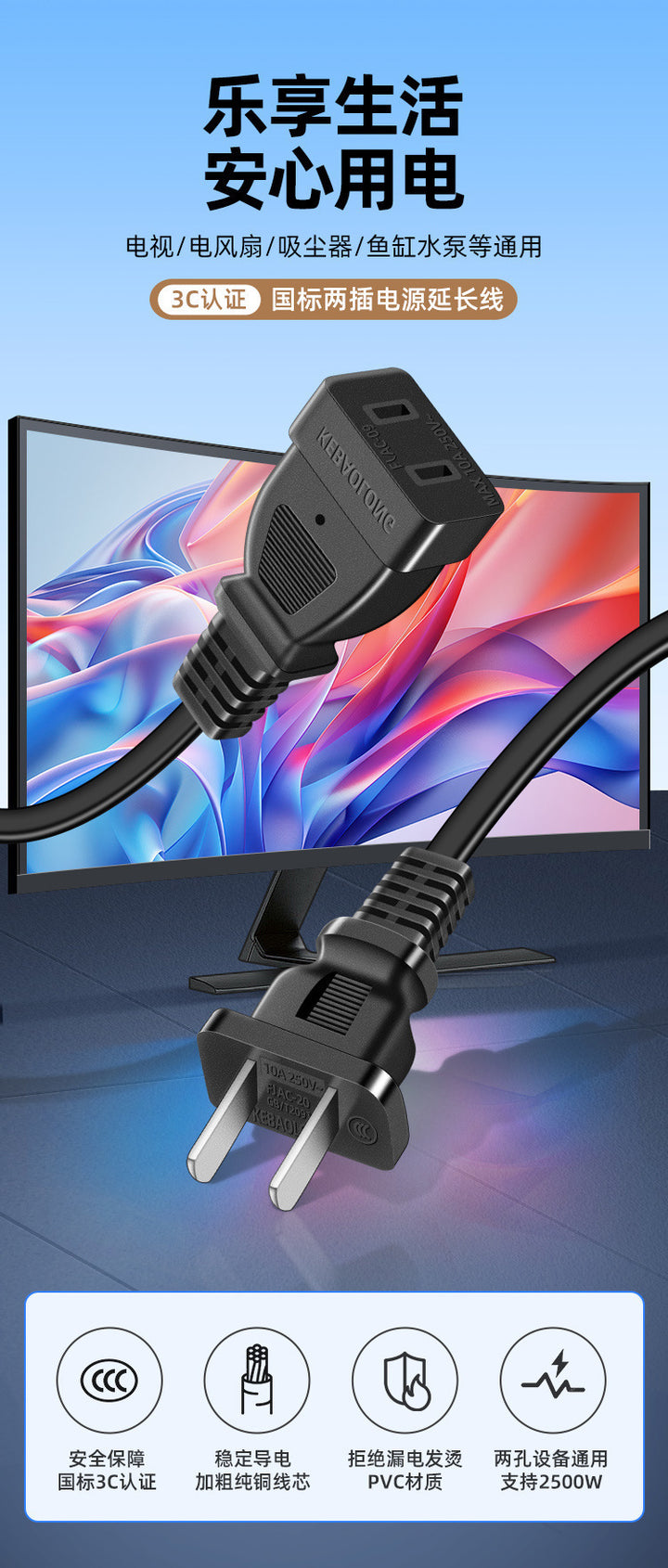 National standard two-plug male-to-female extension cable 0.5m black, National standard two-plug male-to-female extension cable 1m black, National standard two-plug male-to-female extension cable 2 meters black, National standard two-plug male-to-female extension cable 3 meters black, National standard two-plug male-to-female extension cable 5m black, National standard two-plug male-to-female extension cable 8 meters black, National standard two-plug male-to-female extension cable 10m black, National standard two-plug male-to-female extension cable 0.5 meters white, National standard two-plug male-to-female extension cable 1 meter white, National standard two-plug male-to-female extension cable 2 meters white, National standard two-plug male-to-female extension cable 3 meters white, National standard two-plug male-to-female extension cable 5 meters white, National standard two-plug male-to-female extension cable 8 meters white, National standard two-plug male-to-female extension cable 10 meters white |
