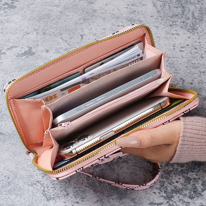 New 2024 women's wallet medium and long clutch bag European and American fashion printing mobile phone bag wallet change bag