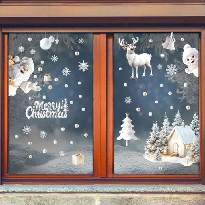 New 3D White Santa Elk Snowman Static Window Sticker Window Glass Christmas Decoration Sticker