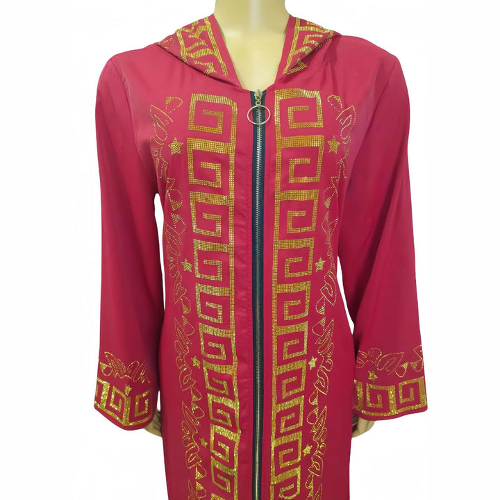 New African women's clothing Middle East Muslim hot diamond cardigan zipper hooded long-sleeved robe 7523 #in stock