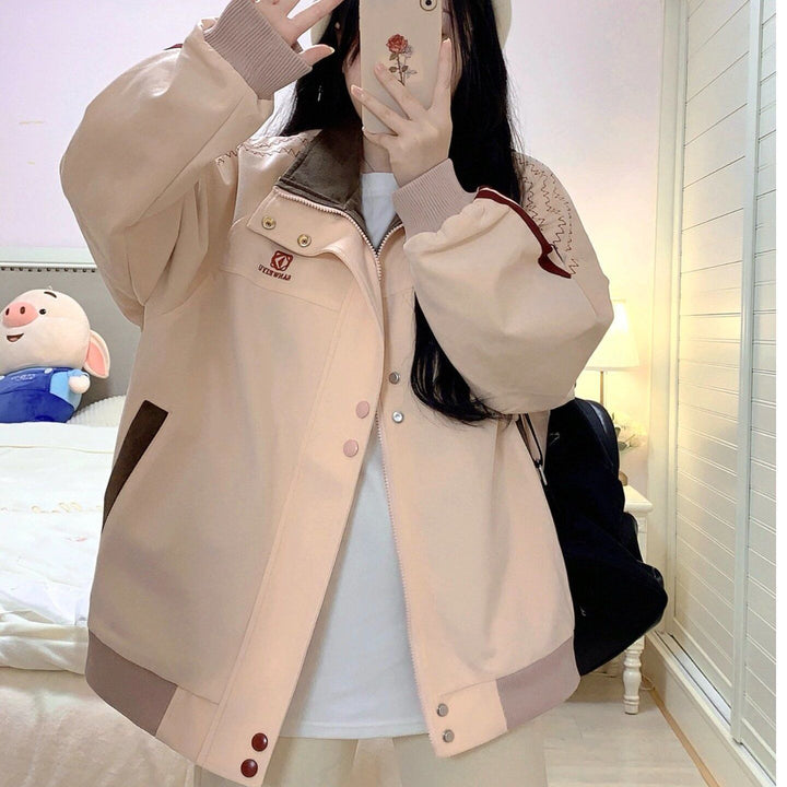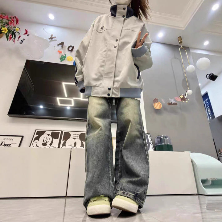 New American retro contrasting coat women's 2025 spring and autumn loose casual versatile jacket baseball jersey top