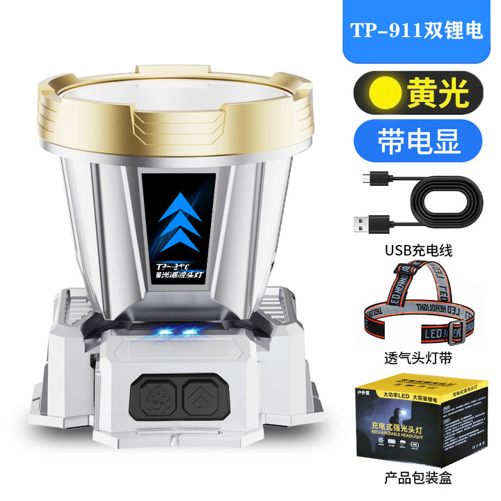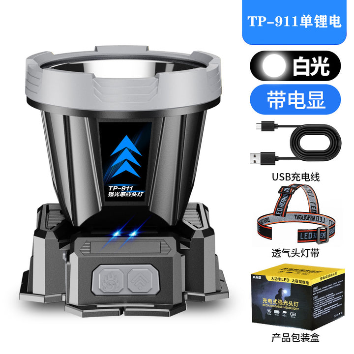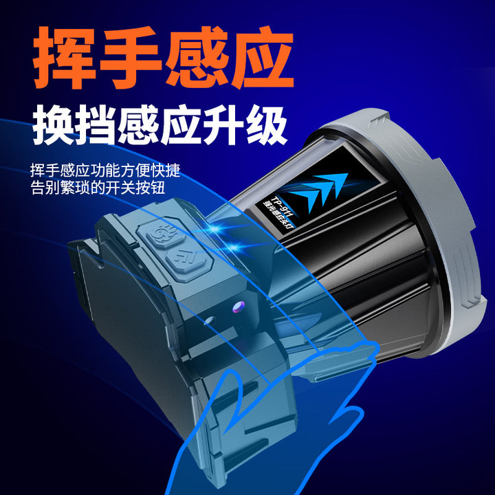 New big light cup waving sensor headlamp head-mounted long battery life strong light headlamp multi-functional outdoor fishing headlamp