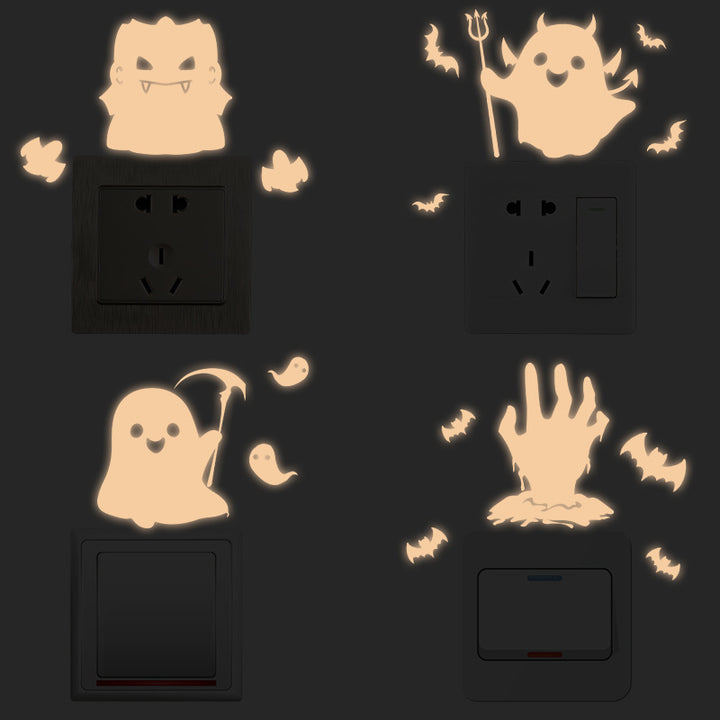 New cartoon Halloween cute luminous decorative wall sticker living room bedroom creative fluorescent switch self-adhesive sticker