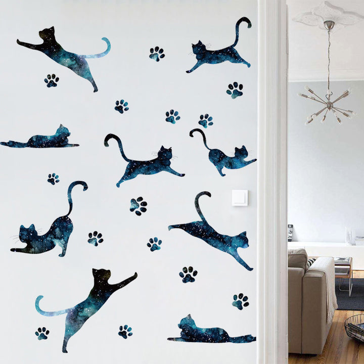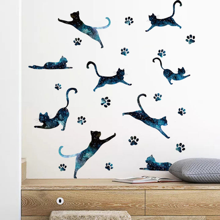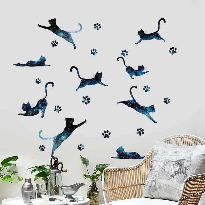 New cartoon romantic starry sky cat wall sticker children's room living room TV background wall decorative sticker XH6249